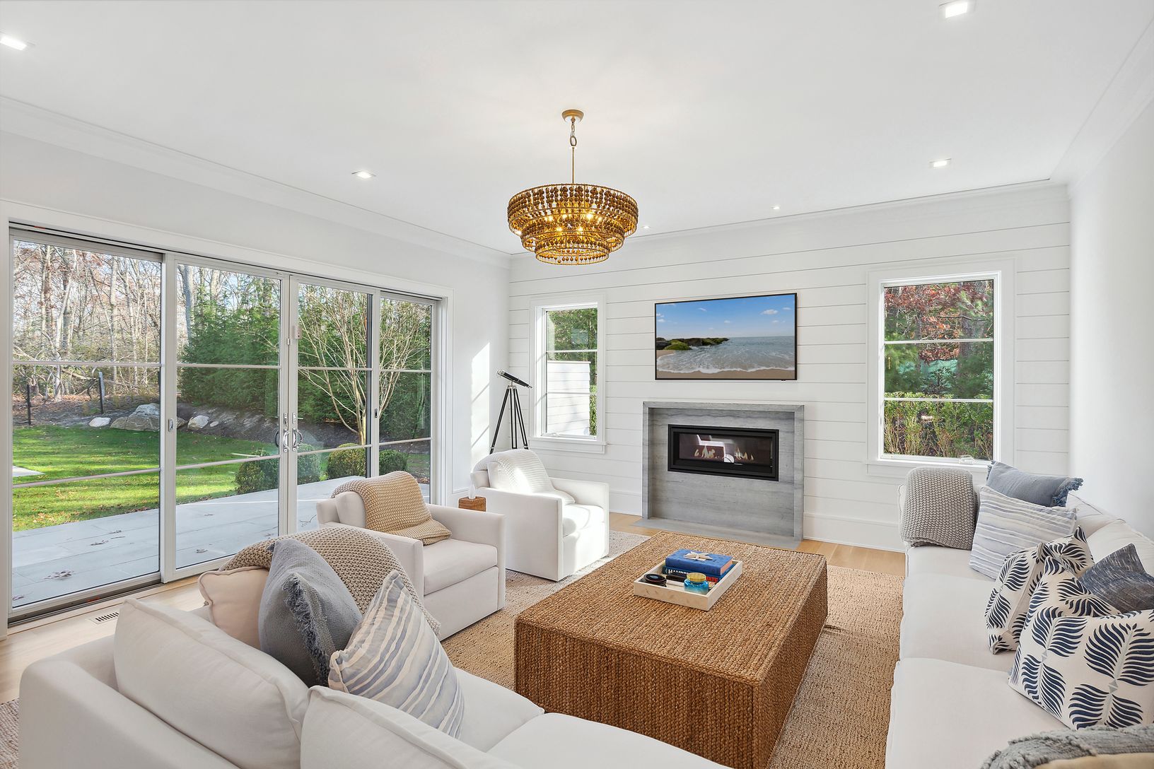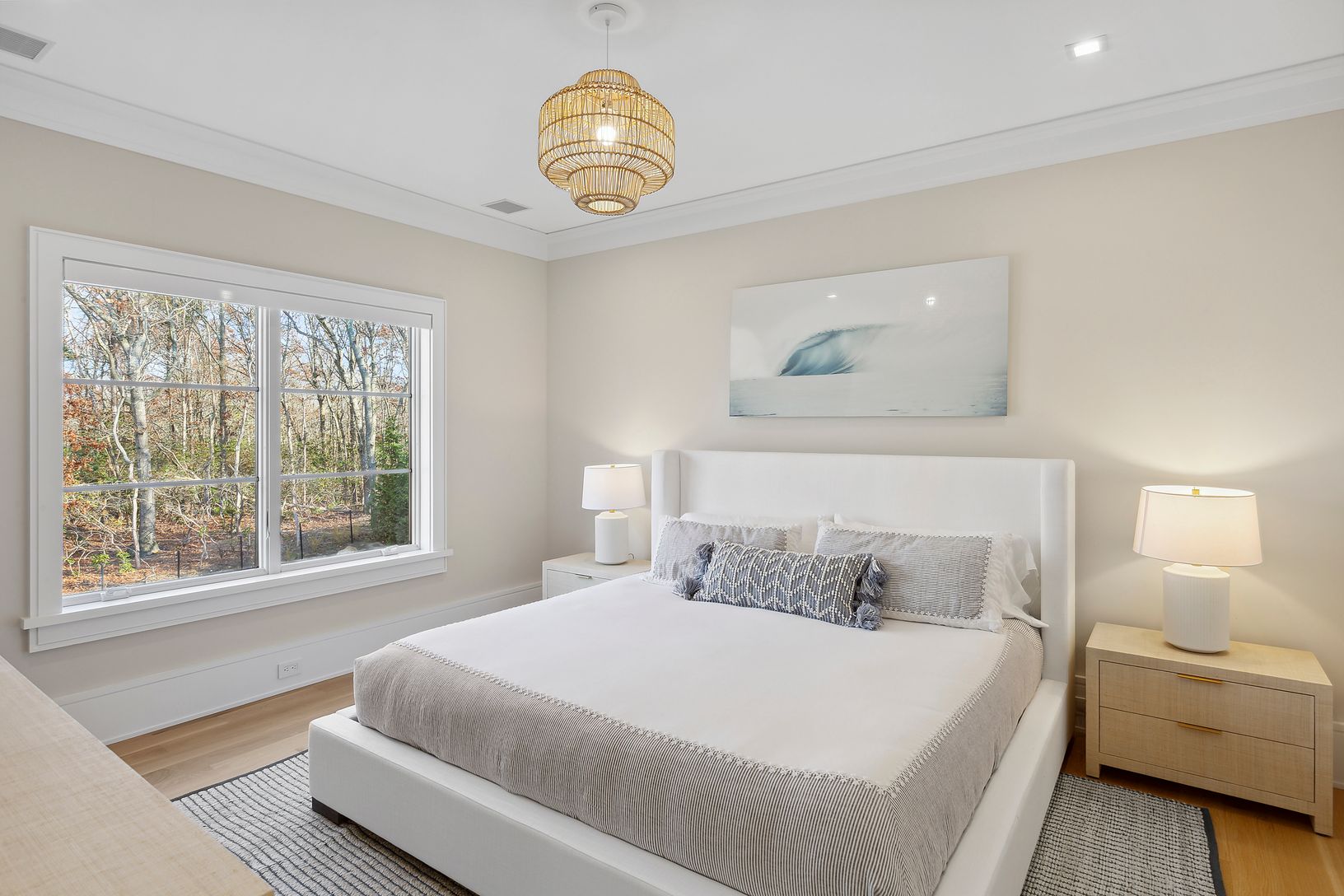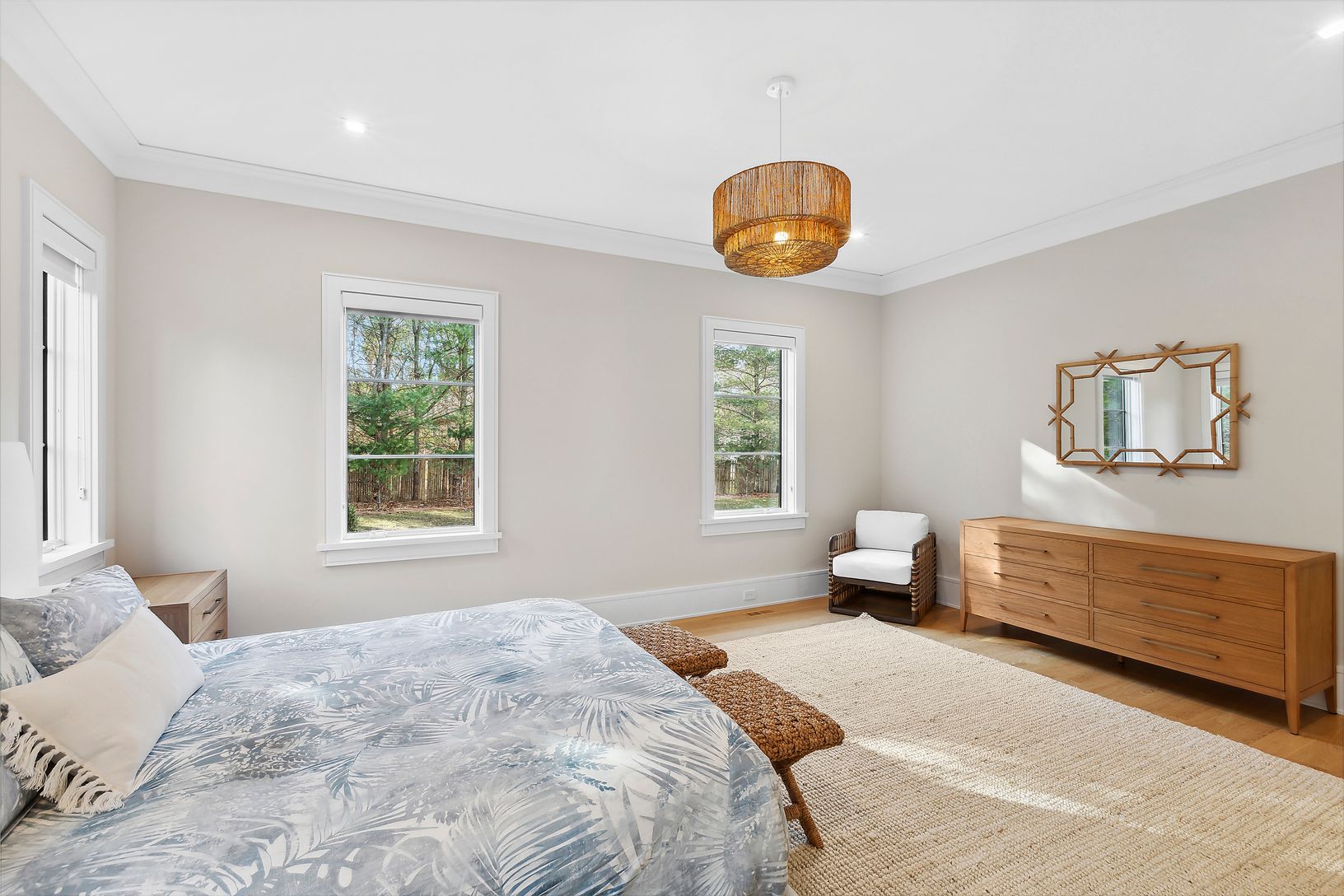 Nestled at the end of a quiet cul-de-sac in Sag Harbor just minutes from Long Beach, this stunning residence boasts 7 bedrooms and 7.5 bathrooms. Bathed in natural sunlight, this like-new construction features a first floor with a junior primary bedroom with full spacious bathroom, a well-appointed kitchen, a great room