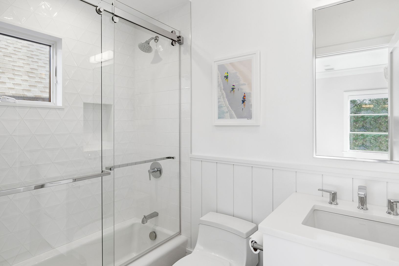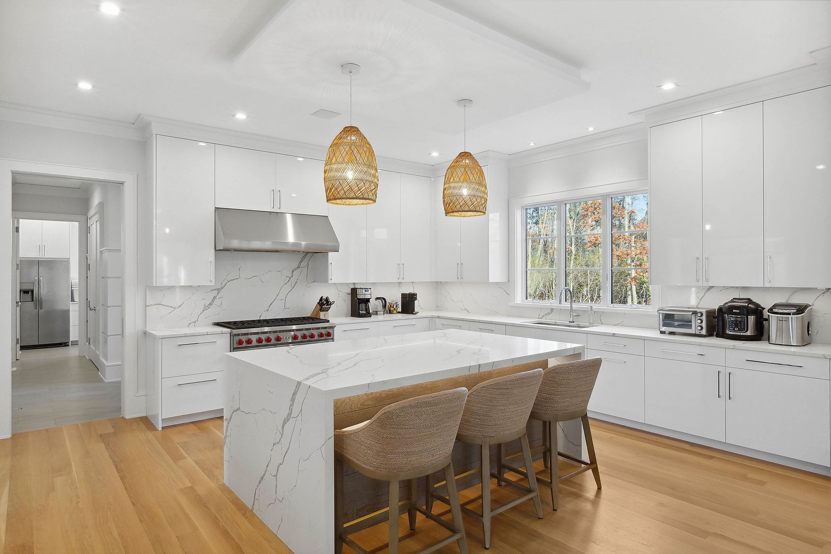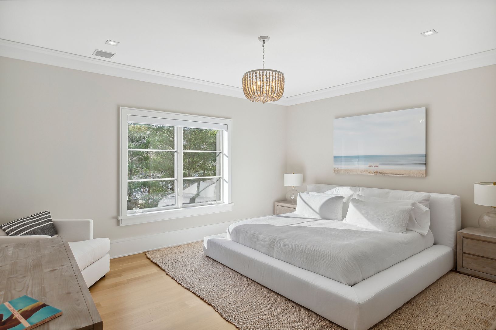 Nestled at the end of a quiet cul-de-sac in Sag Harbor just minutes from Long Beach, this stunning residence boasts 7 bedrooms and 7.5 bathrooms. Bathed in natural sunlight, this like-new construction features a first floor with a junior primary bedroom with full spacious bathroom, a well-appointed kitchen, a great room