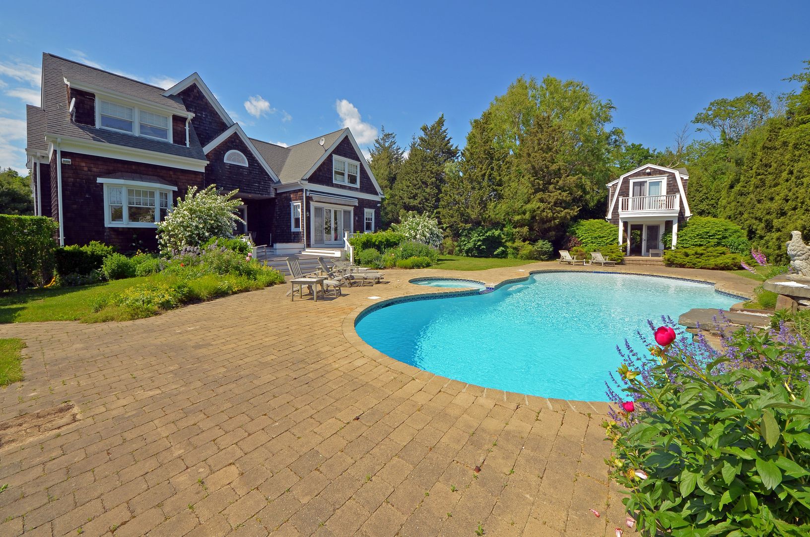 Nearly 8500 Square feet of sunlit living in this three level traditional home with convenient access to Water Mill and Bridgehampton Villages. Built by renowned Farrell Builders, this country residence boasts 8 bedrooms, 6.5 baths including first floor master suite, large entertaining spaces, great kitchen, and excellent outdoor space for lounging pool side. The bonus features include, finished lower level game room, 4 fireplaces, three car ga