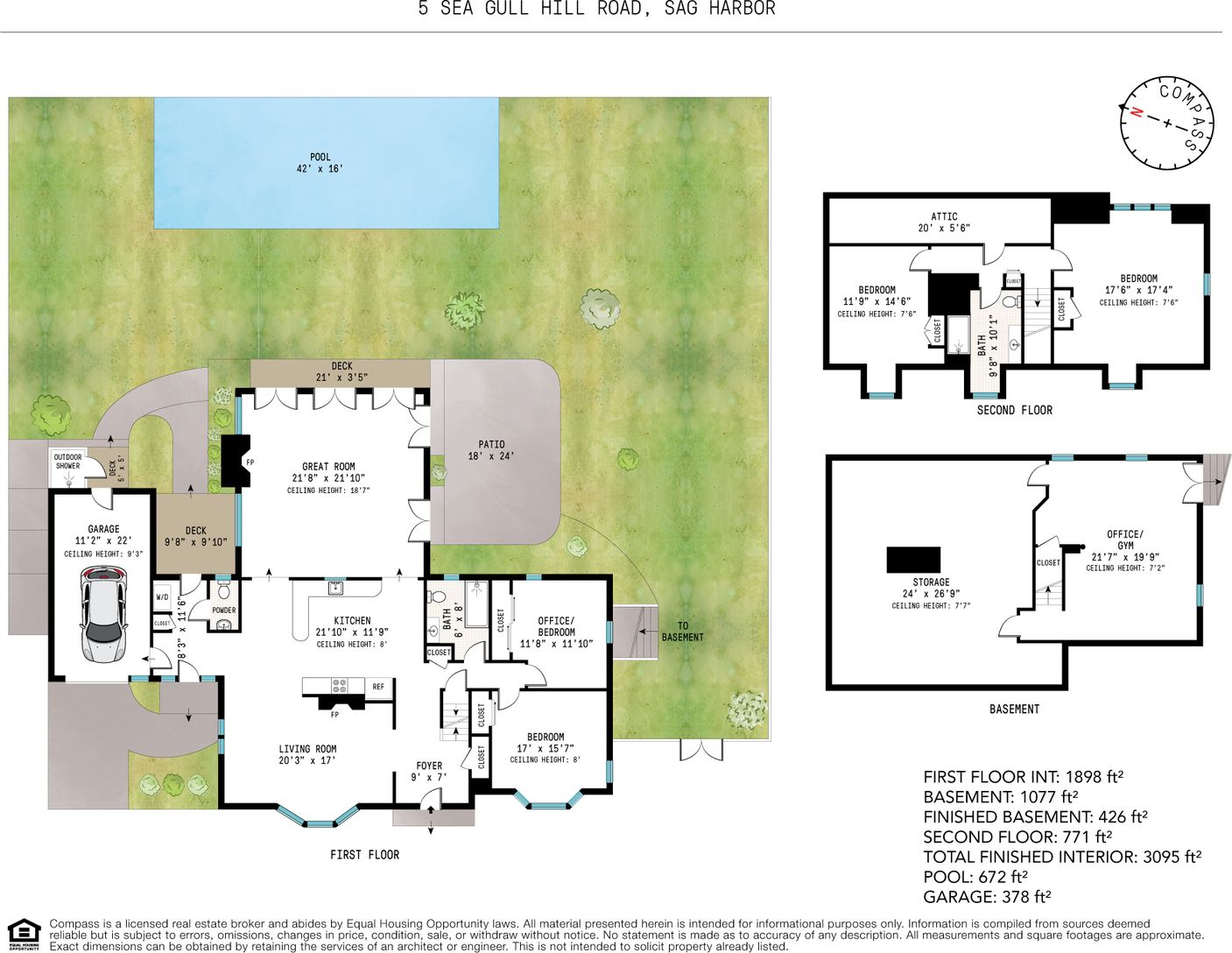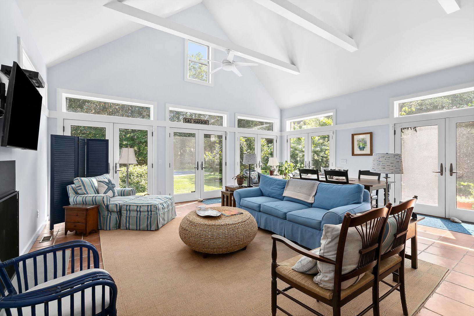 Welcome to 5 Sea Gull Hill Road, a stunning home situated in the desirable Village of North Haven in Sag Harbor, NY. This beautifully designed residence offers 4 bedrooms and 2.5 baths, 3,000 + square feet on 3 levels, providing ample space for comfortable living. Step inside and be greeted by a great room featuring a gas fireplace, high ceilings, and an abundance of natural light that fills the space. The living room boasts a wood-burning fir