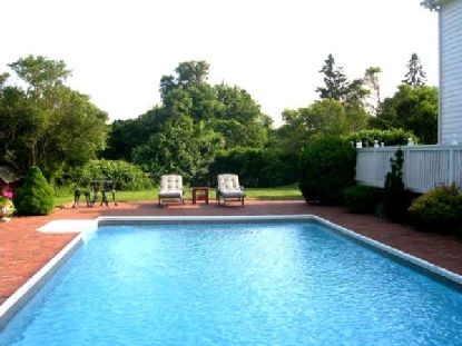 This shy half acre corner lot offers a sunfilled crisp year round Contemporary with an inviting landscaped yard and bricked inground pool. Center hall foyer opens to living room with brick fireplace, formal dining room, den or 4th bedroom, bright white kitchen with center butcher block counter and serene breakfast nook, where french doors all open to full length patio and down to pool and lawn areas. Upstairs large master offers a wonderful