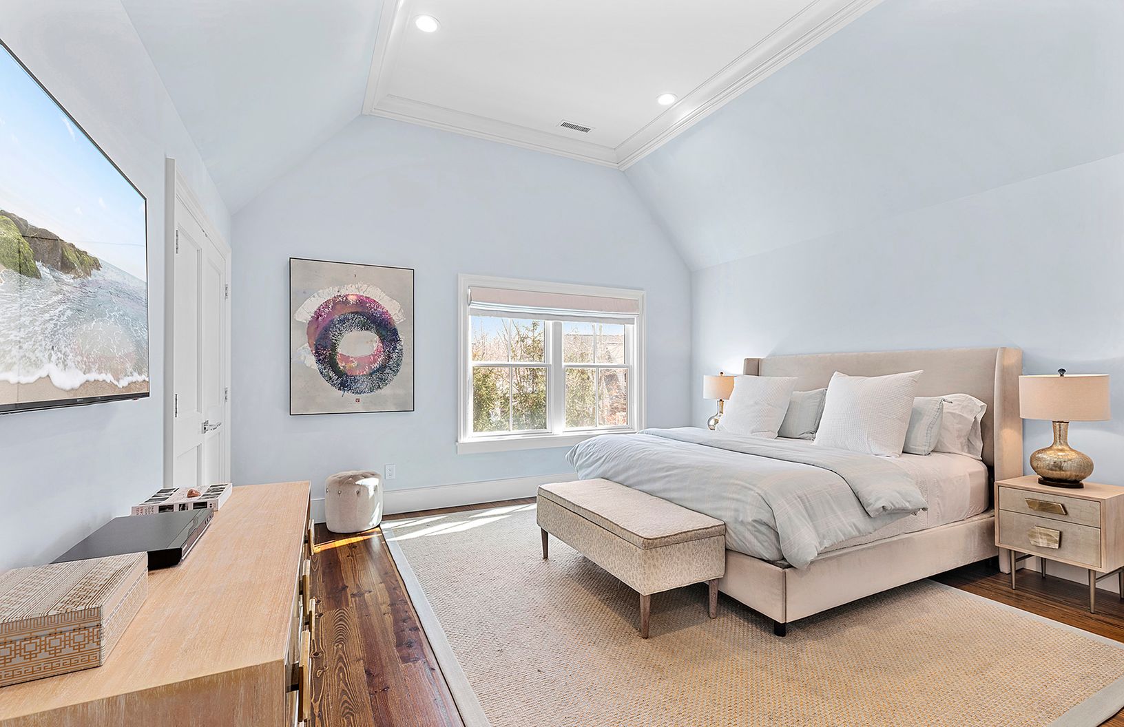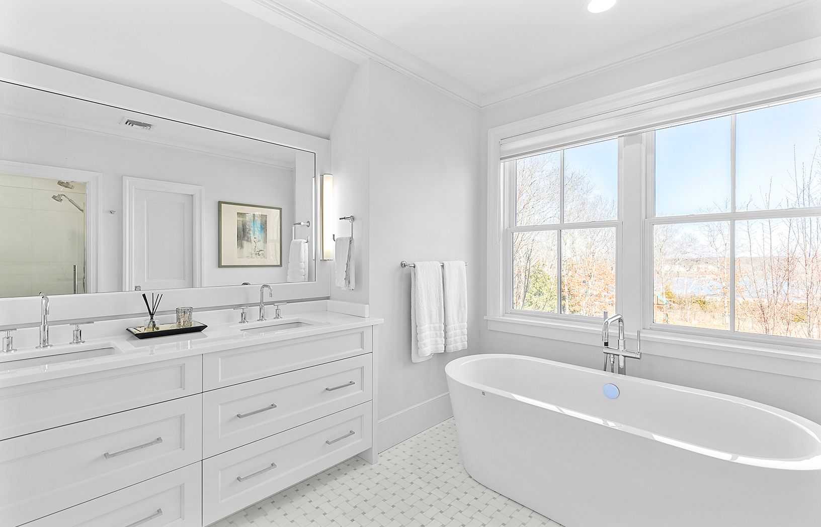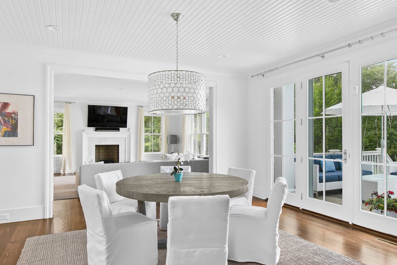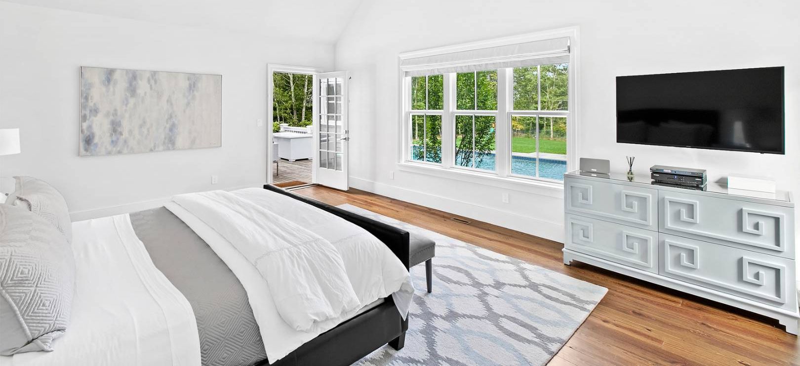 Situated on an expansive 2.42-acre lot in a cul-de-sac in the North Sea area of Southampton, this stunning traditional home with a lake view and bright, modern interiors is the ideal Hamptons vacation retreat. Furnished with the highest level of furnishings and featuring a fabulous contemporary art collection, this residence offers close proximity to North Sea Beach, Southampton Village, and the renowned Atlantic Ocean Beaches. The home boasts