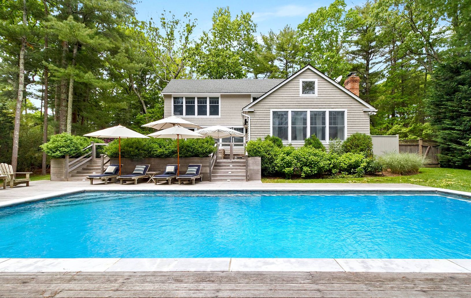 This idyllic, recently updated 4-bedroom, 4-bathroom home is tucked away in the sought-after Northwest Harbor area of East Hampton, just a short drive from East Hampton Village. The home blends relaxed elegance with modern functionality, featuring a bright and open floor plan that flows seamlessly to the outdoor entertaining areas and sunlit pool. A newly renovated kitchen with a large marble island, top-of-the-line appliances, and an adjoinin