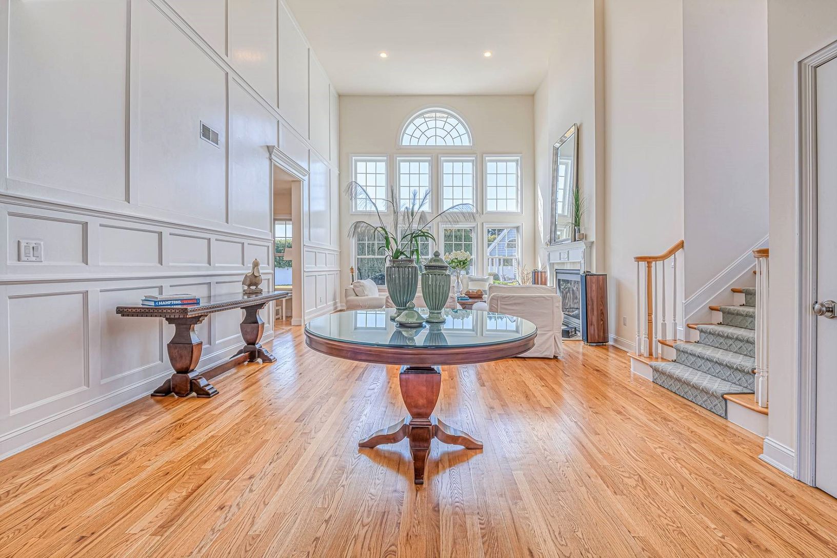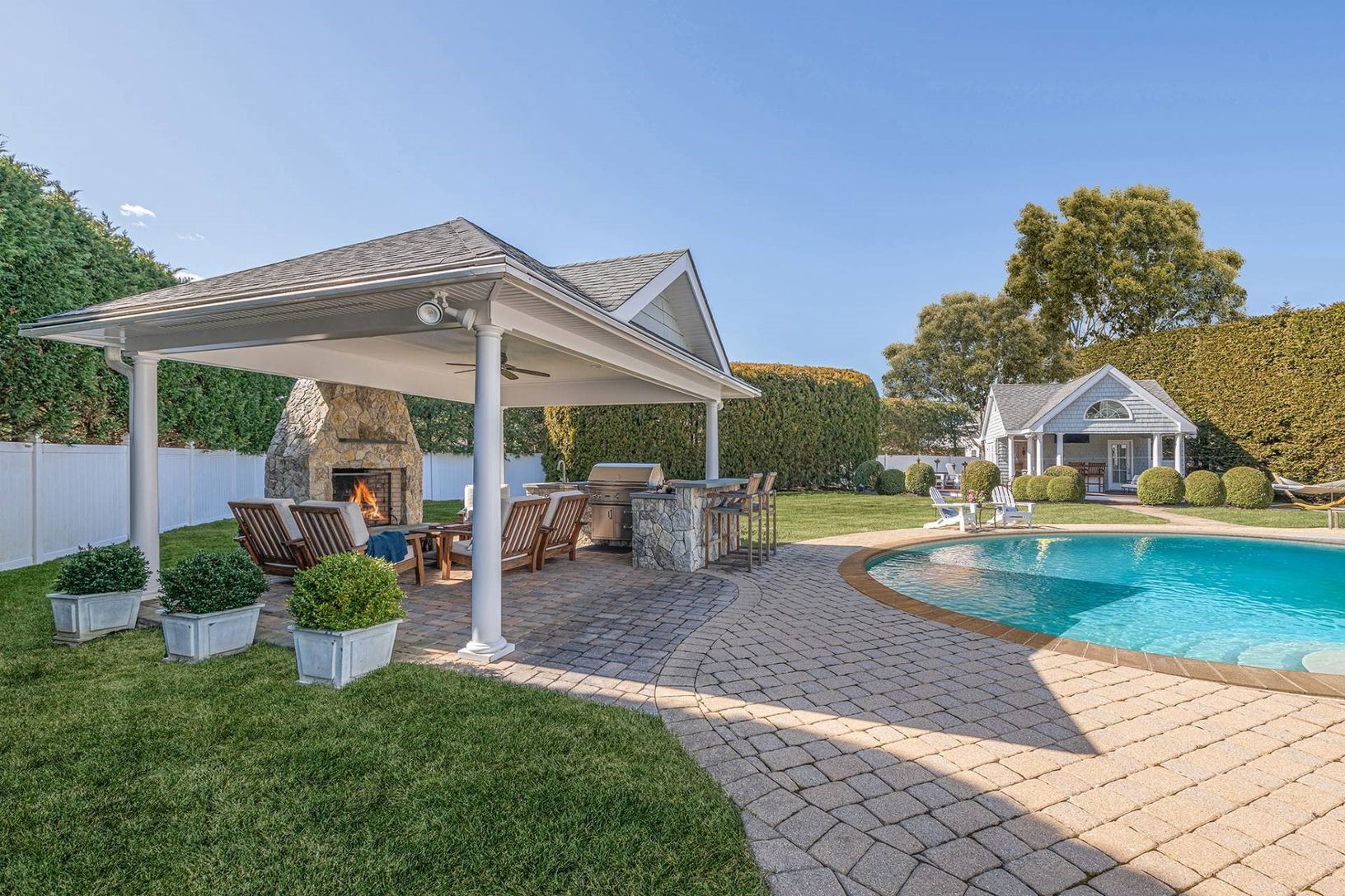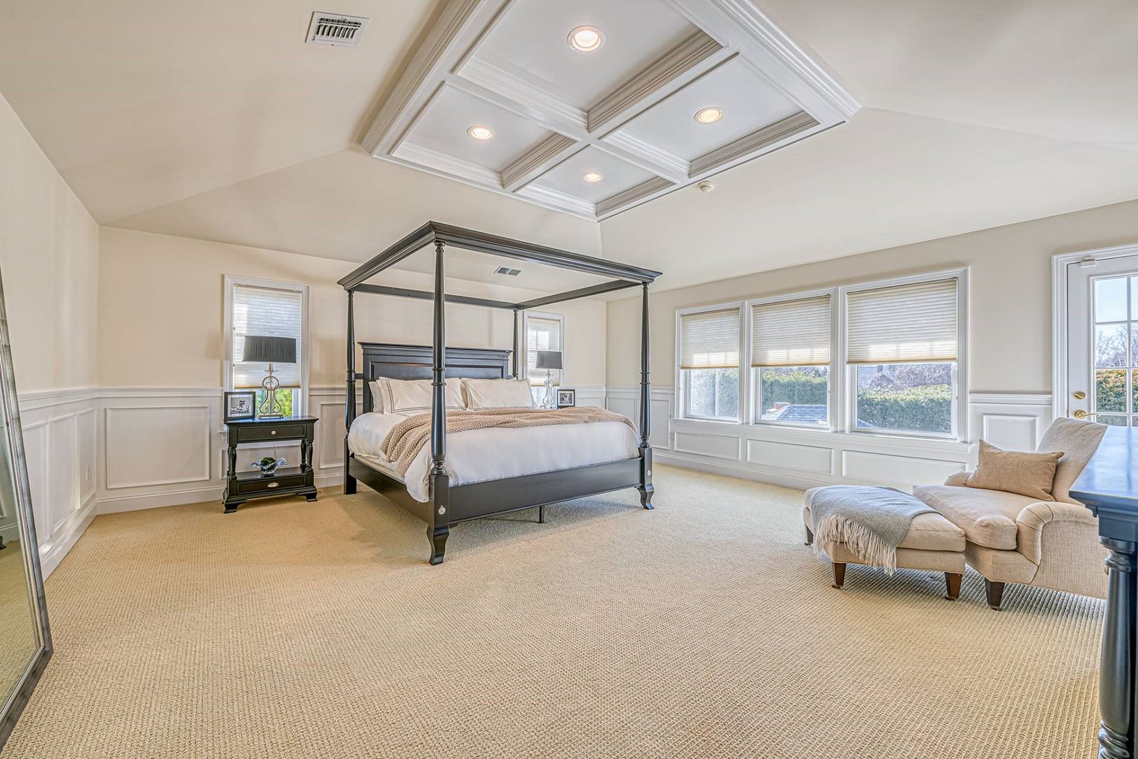 NEW TO THE MARKET! Sited on 0.55 landscaped acres, this south of the highway Traditional home offers 6 legal bedrooms, 6 full and 1 half bathrooms and over 6,600 +/- sq. ft. of luxury living space spanning 3 levels. First level features include a light-filled, 2-story Great Room with a gas fireplace and generous windows that look out to views of the private outdoor living space with covered porches/patios (all with infrared heaters), a heated