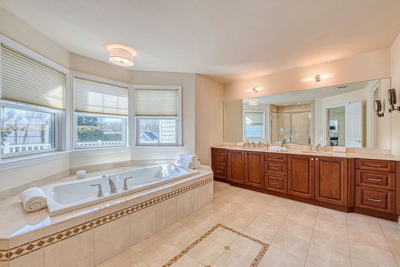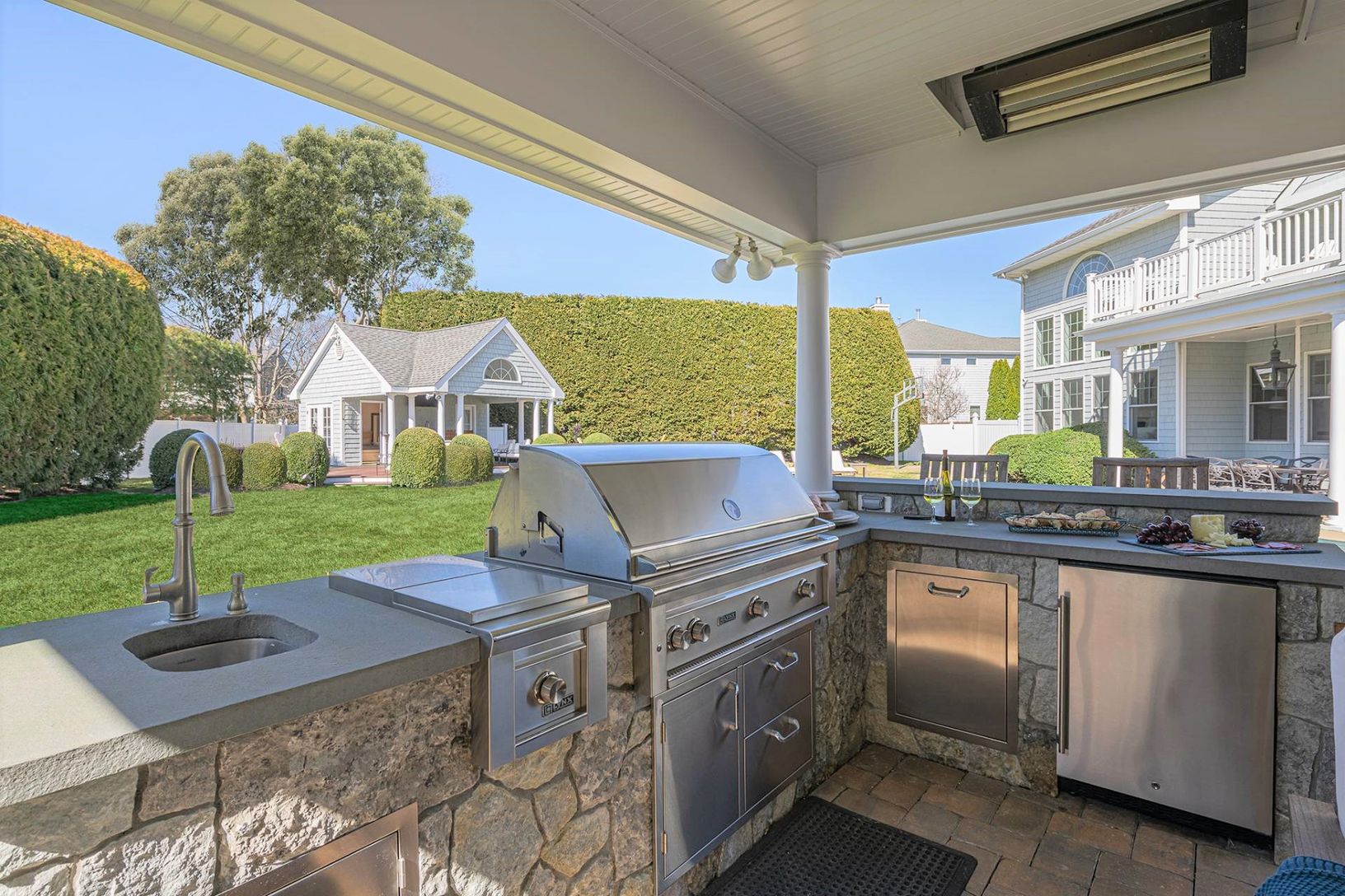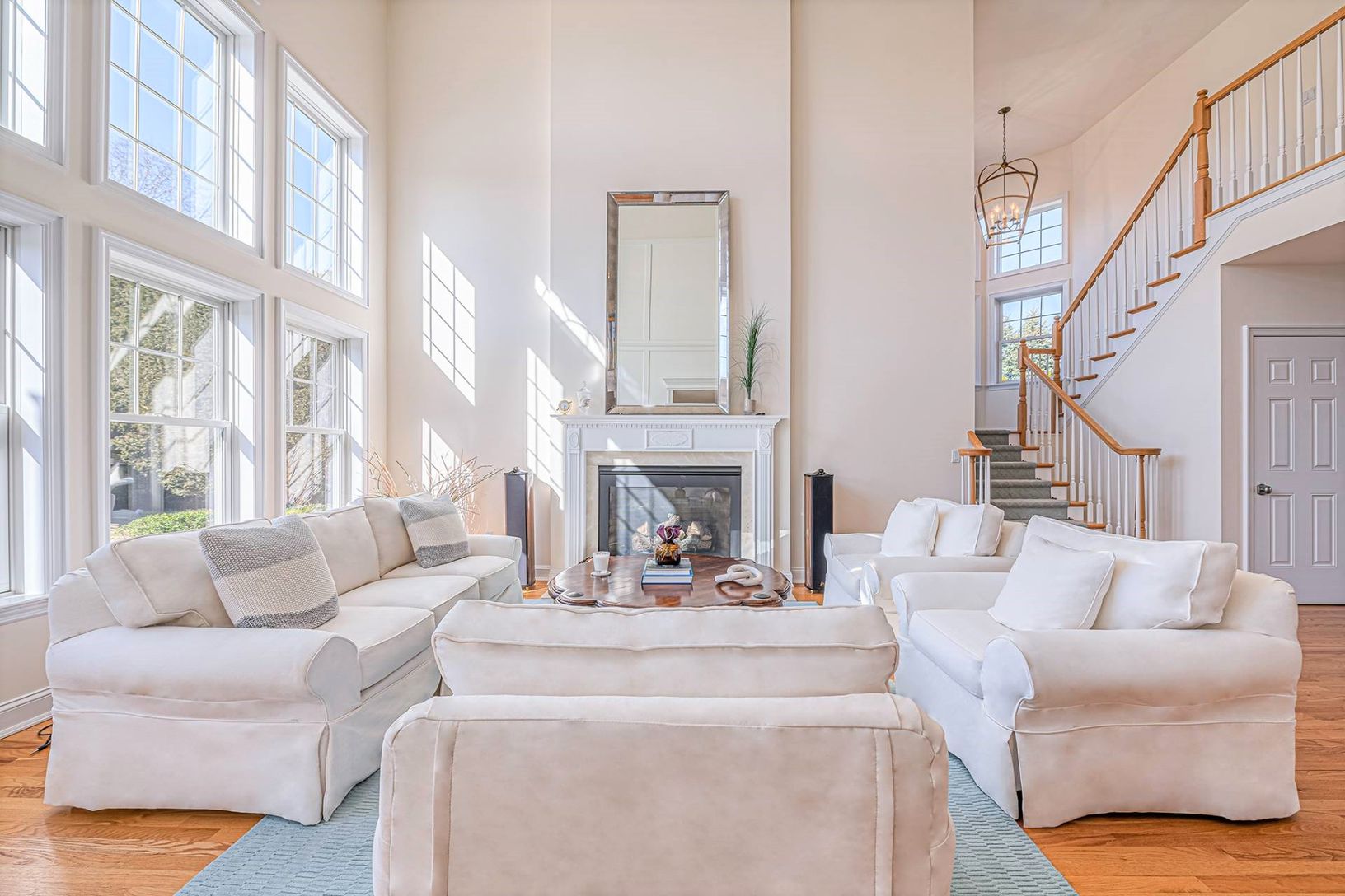 NEW TO THE MARKET! Sited on 0.55 landscaped acres, this south of the highway Traditional home offers 6 legal bedrooms, 6 full and 1 half bathrooms and over 6,600 +/- sq. ft. of luxury living space spanning 3 levels. First level features include a light-filled, 2-story Great Room with a gas fireplace and generous windows that look out to views of the private outdoor living space with covered porches/patios (all with infrared heaters), a heated