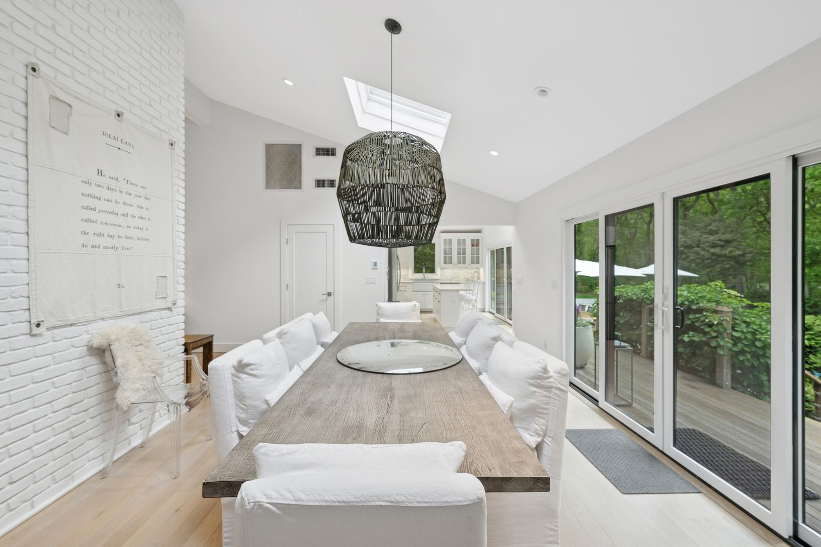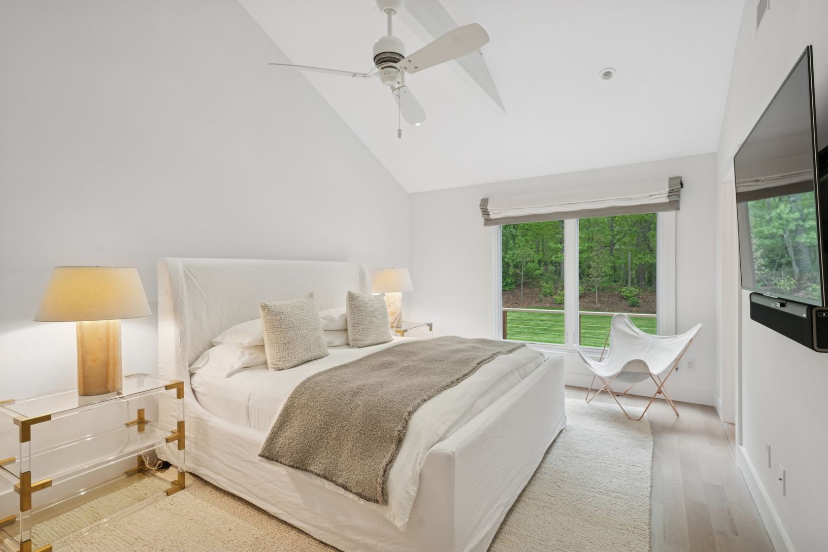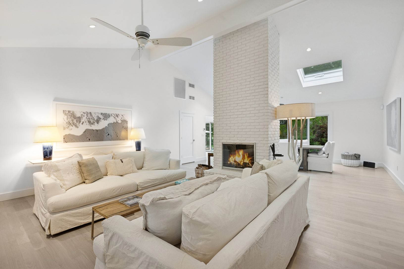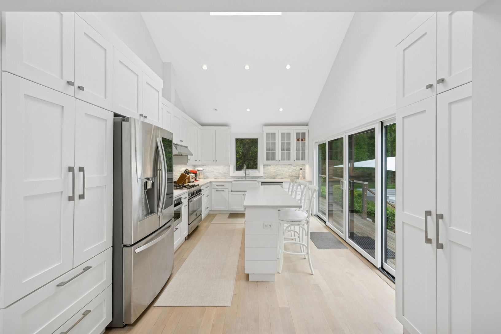 A chic modern exterior will greet you at the front door. Inside you will find a crisp, sunny Hamptons beach vibe as you enter the spacious living room with vaulted ceilings and a fireplace. The five bedrooms all have an individual quiet and calming space. The master suite has a beamed cathedral ceiling, custom finished walk-in closet and a beautiful bath with marble countertop. The guest suite also has a custom walk in closet and ample natural