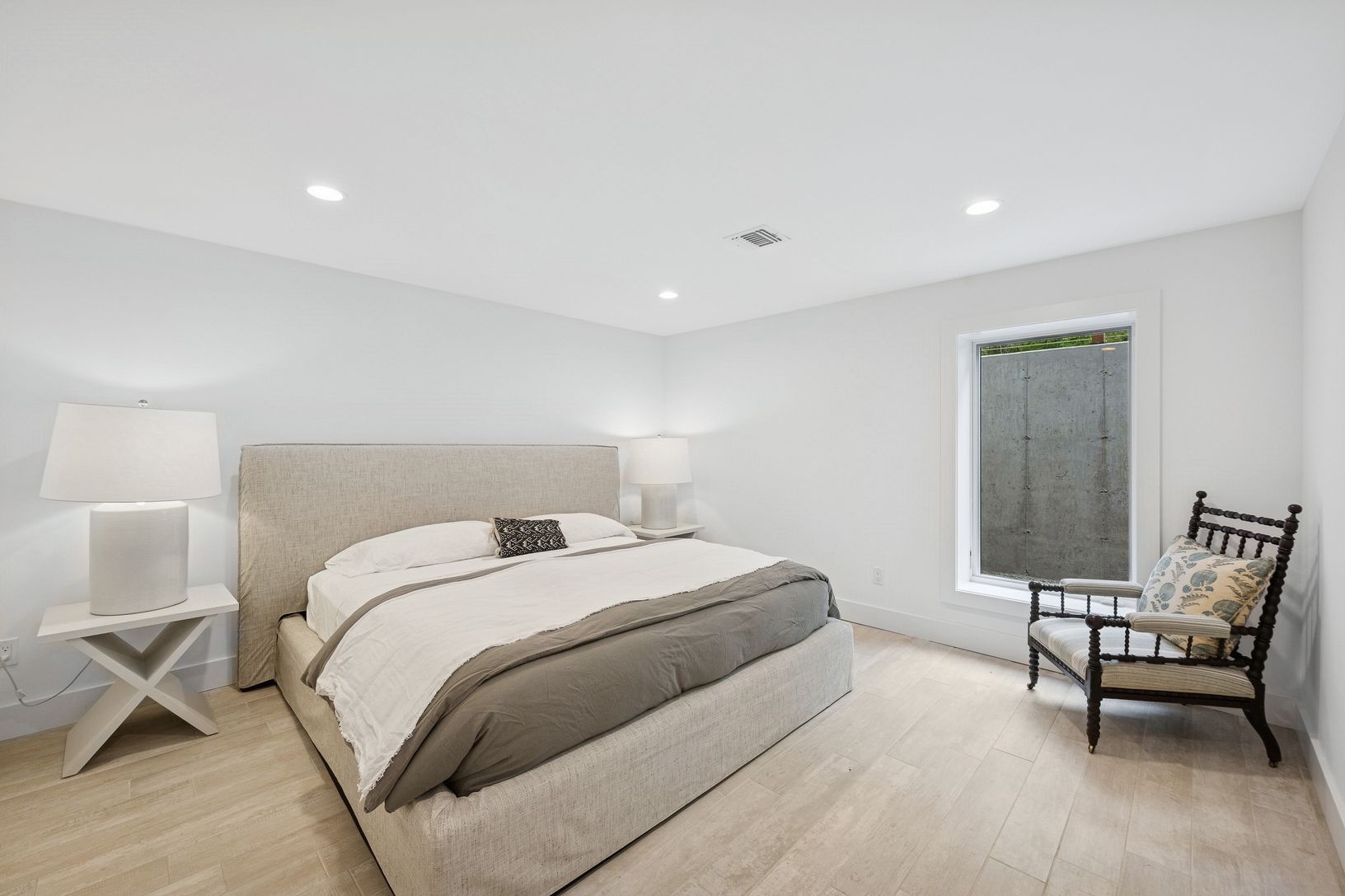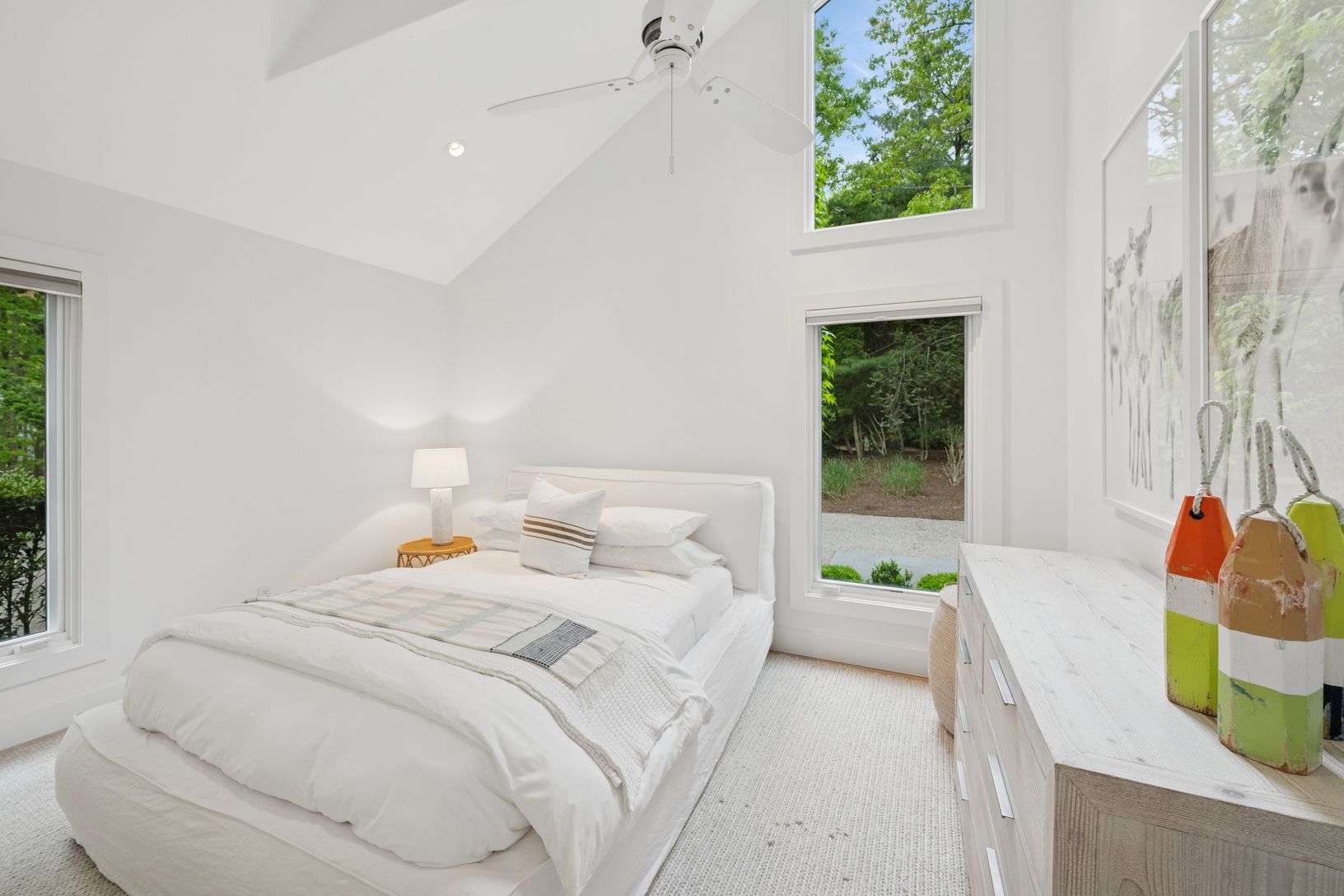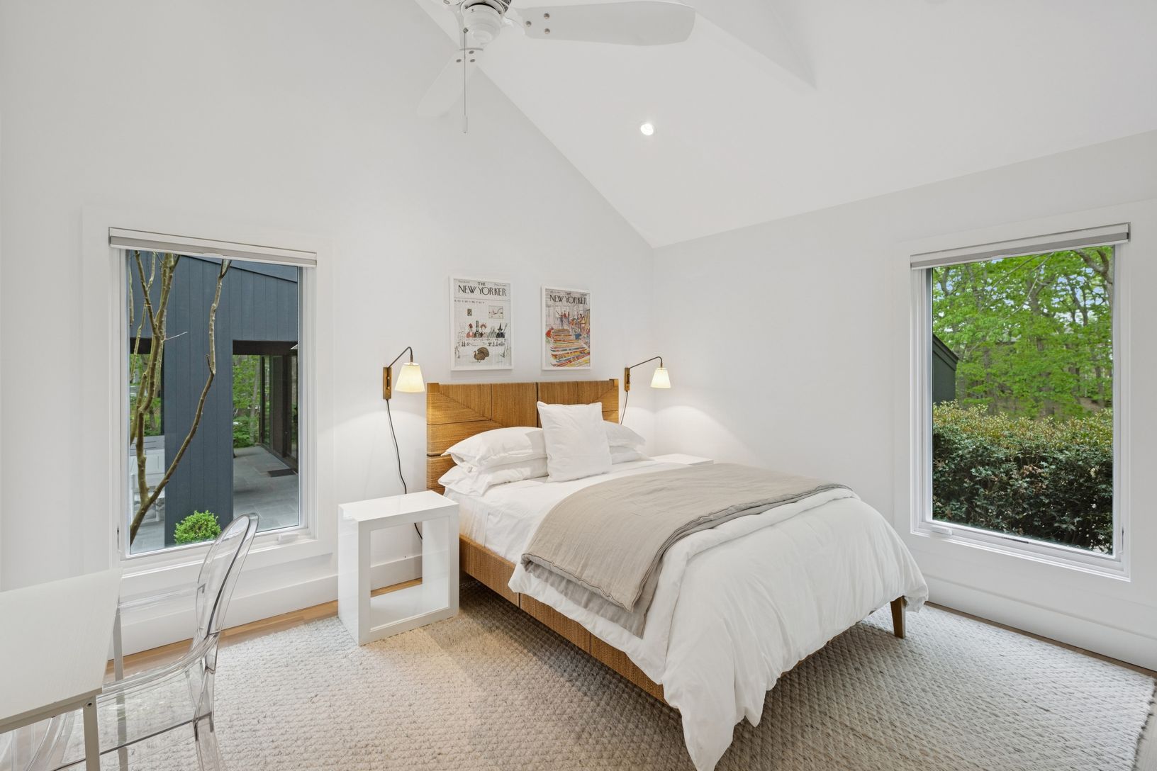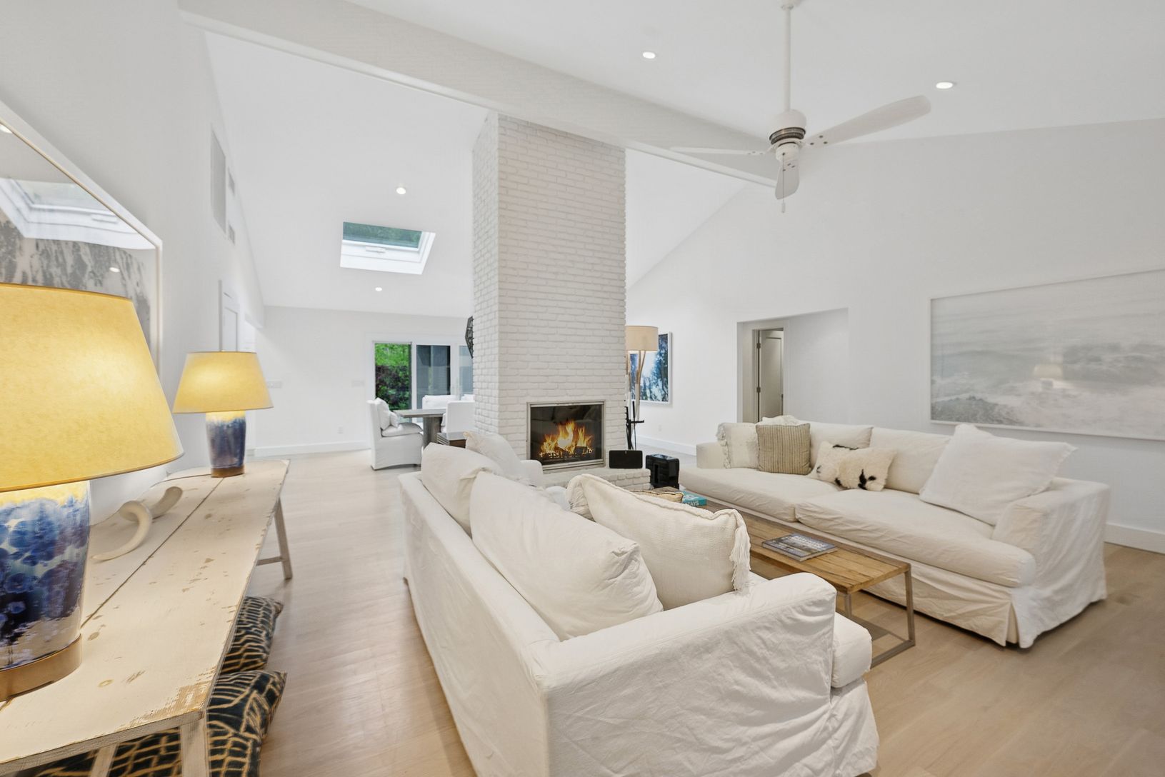 A chic modern exterior will greet you at the front door. Inside you will find a crisp, sunny Hamptons beach vibe as you enter the spacious living room with vaulted ceilings and a fireplace. The five bedrooms all have an individual quiet and calming space. The master suite has a beamed cathedral ceiling, custom finished walk-in closet and a beautiful bath with marble countertop. The guest suite also has a custom walk in closet and ample natural