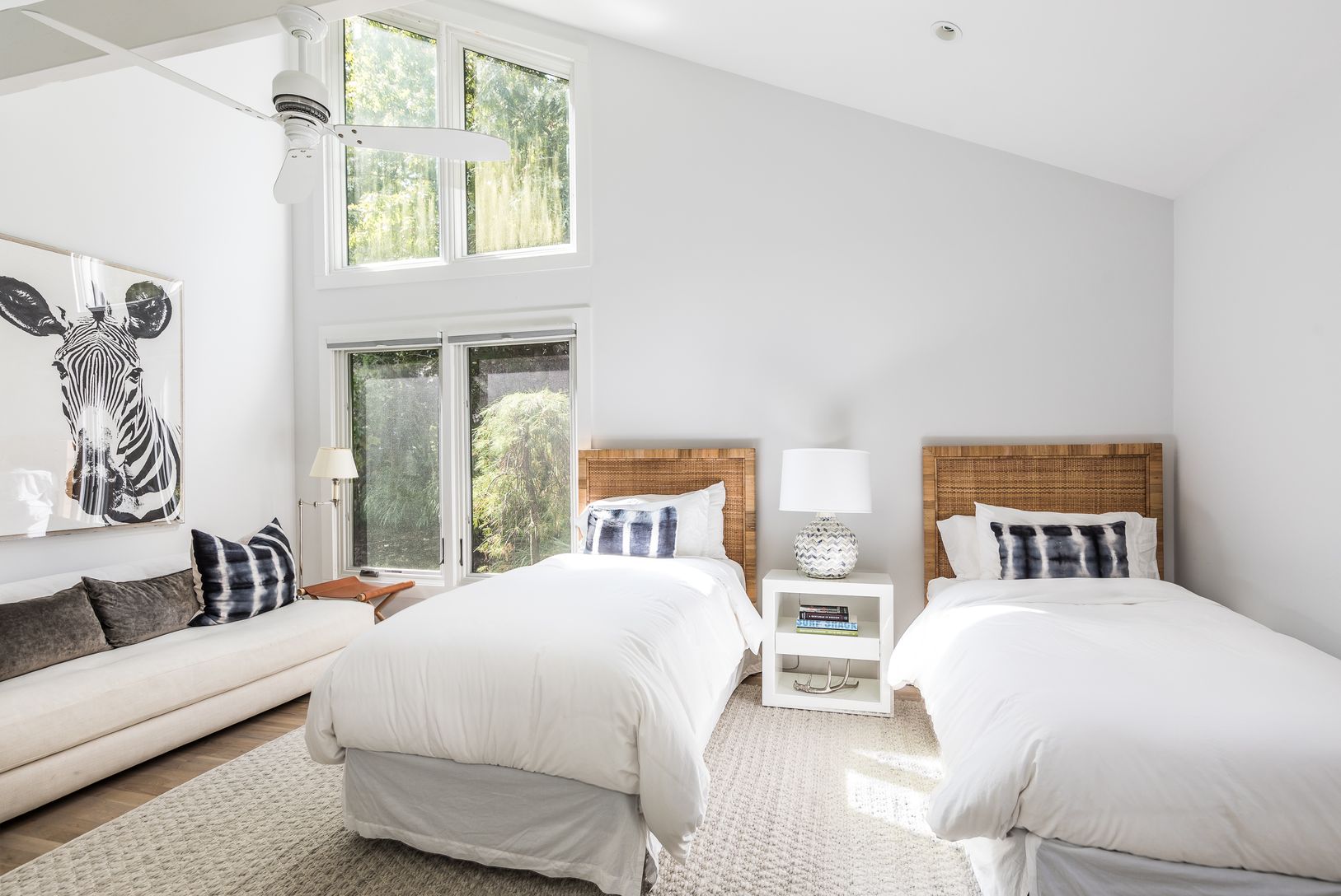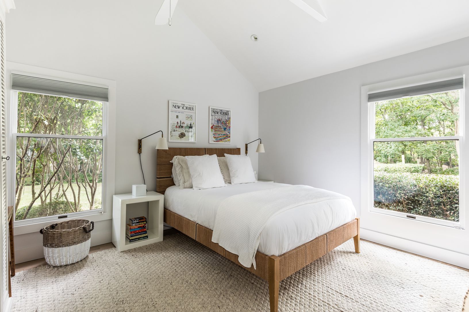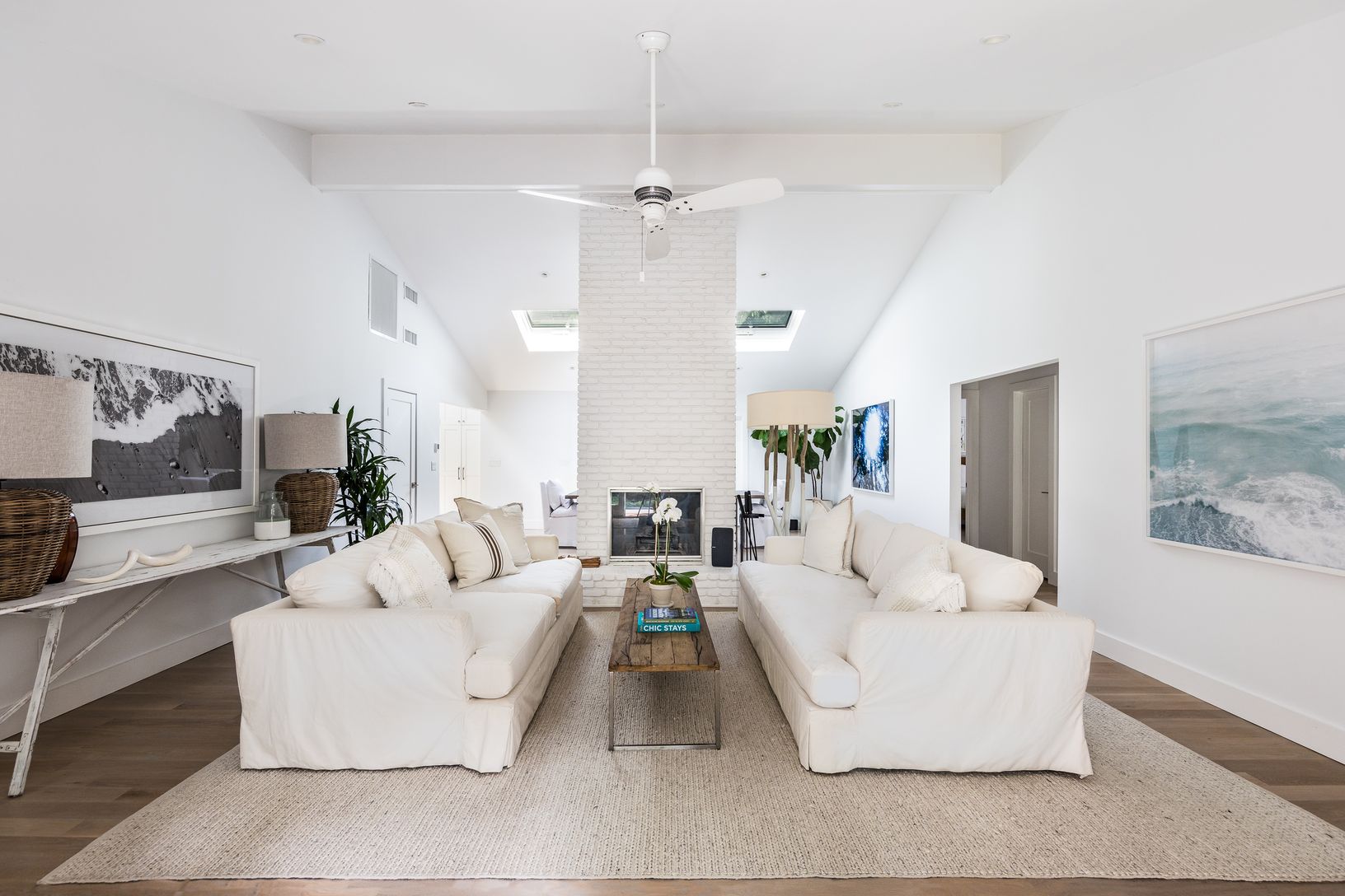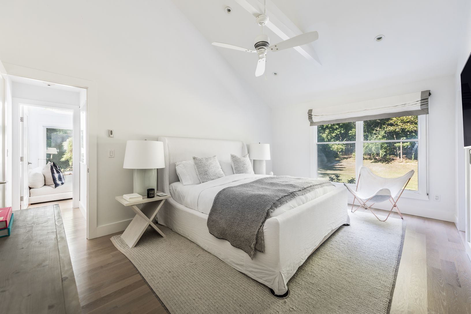 A chic modern exterior will greet you at the front door. Inside you will find a crisp, sunny Hamptons beach vibe as you enter the spacious living room with vaulted ceilings and a fireplace. The four bedrooms all have an individual quiet and calming space. The master suite has a beamed cathedral ceiling, custom finished walk in closet and a beautiful bath with marble countertop. The guest suite also has a custom walk in closet and ample natural