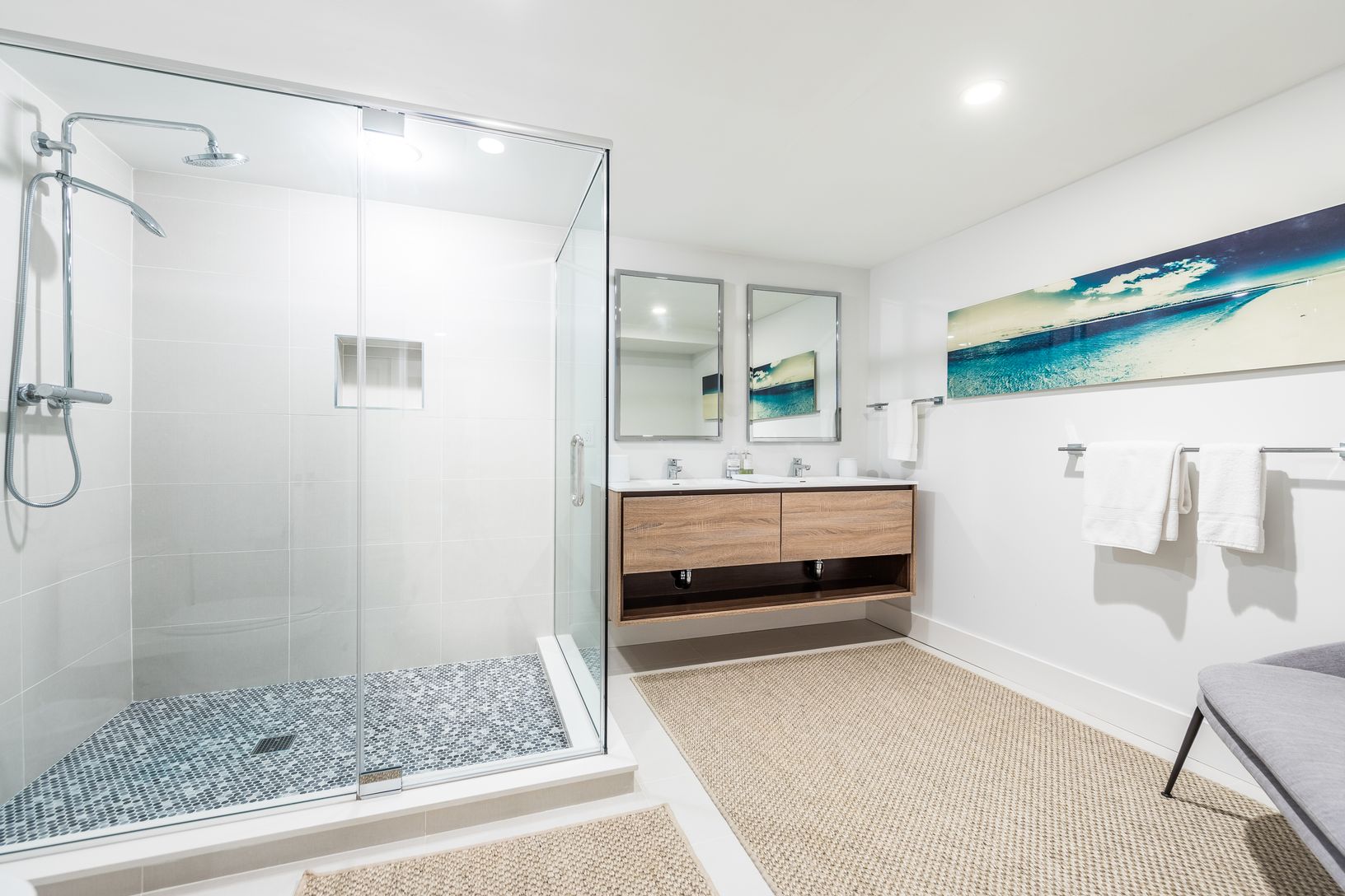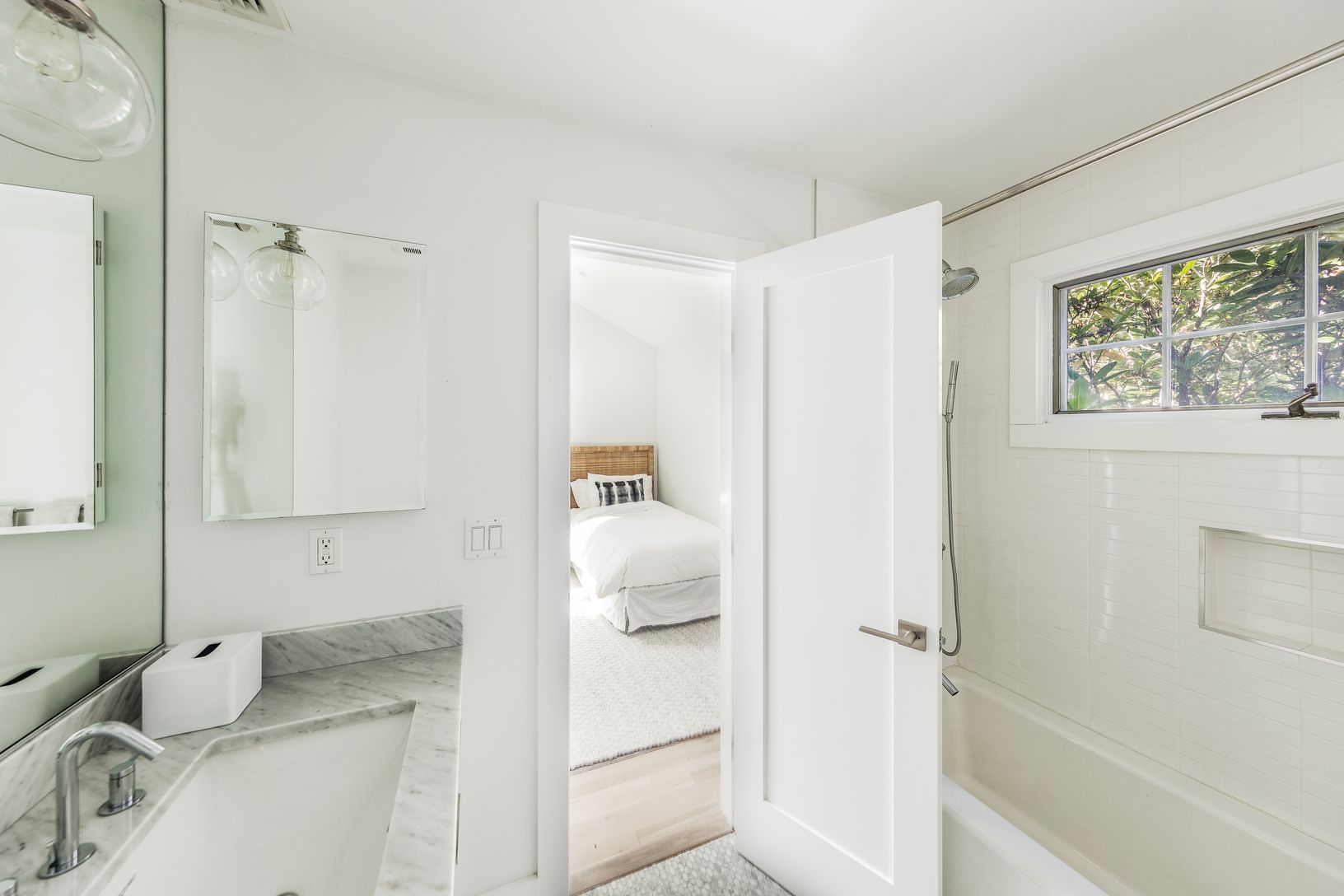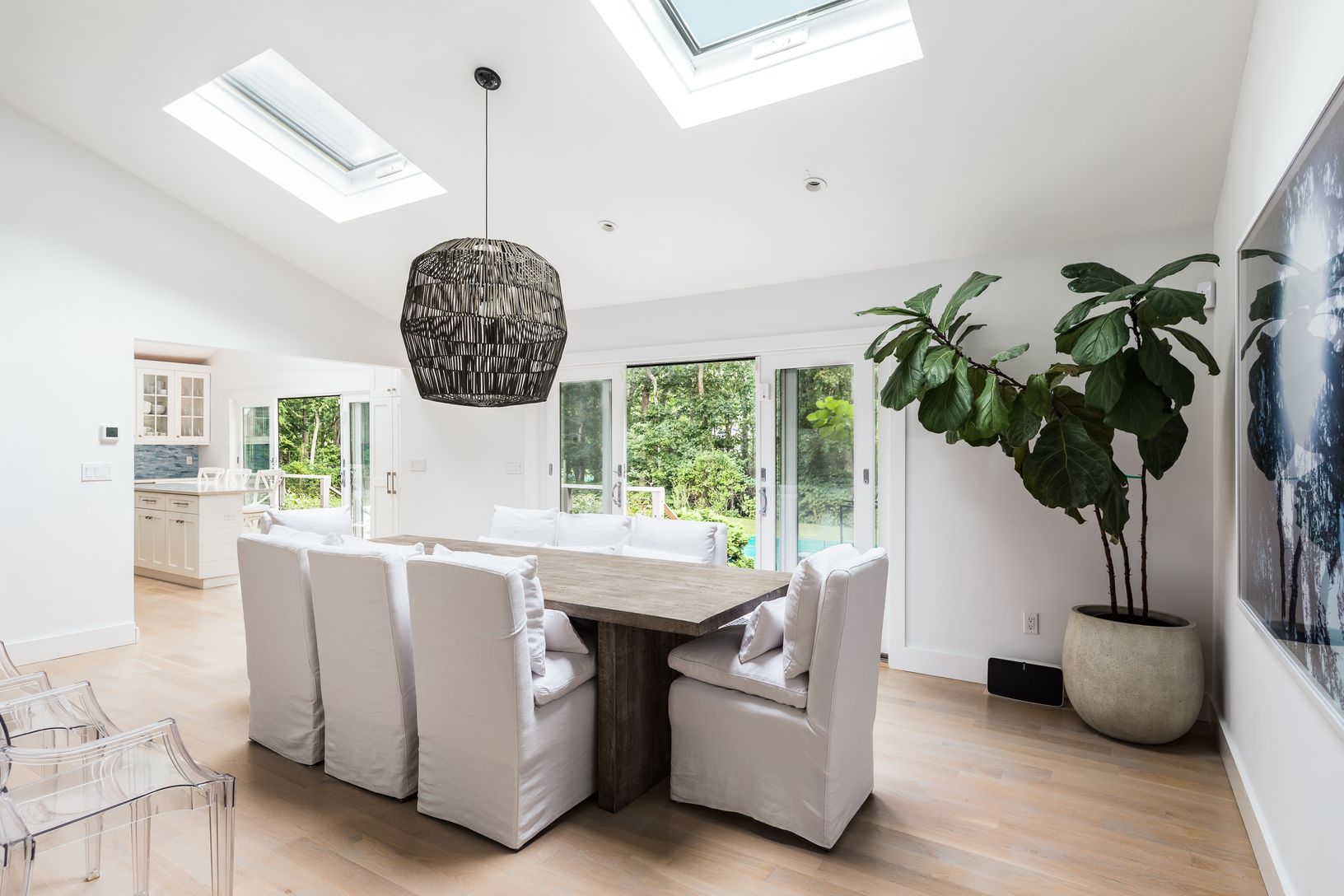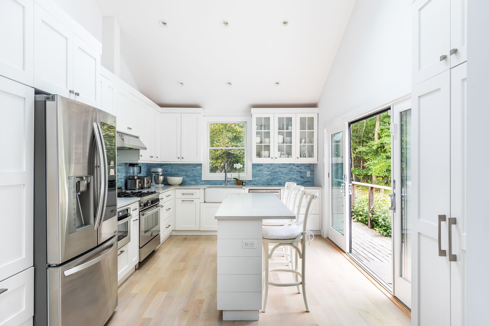 A chic modern exterior will greet you at the front door. Inside you will find a crisp, sunny Hamptons beach vibe as you enter the spacious living room with vaulted ceilings and a fireplace. The four bedrooms all have an individual quiet and calming space. The master suite has a beamed cathedral ceiling, custom finished walk in closet and a beautiful bath with marble countertop. The guest suite also has a custom walk in closet and ample natural