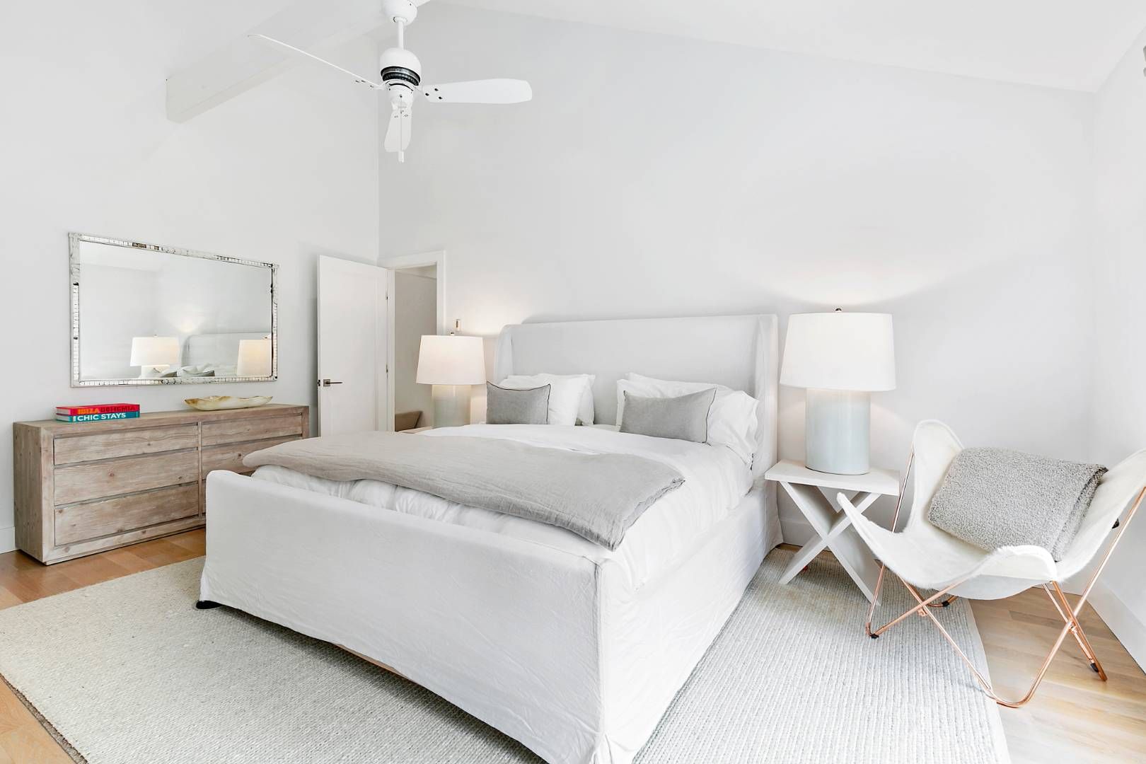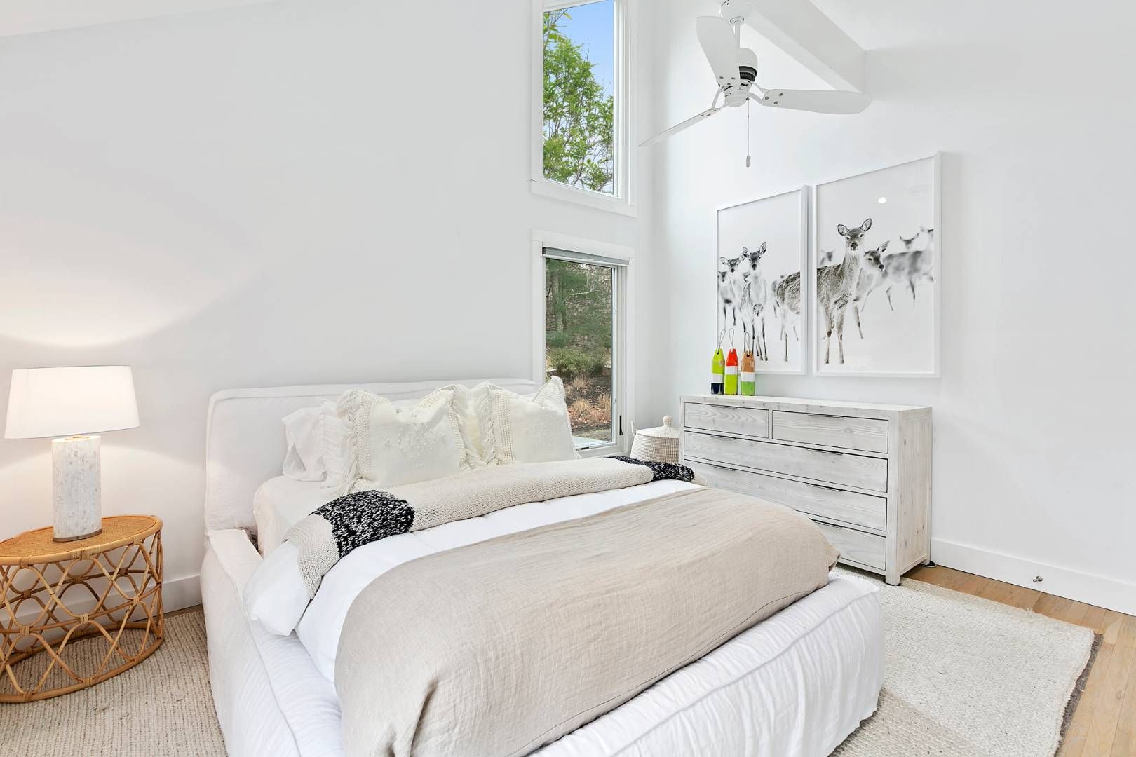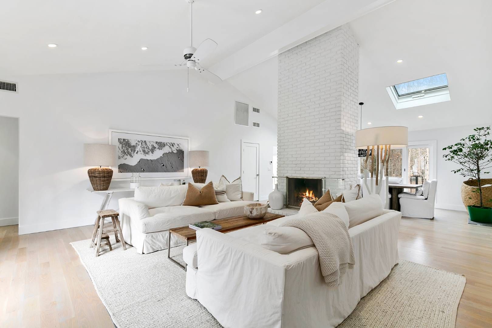 A chic modern exterior will greet you at the front door. Inside you will find a crisp, sunny Hamptons beach vibe as you enter the spacious living room with vaulted ceilings and a fireplace. The four bedrooms all have an individual quite and calming space. The master suite has a beamed cathedral ceiling, custom finished walk-in closet and a beautiful bath with marble countertop. The guest suite also has a custom walk-in closet and ample natural