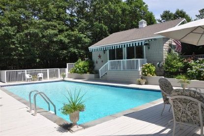 Gracious living in this 6 bedroom home with heated gunite pool and pool house. Nestled on a hill in the treetops with distant water views this completely renovated home is perfect for summer getaways and country living. Room for everyone, multiple entertaining spaces, wonderful decks both in the pool area and upstairs, magnificently landscaped private grounds.