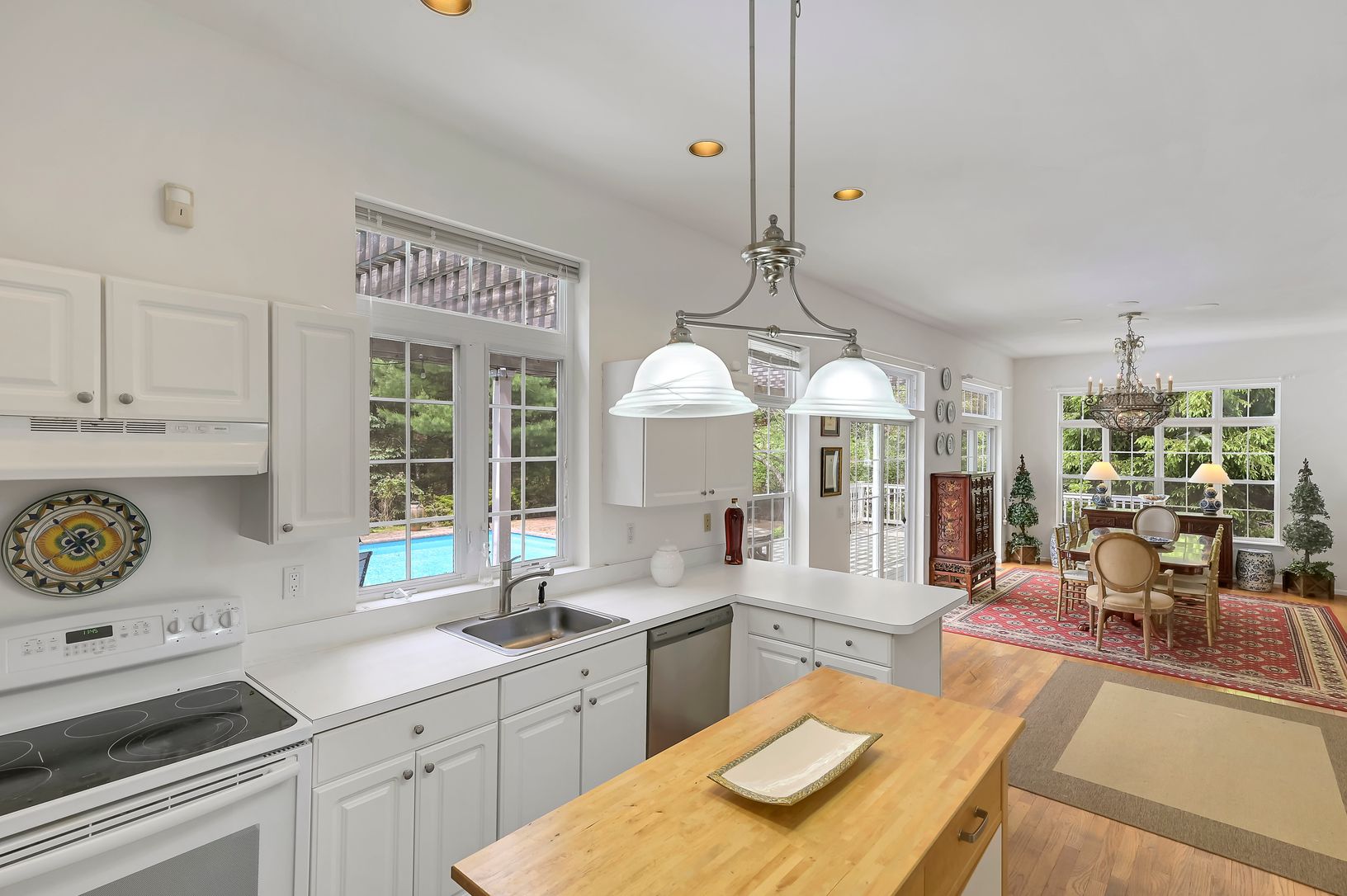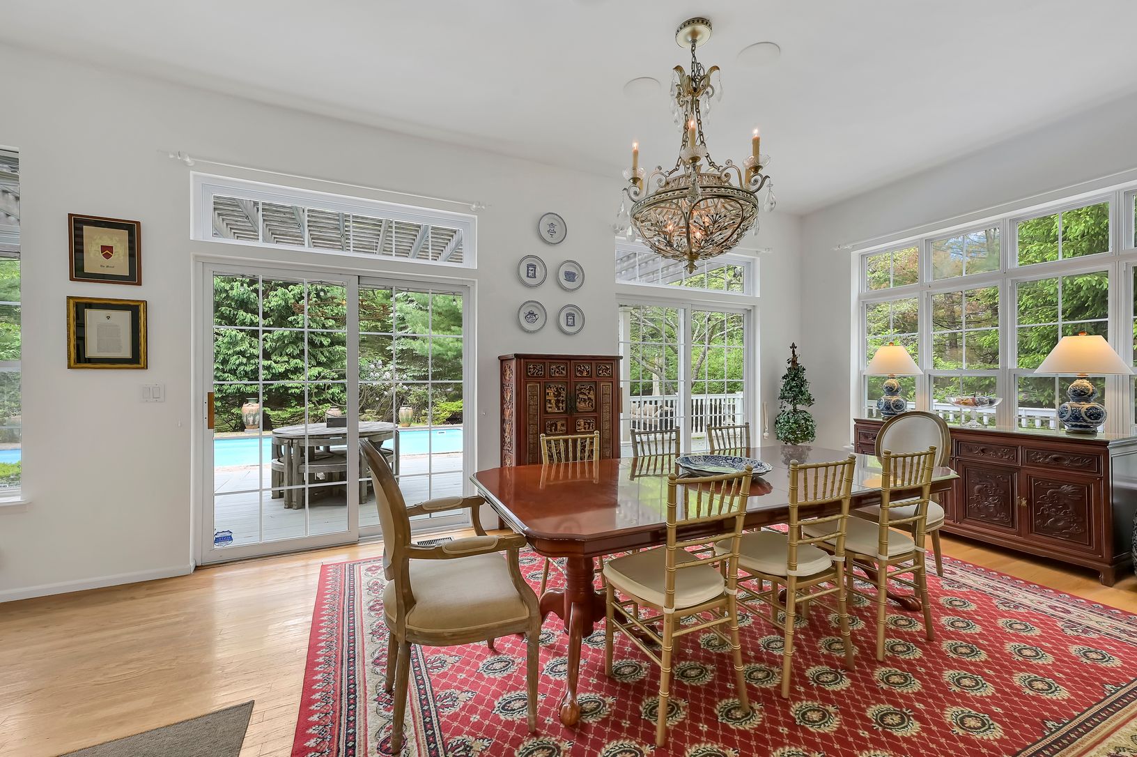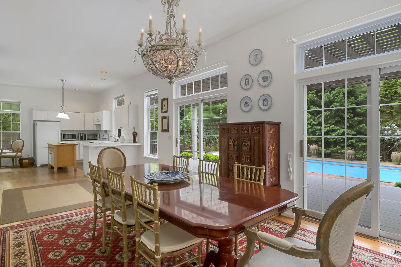 Recharge your soul here surrounded by nature and sunshine. Drive into the quiet cul-de-sac and enter through the white driveway gates onto this lush, secluded 1.49 ac property. Spread out on this large, open plan first floor, complete with a bright living room, kitchen, and dining area that both overlook the pool and gardens, plus a big windowed den and a full bathroom. Enter through a separate side entrance that comes in off the driveway whic