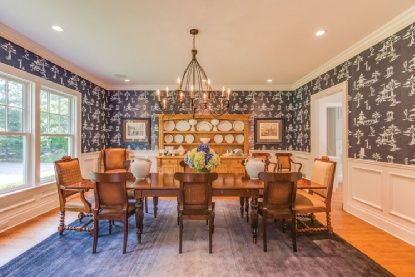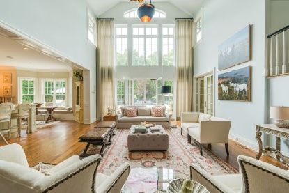The majestic feeling begins when you enter the tree-lined driveway leading up to this beautiful Southampton postmodern home situated on 1.2+/- acres. Great outdoor living space surrounds the heated gunite pool with waterfall and spa. This 6,500 +/-sq. ft. home features five bedrooms, five full and two half baths, state-of-the-art kitchen, finished lower level and a formal dining room. The open floor plan includes a gourmet eat-in kitchen, a l