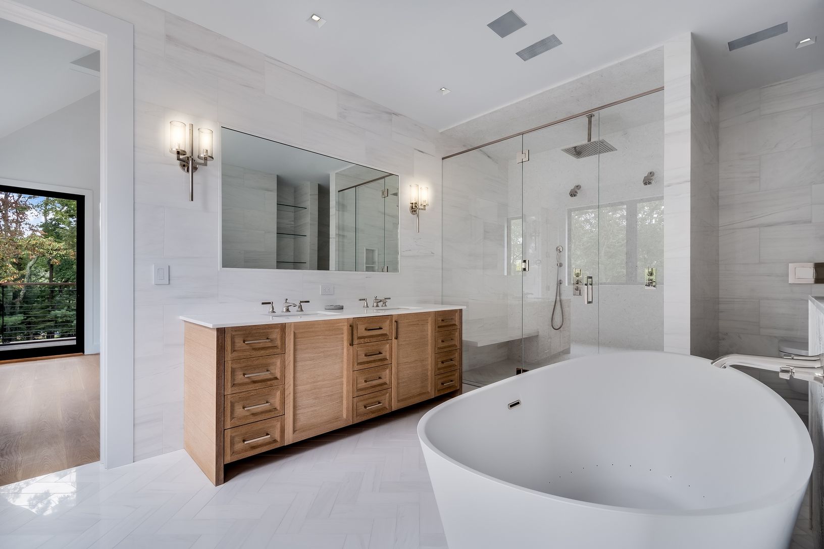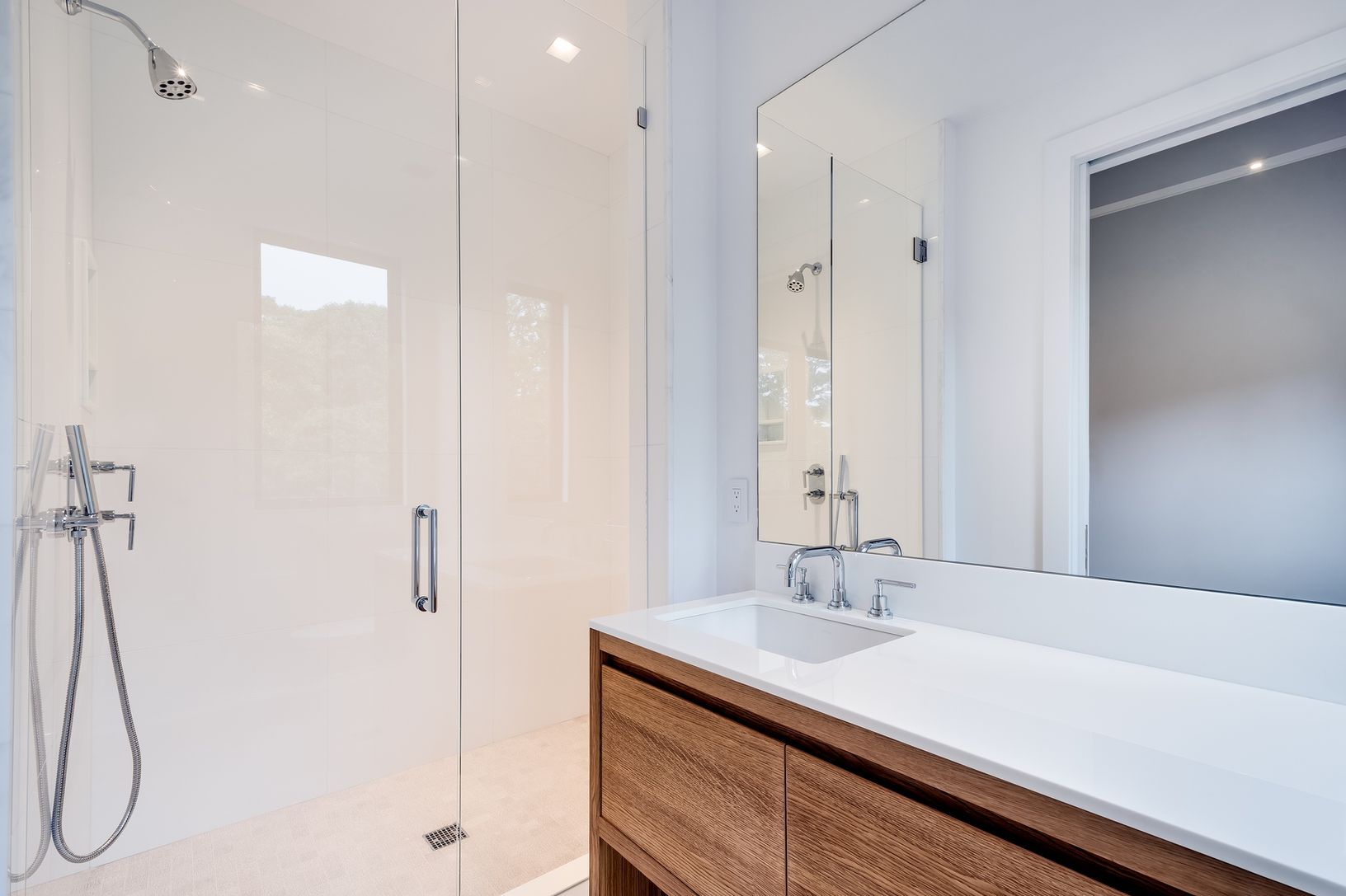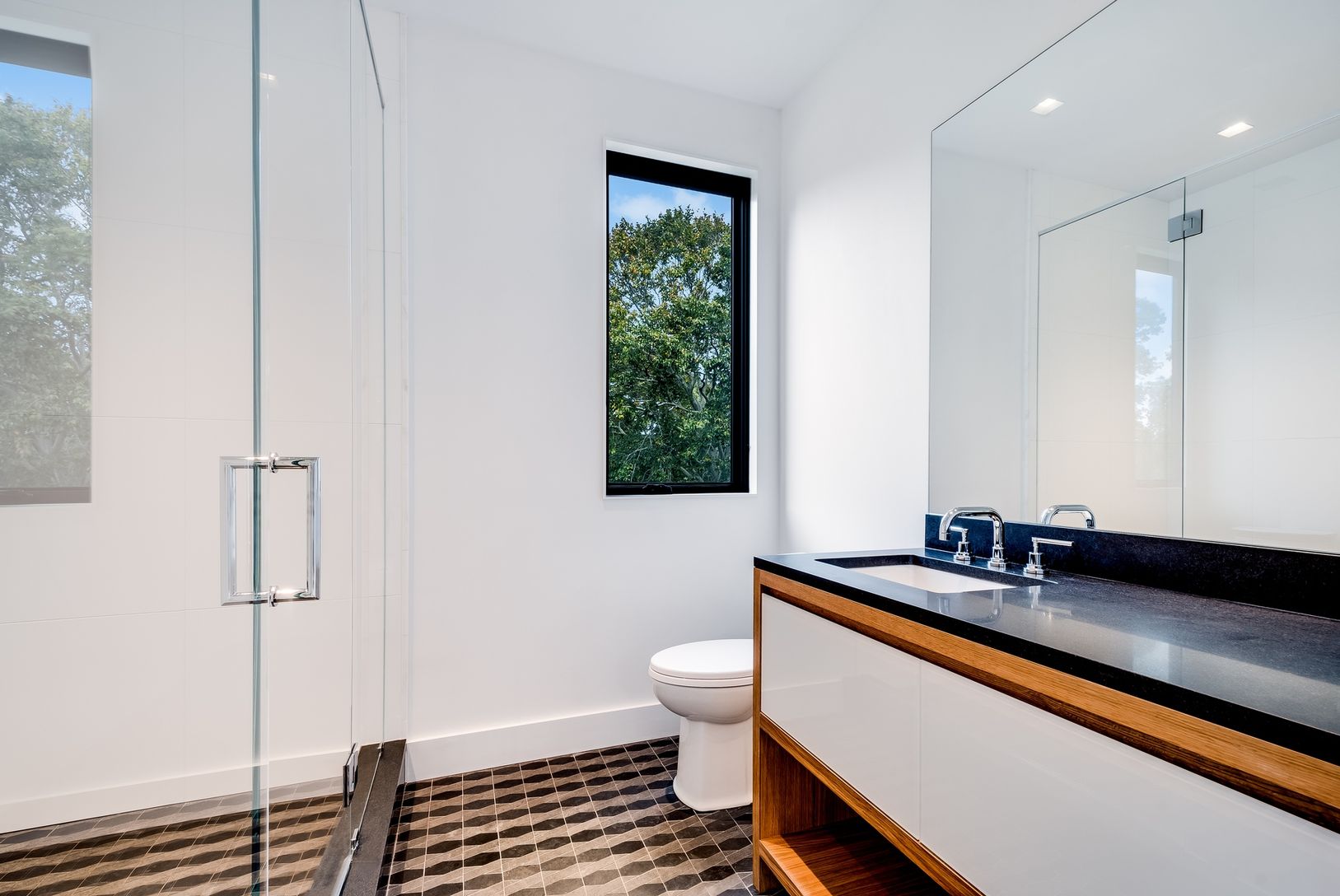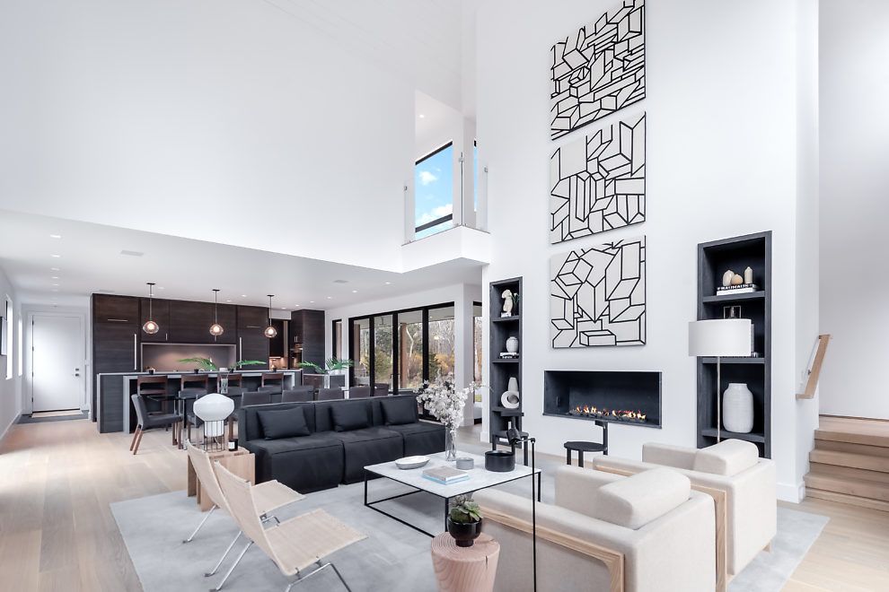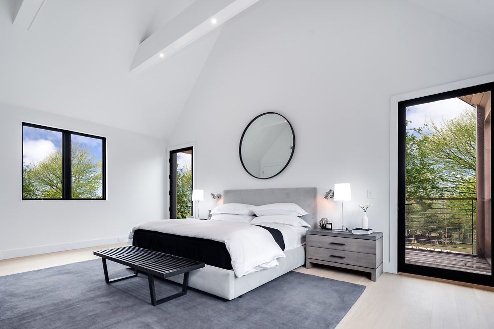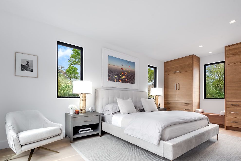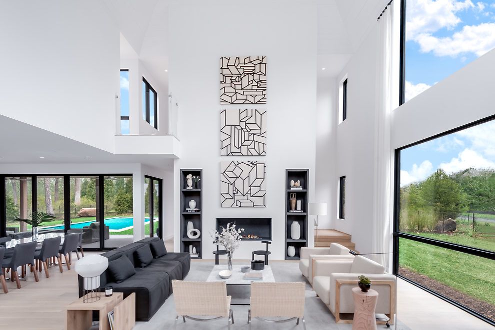 Custom-designed and built 5-bedroom 6800SF modern home with water views in a North Haven beachfront community. The generous main floor open plan incorporates chef's kitchen, pantry with wine refrigerator, dining area, great room with fireplace, den/media room and first-floor guest suite.The sumptuous master suite has a balcony, fireplace, Hollywood-style marble bath and custom closet. there's an adjacent office, too. The guest master suite is