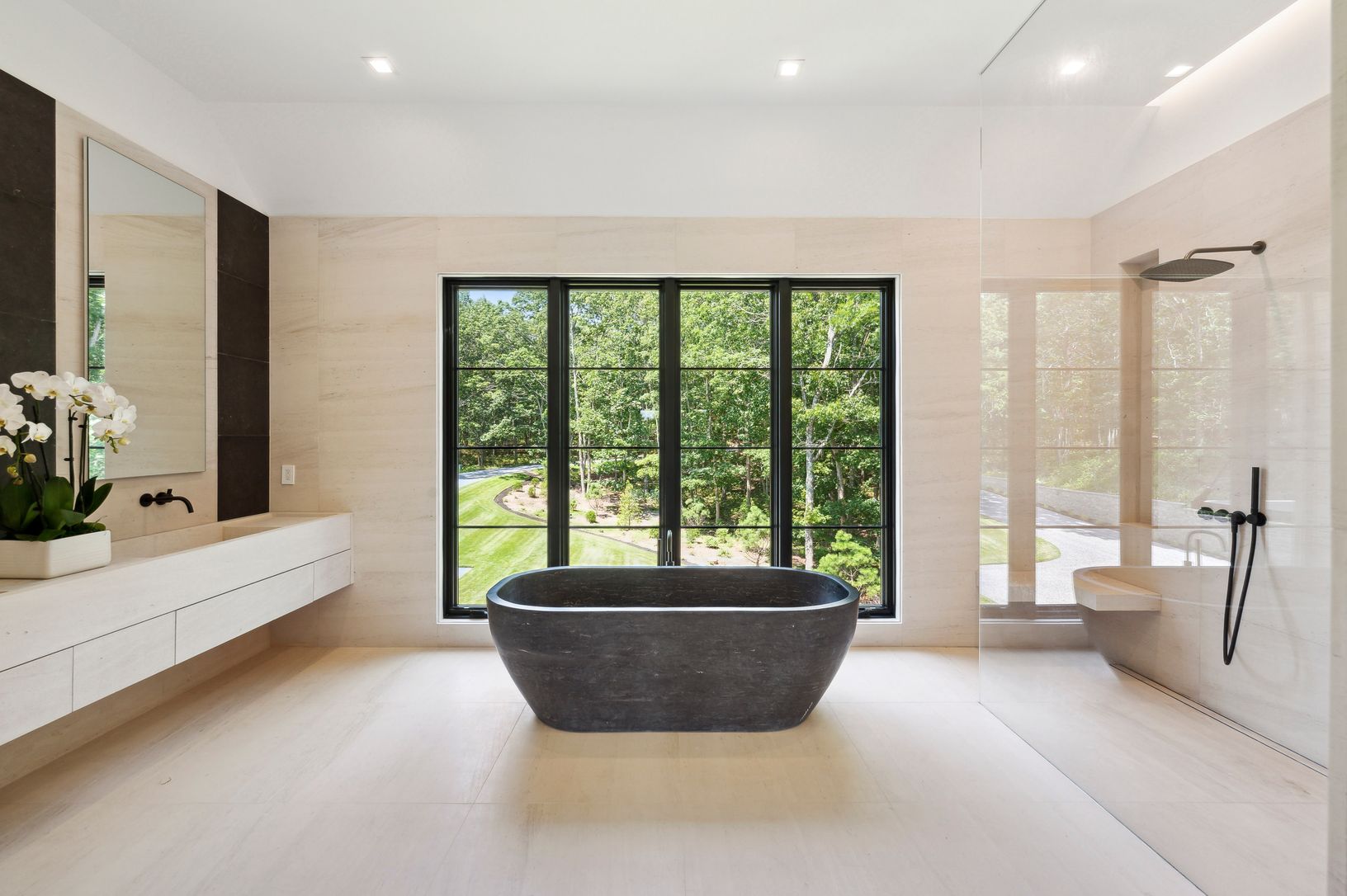 Experience the ultimate in luxury and sophistication at this exquisite newly constructed modern hideaway nestled in the heart of Water Mill. Sited on 7 lush acres with an impressive approach, this resort-style estate offers the ultimate in privacy and the perfect setting for your year-round Hamptons retreat. Offered truly move-in ready and spanning 8,320sf+ of beautifully curated living spaces on 3 fully finished levels, this meticulously ex