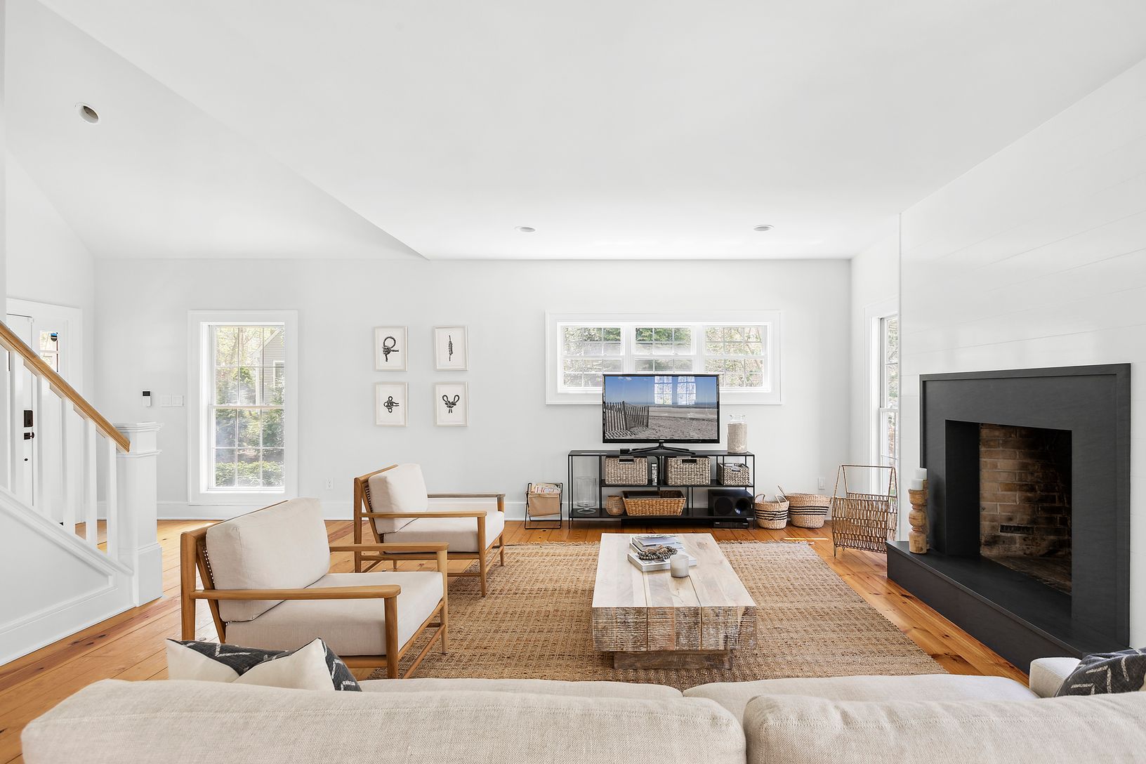 Nestled off a quiet cul-de-sac street in a peaceful neighborhood just moments to downtown Bridgehampton, this charming residence offers 4 bedrooms and 2.5 baths across its +/-2400 sq. ft of immaculate living space. Meticulously maintained and benefiting from a recent renovation that includes numerous updates, the property is totally turnkey and ready for Summer '24 occupancy. The open concept first floor living space is bright and inviting - e