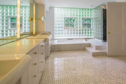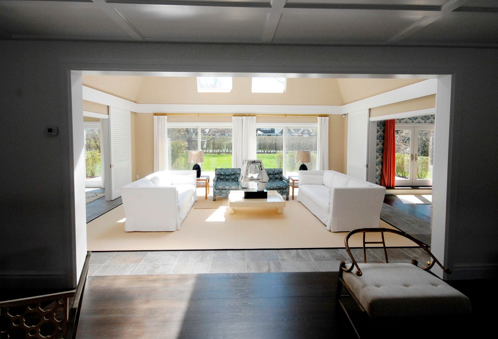 Evoking the jet-set aesthetic popularized by photographer Slim Aarons, this meticulously renovated 5,000+/- square foot, 5 bedroom midcentury estate on 2+/- acres in the Georgica Pond enclave has a restored marble and tile 55 foot saltwater pool and spa, oversized pool house, and a beautiful grass tennis court a rare find in East Hampton Village. An extensive renovation by Form Architects modernized the home while preserving the timeless layo