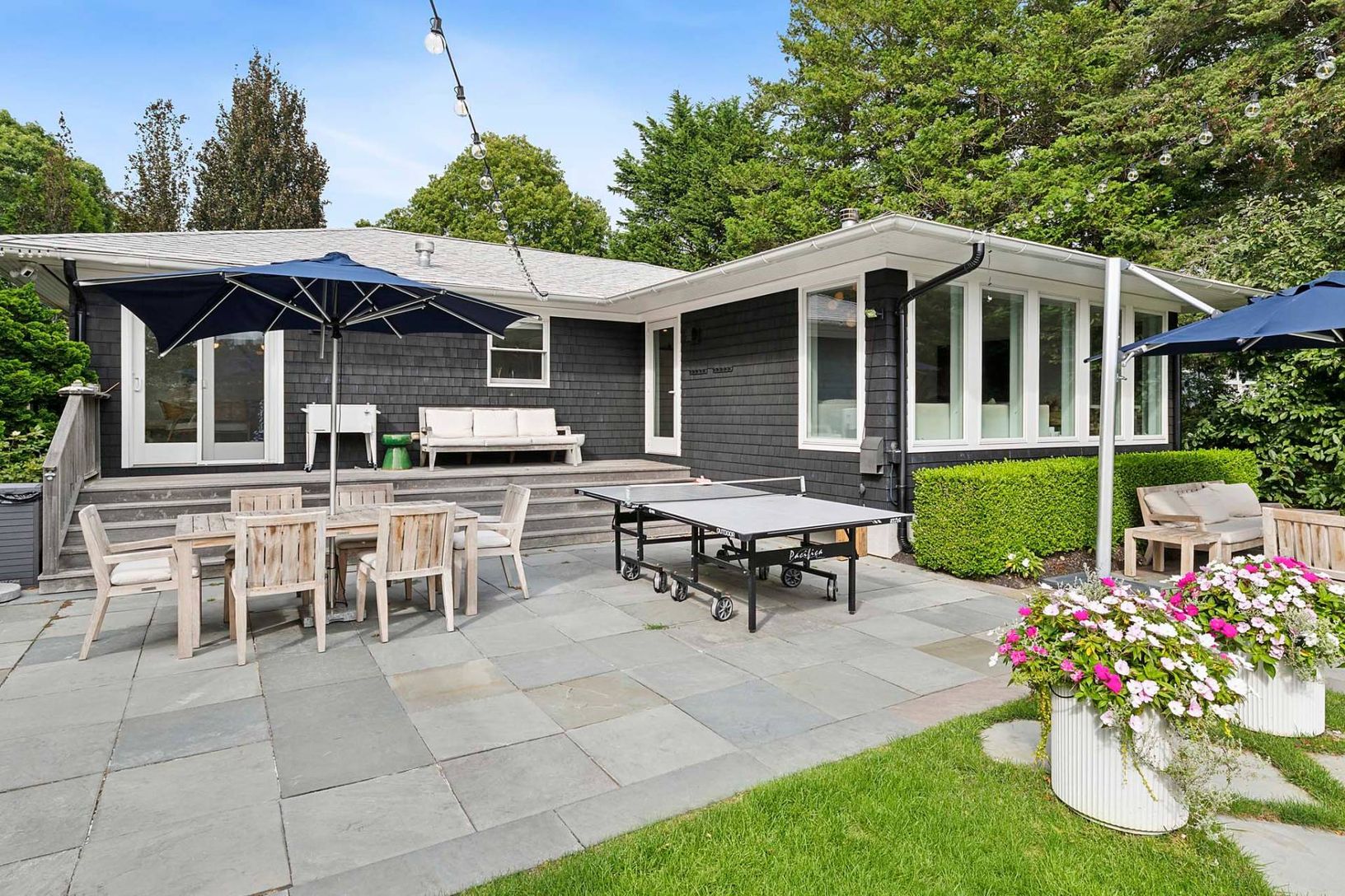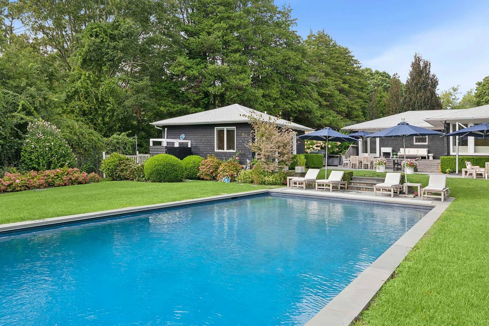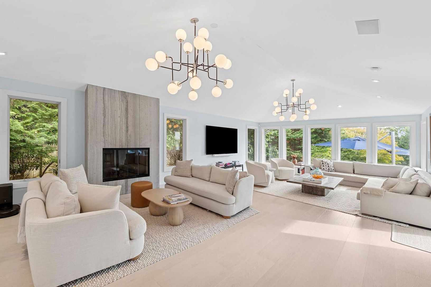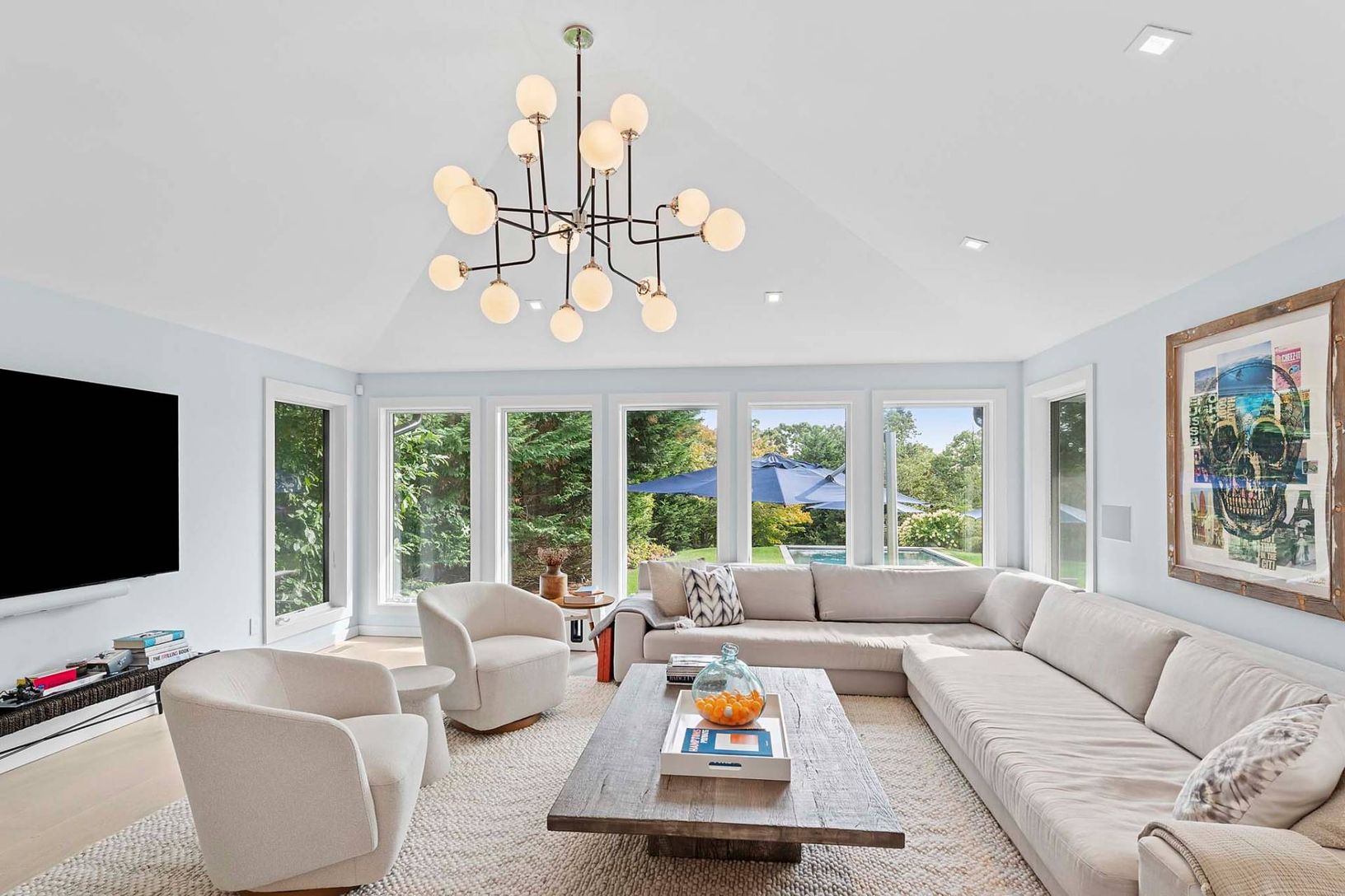 This pristine, newly renovated 5-bedroom, 4-bath home offers a stunning view of the property, poolside entertainment area, and pool house. The reimagined kitchen features high-end appliances and opens seamlessly to inviting living and entertaining spaces. An oversized 86" TV is perfect for movie nights or watching your favorite sporting events. Designed with a contemporary vibe, the home offers exceptional indoor and outdoor relaxation. The 20
