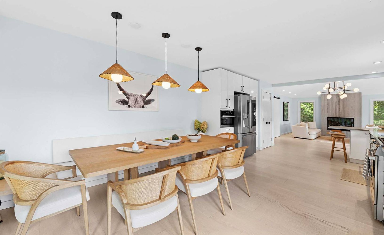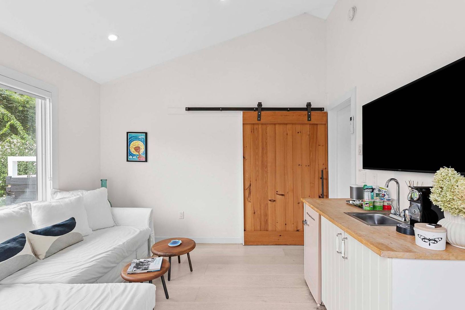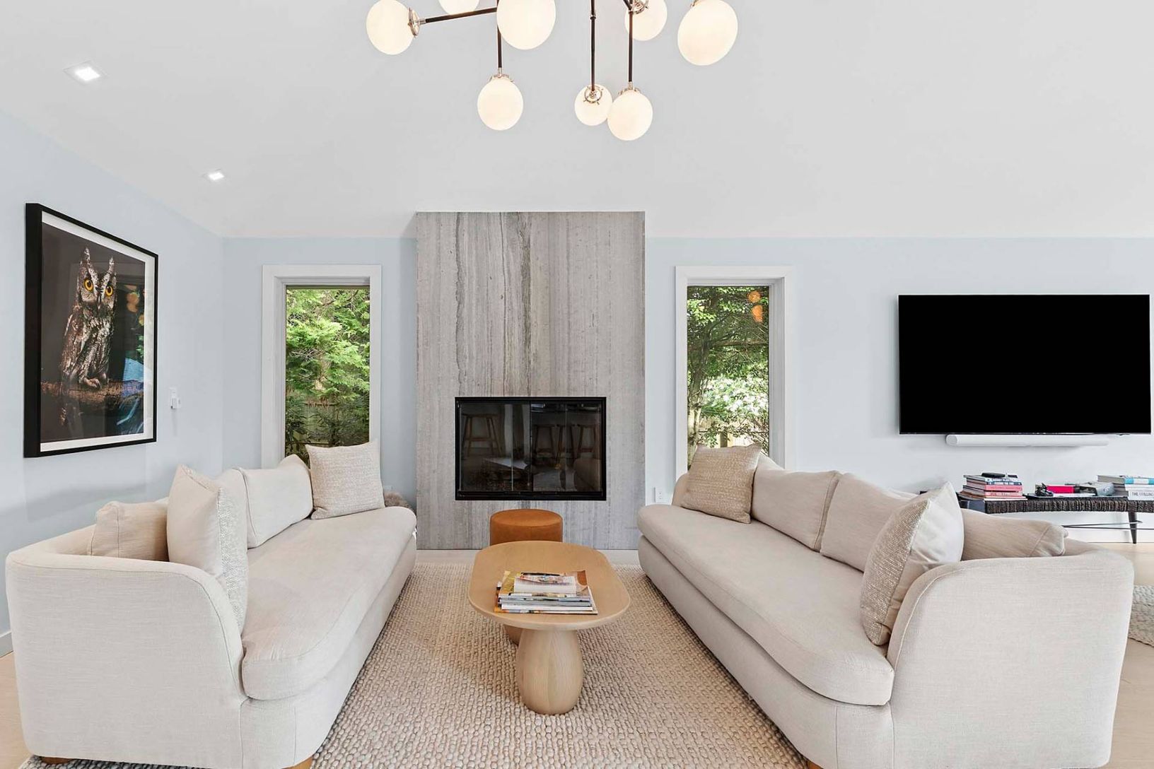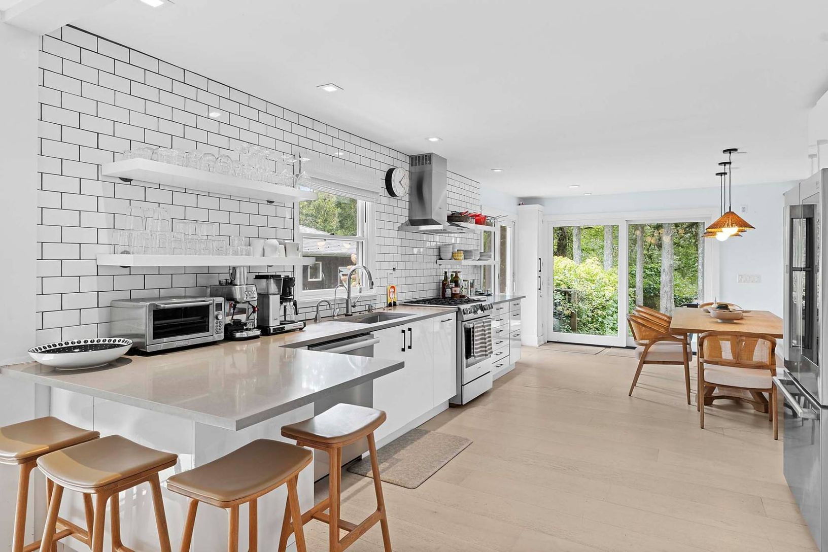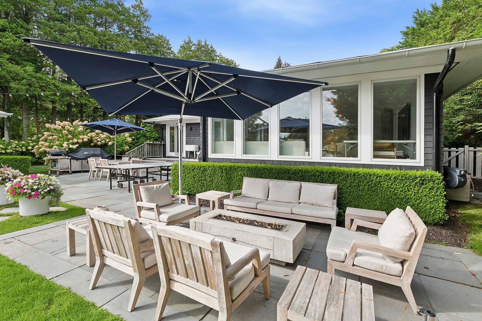 This pristine, newly renovated 5-bedroom, 4-bath home offers a stunning view of the property, poolside entertainment area, and pool house. The reimagined kitchen features high-end appliances and opens seamlessly to inviting living and entertaining spaces. An oversized 86" TV is perfect for movie nights or watching your favorite sporting events. Designed with a contemporary vibe, the home offers exceptional indoor and outdoor relaxation. The 20