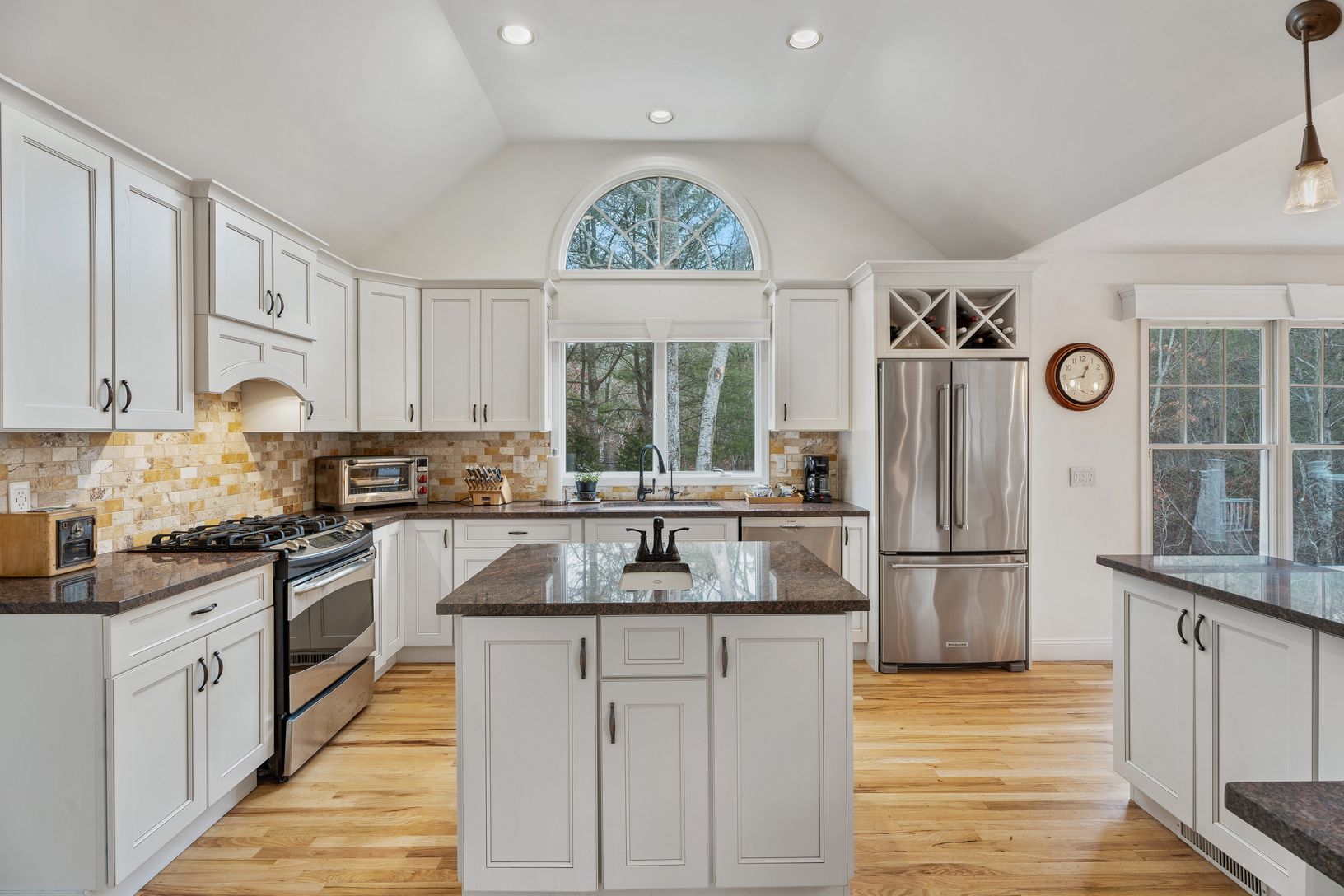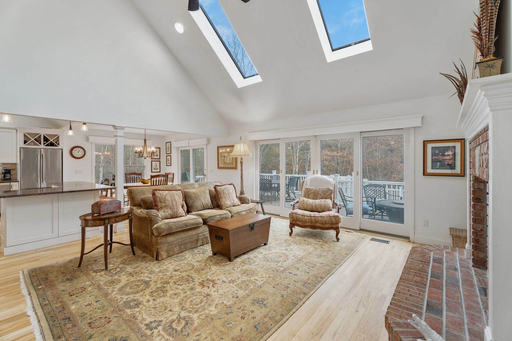 Tucked away on 1.3 acres , 50 Lakeside Lane is a 4 bed, 3 bath move-in ready home in Westhampton's sought-after Lakeside neighborhood. Surrounded by nature, this bright contemporary features a cathedral-ceilinged open living room, eat-in kitchen, and two fireplaces, including one in the first floor primary suite. A formal dining room and a den, along with another full bath complete the first floor. Three additional bedrooms are upstairs with a