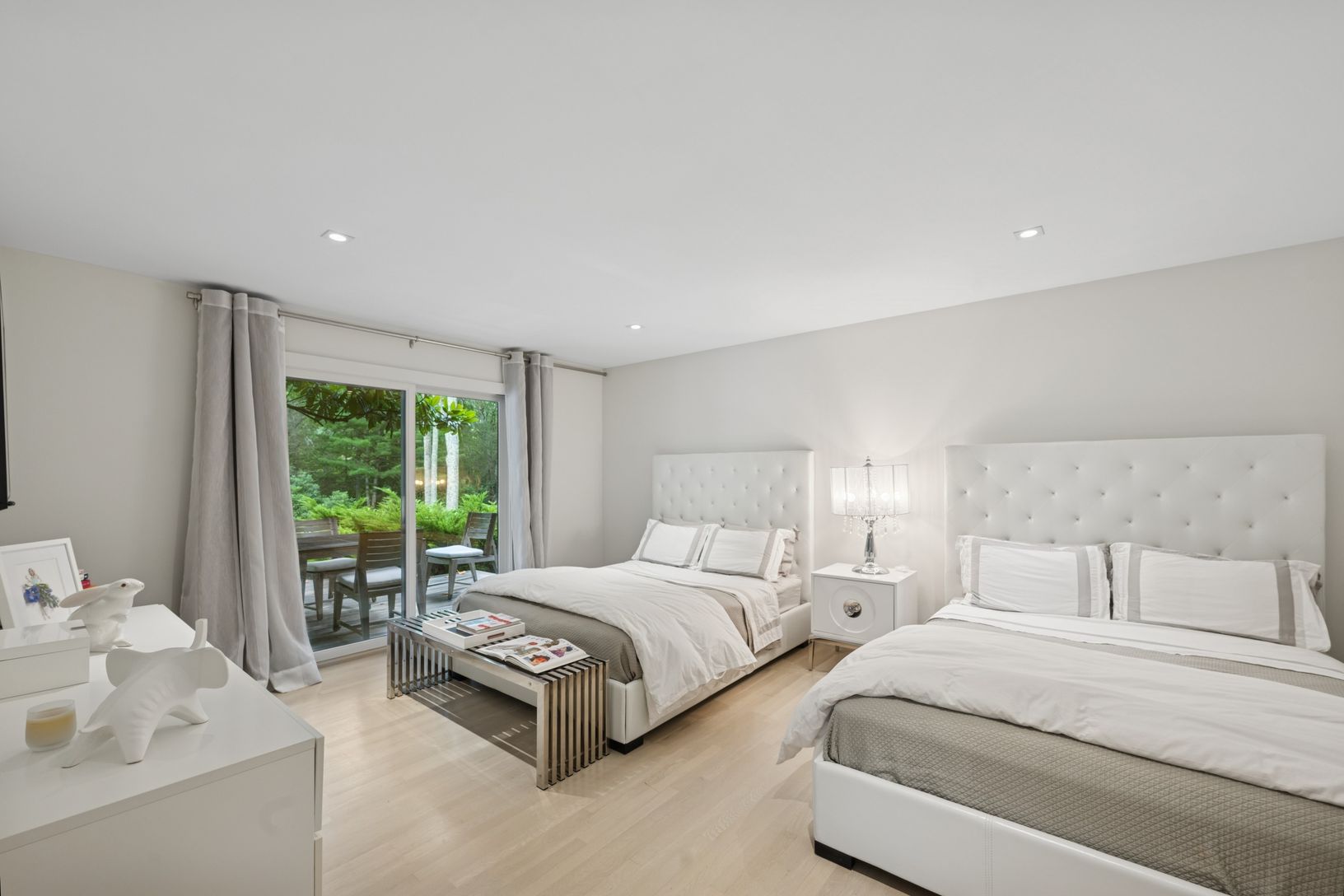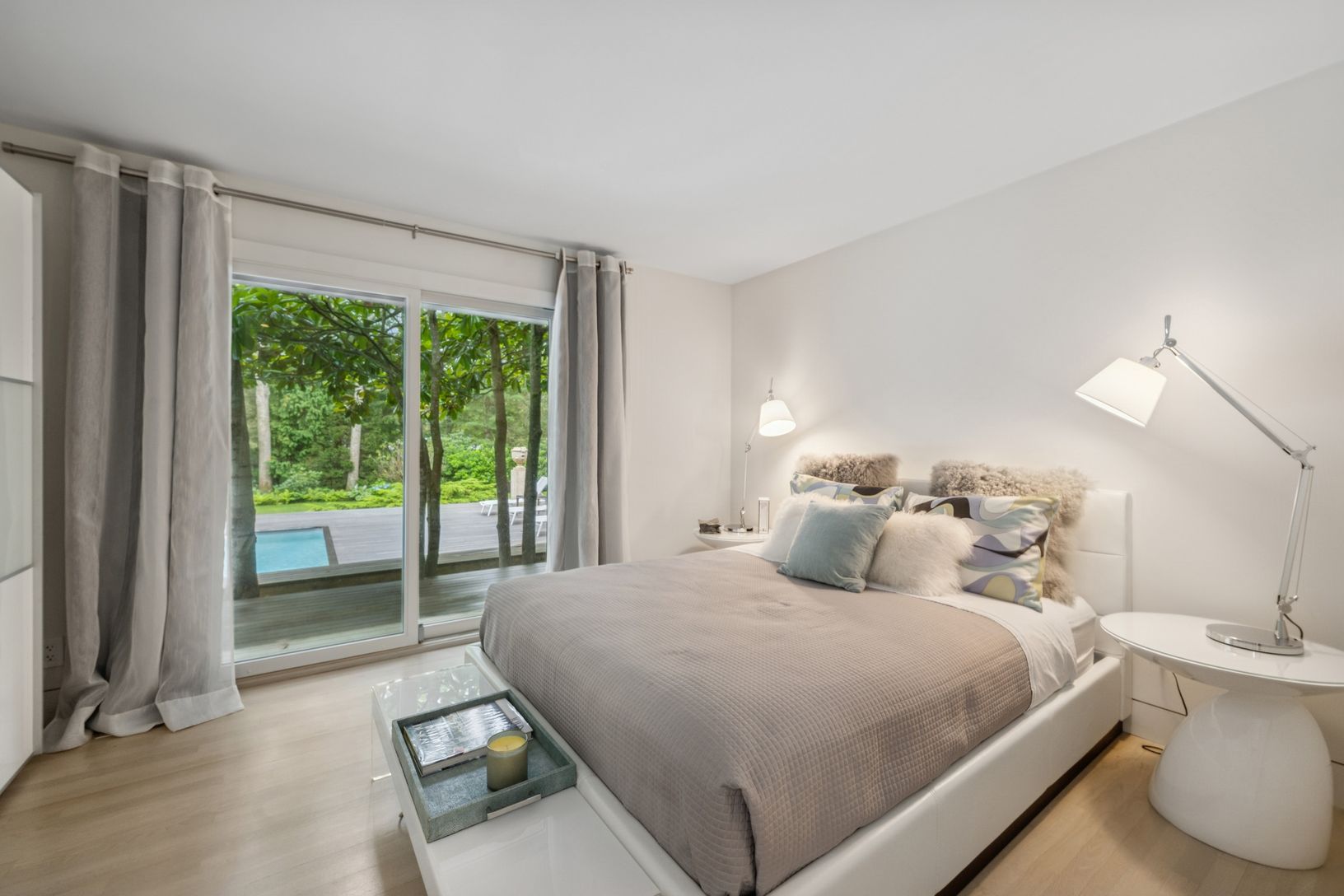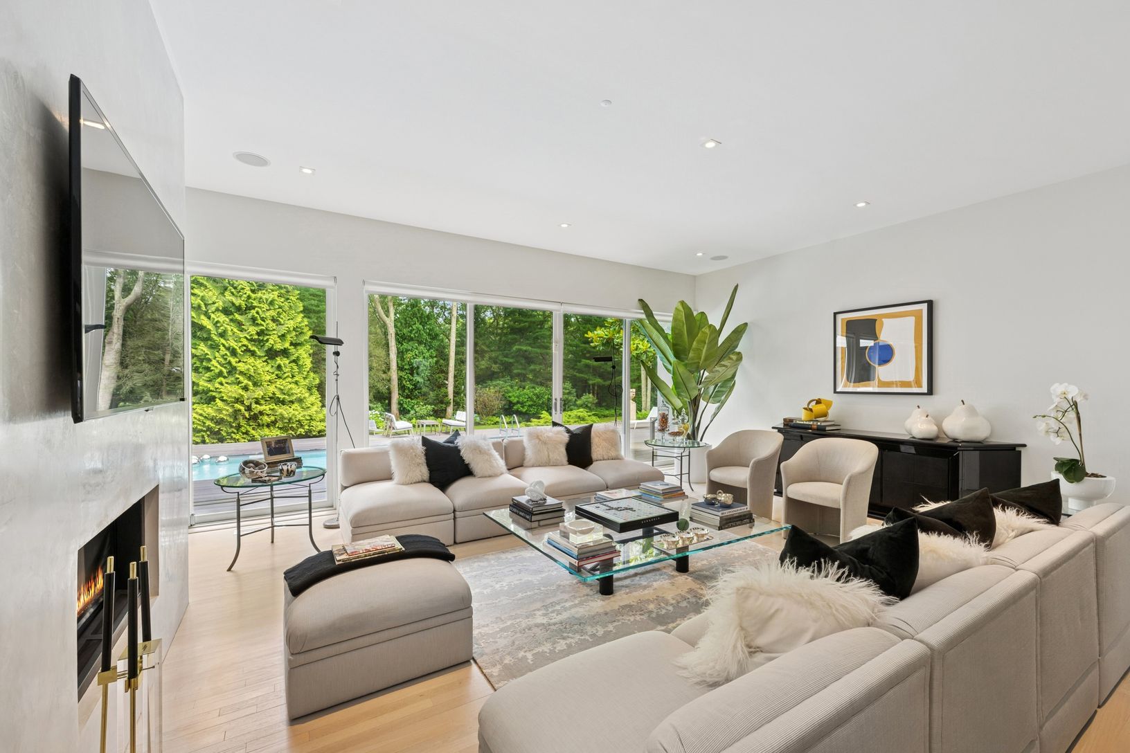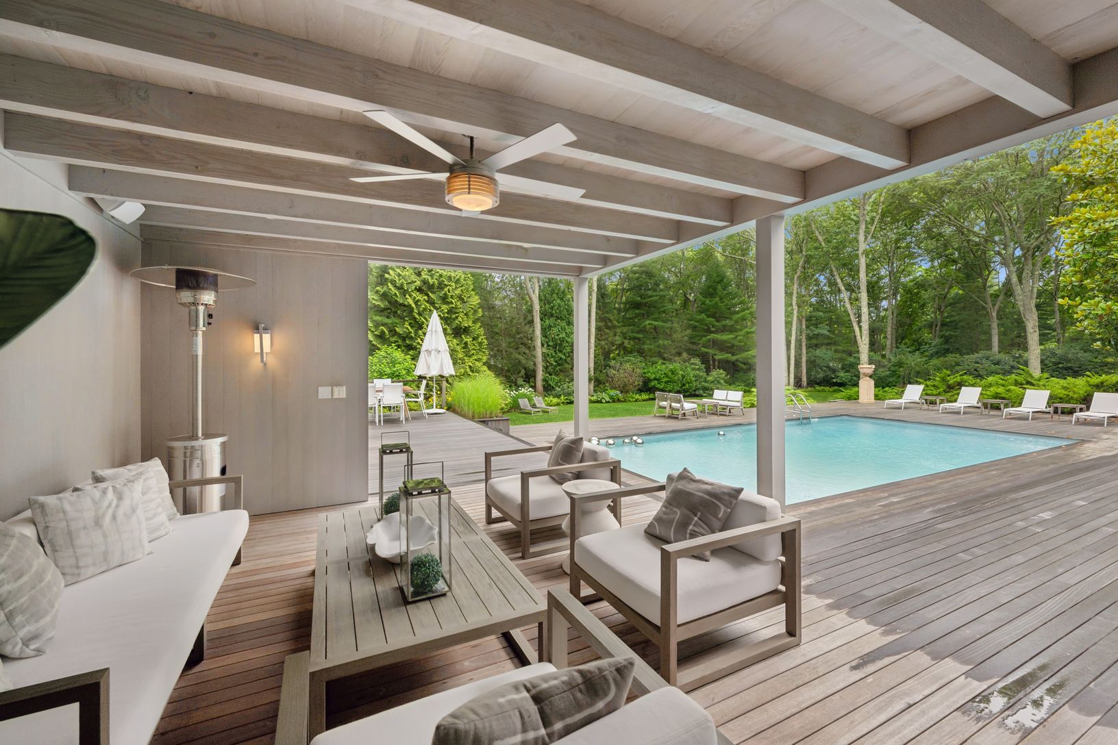 This gorgeous five bedroom, four bath Bridgehampton Contemporary was recently renovated and professionally designed and decorated so that the rooms flow with ease. The interior features two living rooms, a den, formal dining, and an eat-in kitchen with giant sliding glass doors. The property is just under 2 +/- acres with sprawling lawns, wonderful landscaping, and a great outside entertaining area around the heated pool. Two week rental avail