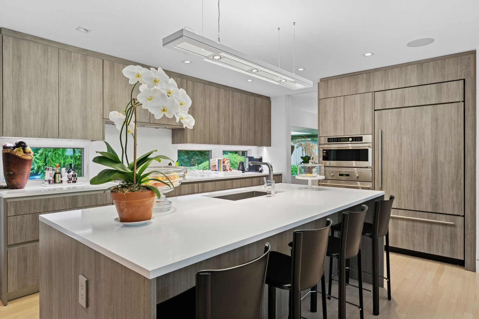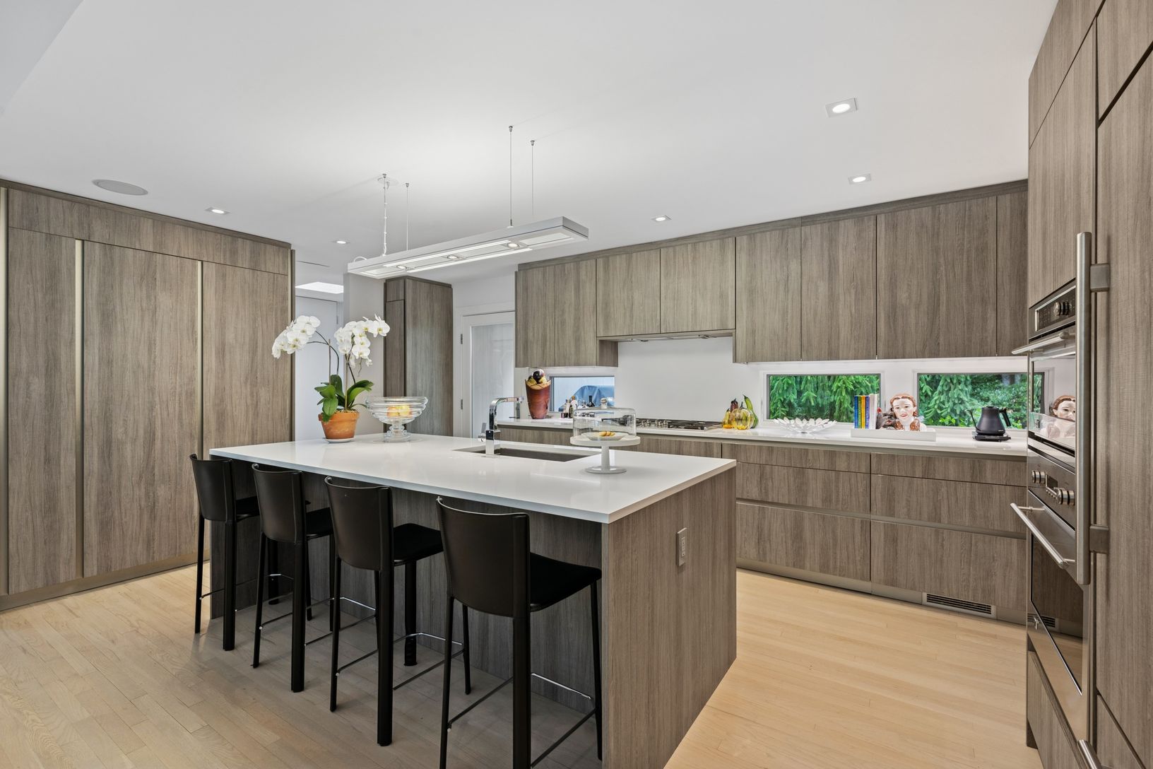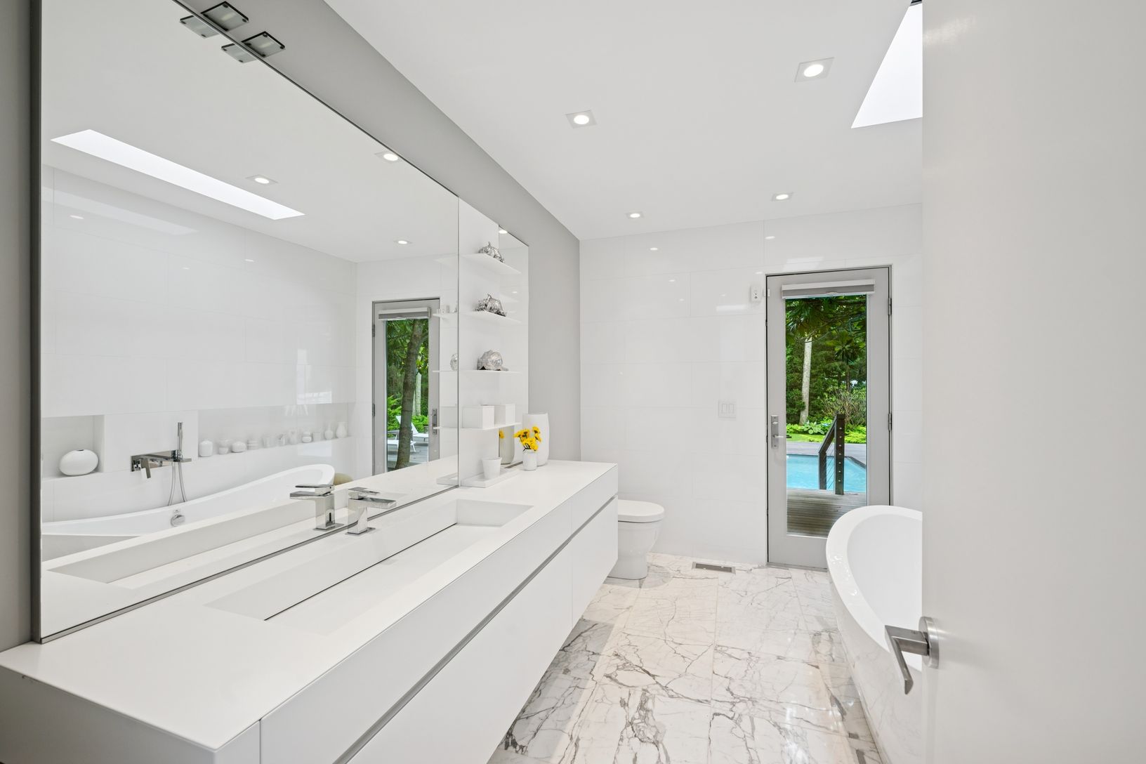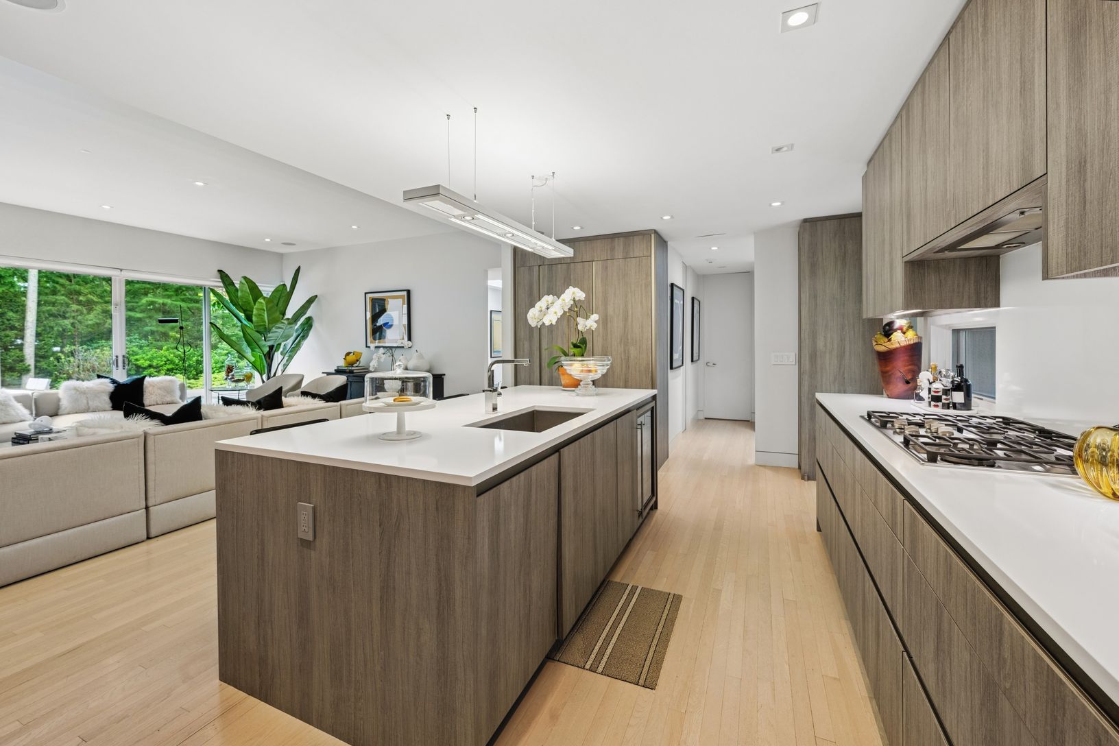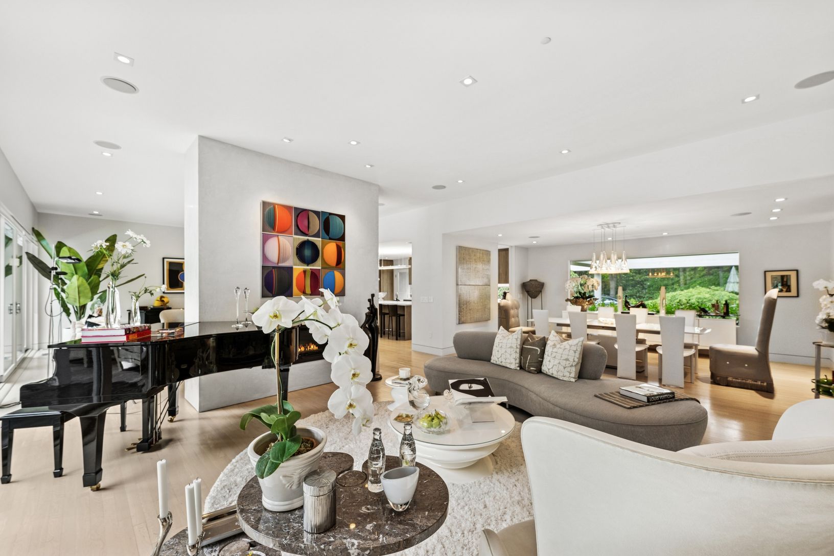 This gorgeous five bedroom, four bath Bridgehampton Contemporary was recently renovated and professionally designed and decorated so that the rooms flow with ease. The interior features two living rooms, a den, formal dining, and an eat-in kitchen with giant sliding glass doors. The property is just under 2 +/- acres with sprawling lawns, wonderful landscaping, and a great outside entertaining area around the heated pool. Two week rental avail