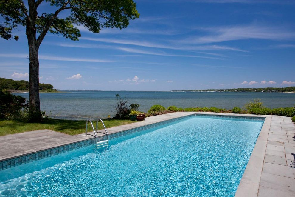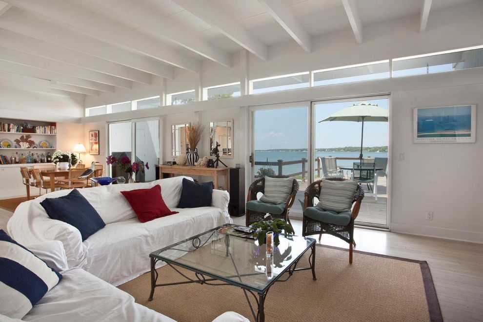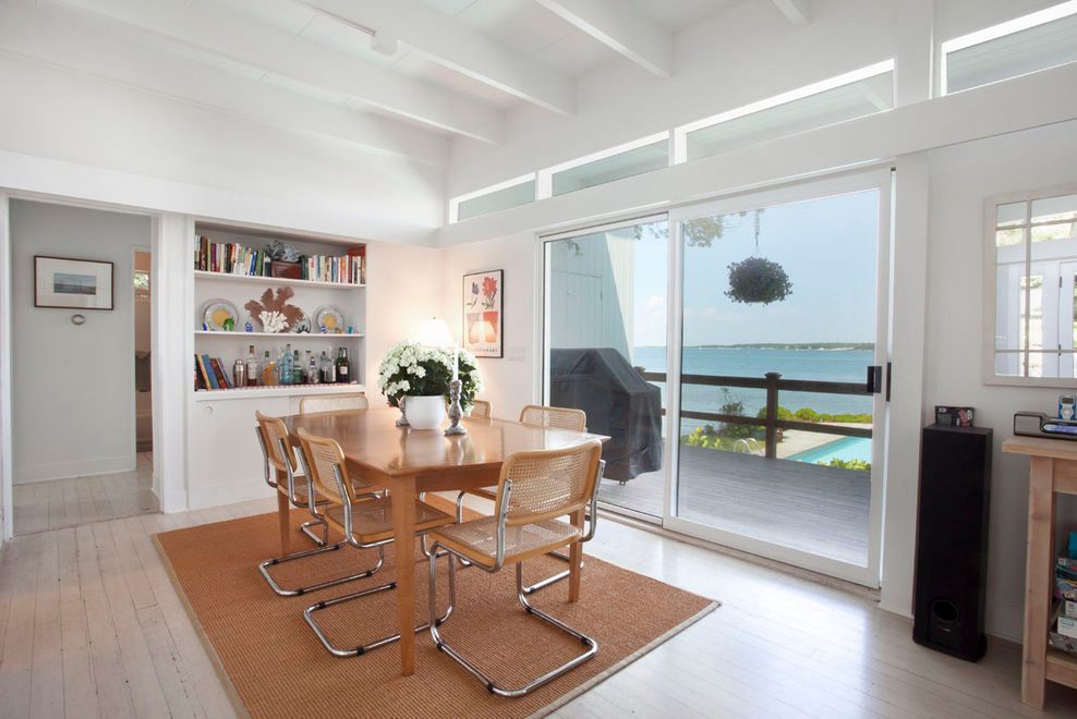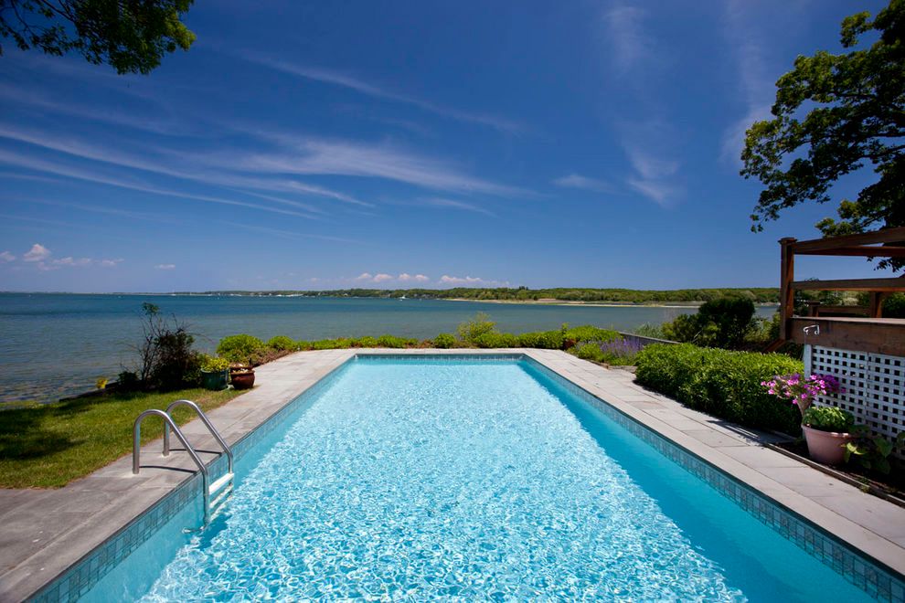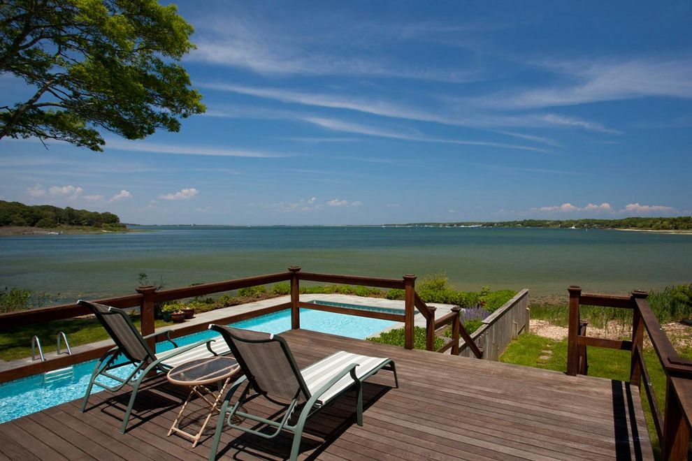 All hands should be on deck to see the incomparable views from this contemporary beach house right on the edge of Three Mile Harbor. The sunsplashed open living plan, including great room with fireplace, efficient kitchen, 4 bedrooms and 2 baths, spills out to a large deck overlooking a bulkheaded swimming pool that seemingly merges with the harbor and beyond. Moor your boat just offshore and enjoy fishing, sailing, water skiing, winds