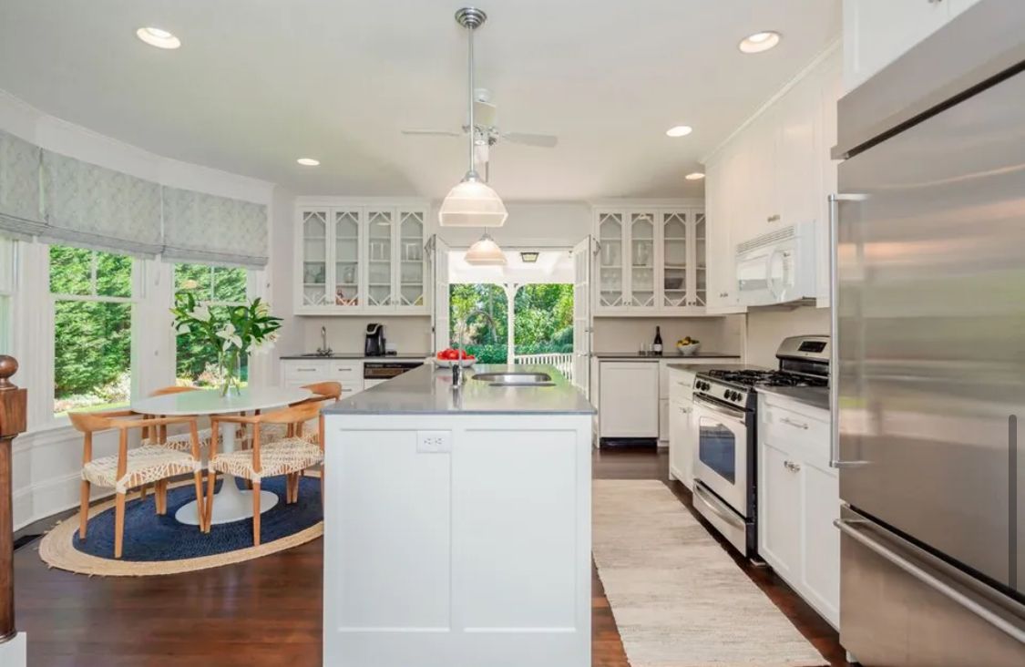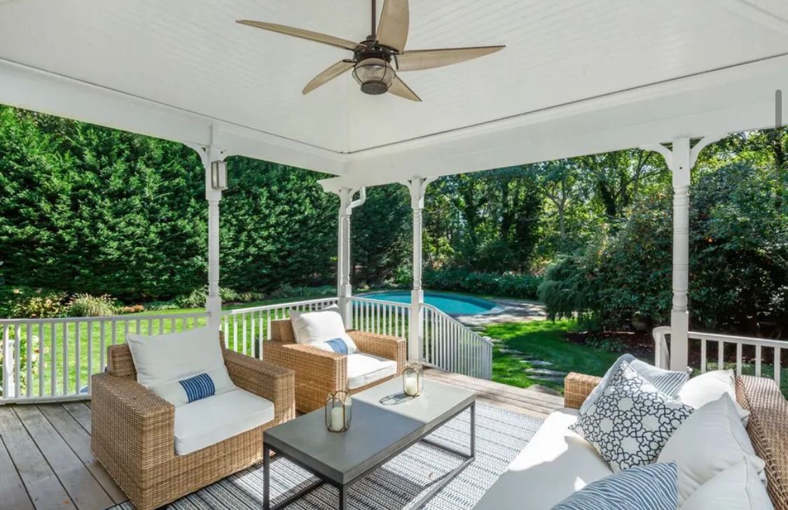 Traditional classic village home with modern interiors. Open floor plan with eat-in kitchen that opens to covered porch. Second floor with four bedrooms and four baths. Outdoors you can enjoy large furnished covered living room (access from kitchen and dining room), gardens and pool. Located one block from Southampton Village Main Street in a prime location. One mile to ocean beaches—beautiful to walk or bike.