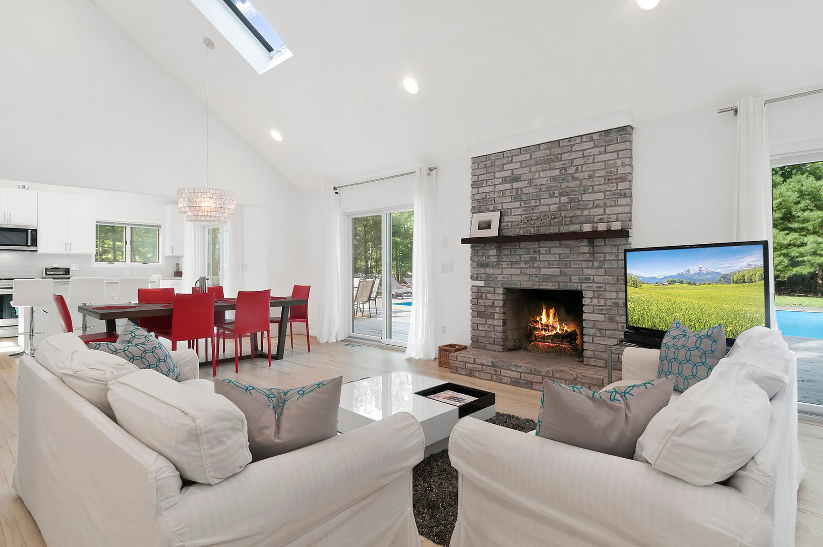 This just renovated modern beach house sits on a landscaped half acre in the Settlers Landing waterfront community of East Hampton. This 2000 +/- square foot light filled contemporary home features a bright living room with fireplace and sliders out to the ultimate outdoor entertaining area. The 20x40 pool with new liner is encased in a brand new deck with a lush lawn area beyond. Four bedrooms and three and half bathrooms offer plenty of r