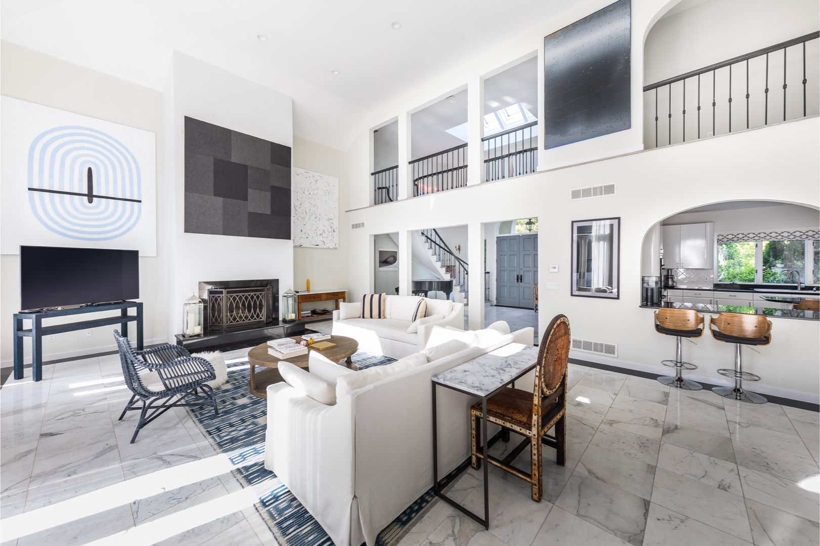 White stucco house with red-tile roof sits on 2.3 acres of beautifully landscaped grounds with heated gunite pool and outdoor gazebo dining area equipped with barbeque grill.Room for Tennis. House architecture has a contemporary feel: airy, high-ceiling rooms with lots of white tones and modern shapes. The home has a fire place, formal dining area, 5 bedrooms (Master Suite & Jr. Master), 6 fully renovated bathrooms, 3-zone air-conditionin