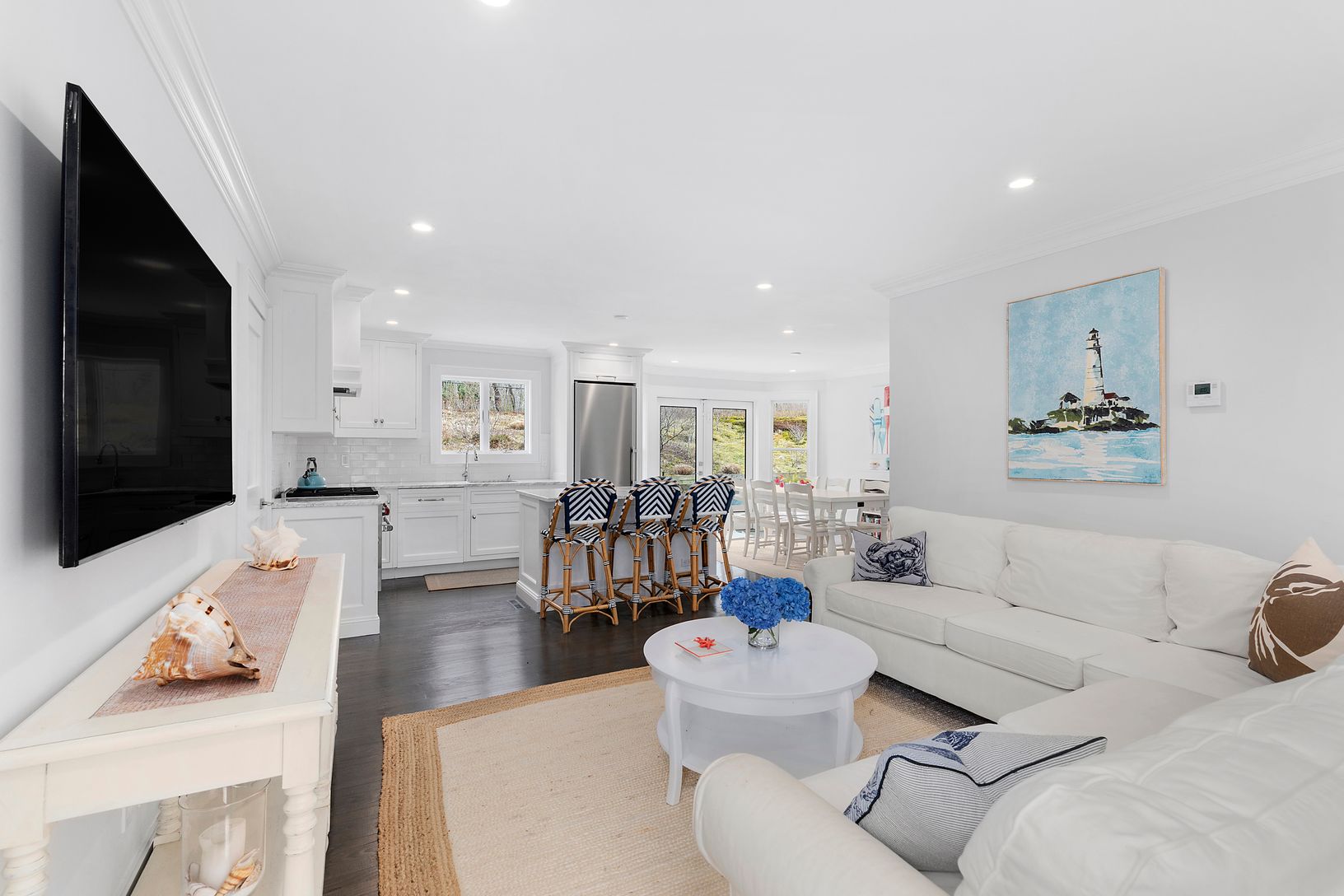 New to the market, this stunning 1.6 acre property sits on a quiet street that’s at once private and convenient to everything. A mahogany porch welcomes you, and once inside you’ll find a home that’s been completely renovated to the highest standards of style and craftsmanship. The open floor plan offers multiple lounging, dining and recreation areas on three levels, and a wood-burning fireplace gives the home year-round appeal. The chef’s kit
