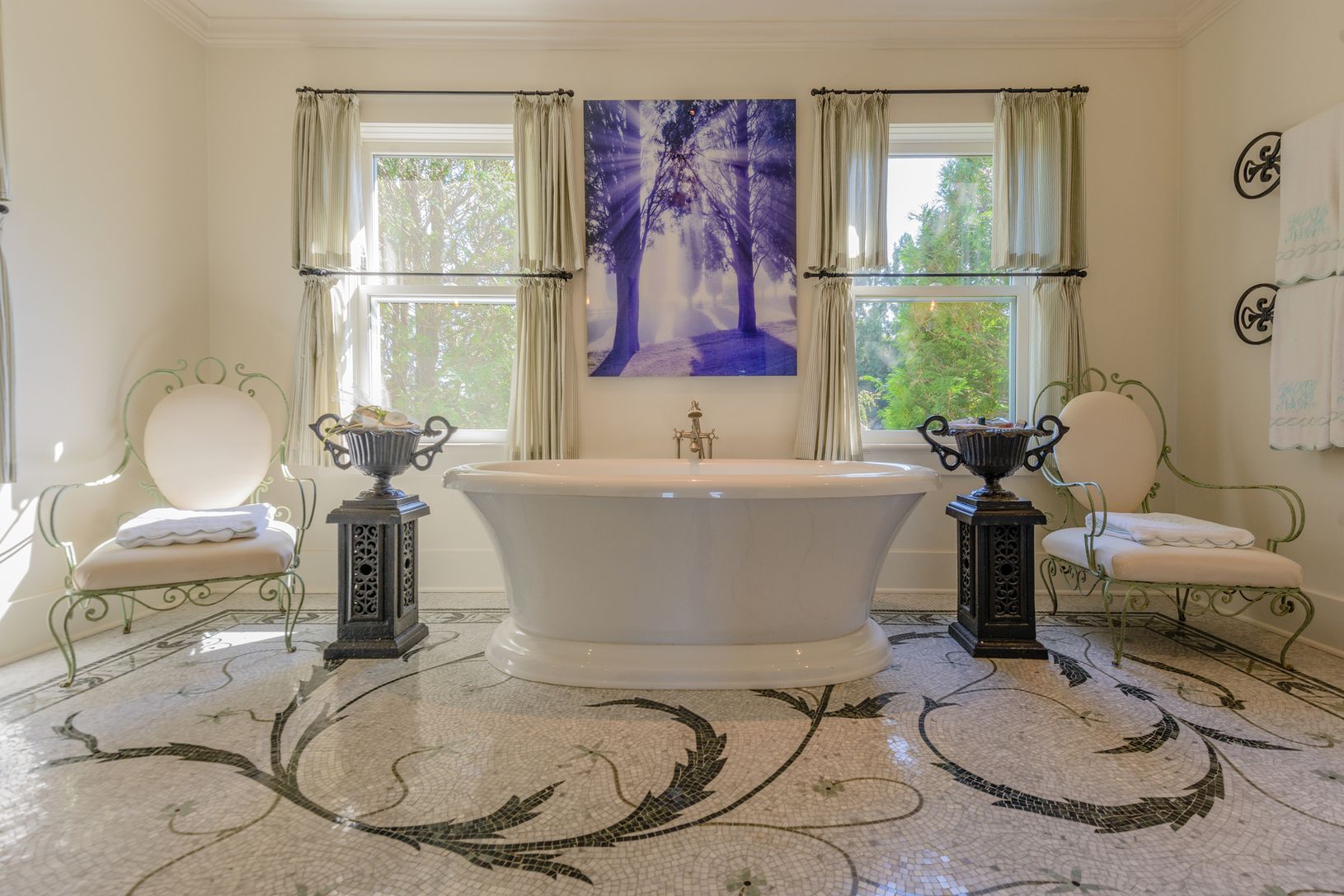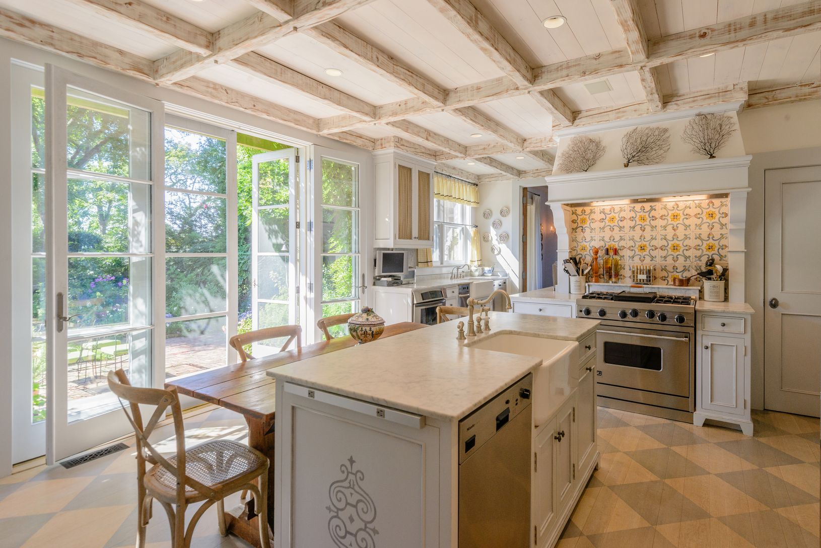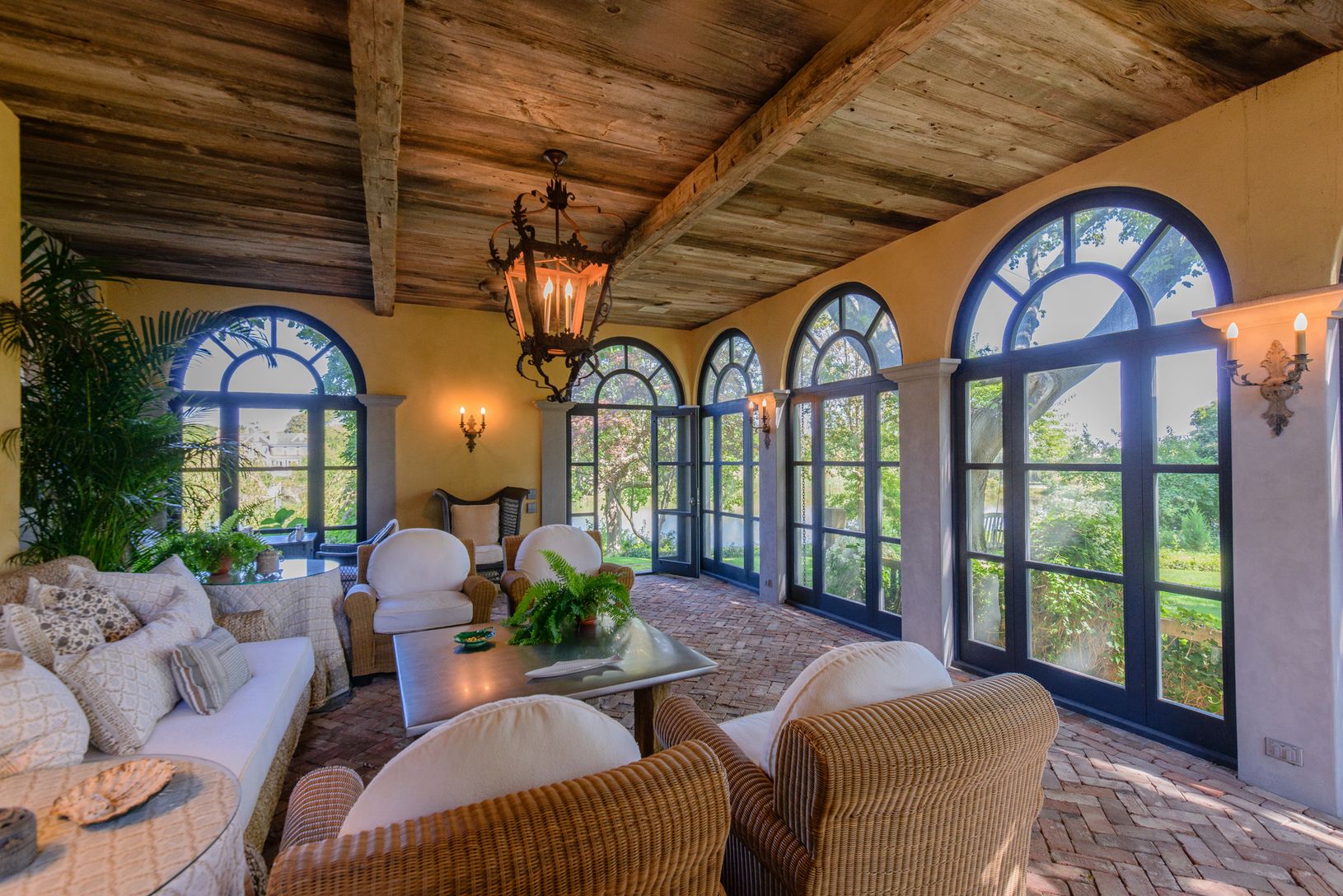 Exquisite waterfront villa off Mecox Bay situated on 2.7+/- park-like acres. This elegant Tuscan style villa sits amongst the most beautiful gardens offering multiple indoor and outdoor entertaining areas. With 640 ft. of water frontage on Burnett Creek the views are breathtaking from every vantage point. The Circa 1920s five bedroom home offers a chef's kitchen, formal living room with fireplace, spacious screened in patio, intimate sunroom,