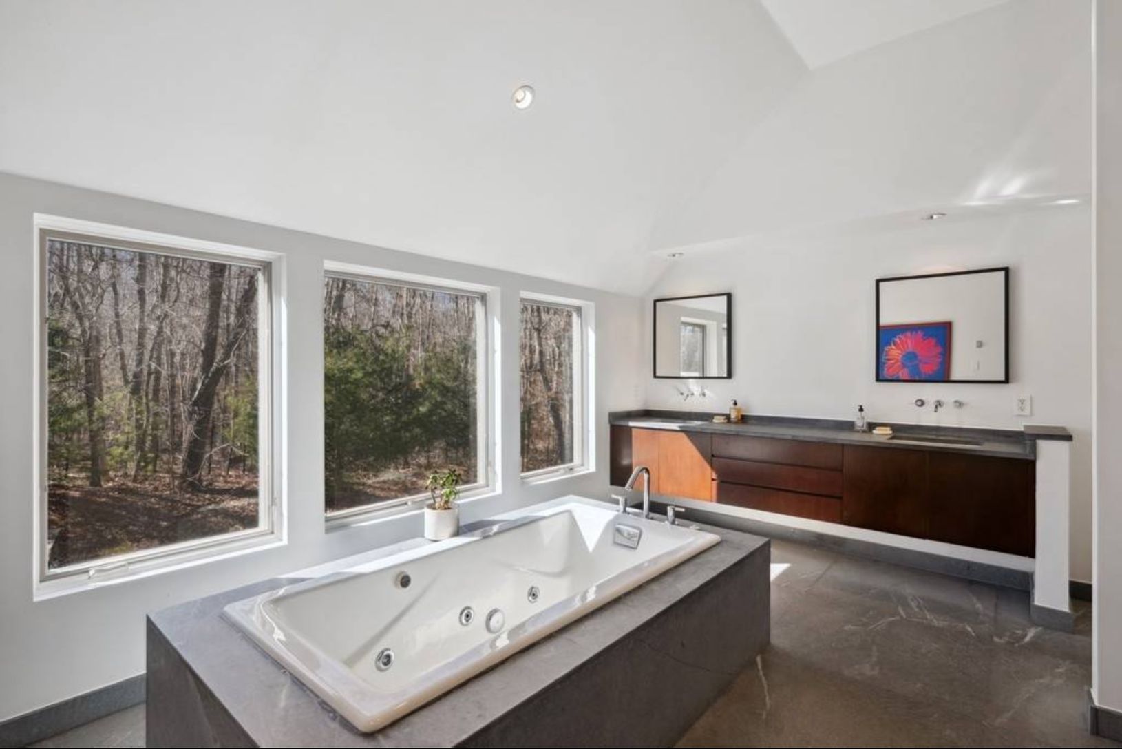 Located on 3.5 +/- acres in Sag Harbor, this 6000 +/- sq. ft. modern beach house offers a minimalistic approach with top of the line finishings. There are five bedrooms, five and one half bathrooms, two of which are master suites. The living and dining rooms are open to the kitchen, and all are spacious and airy - providing a loft-like atmosphere. There are four gorgeous stone fireplaces, wide plank wood floors throughout, and tons of natural