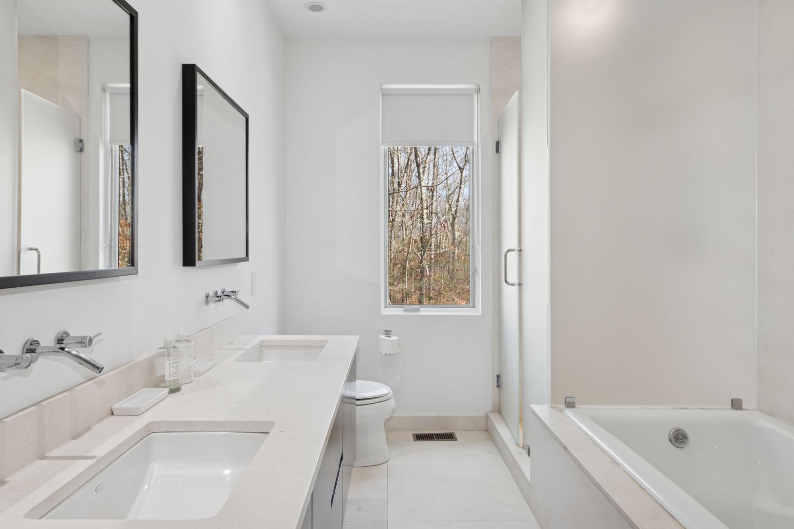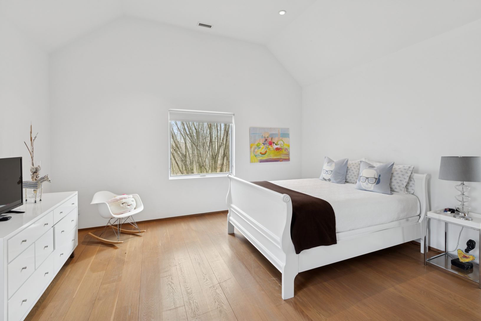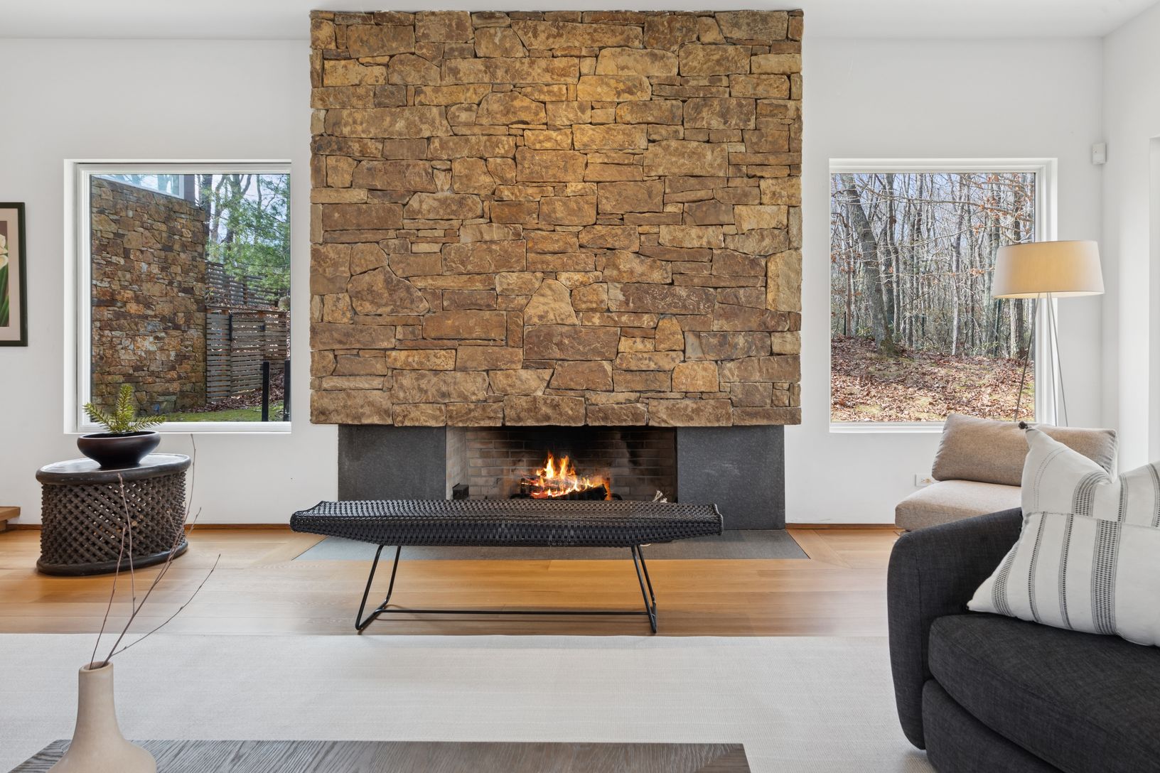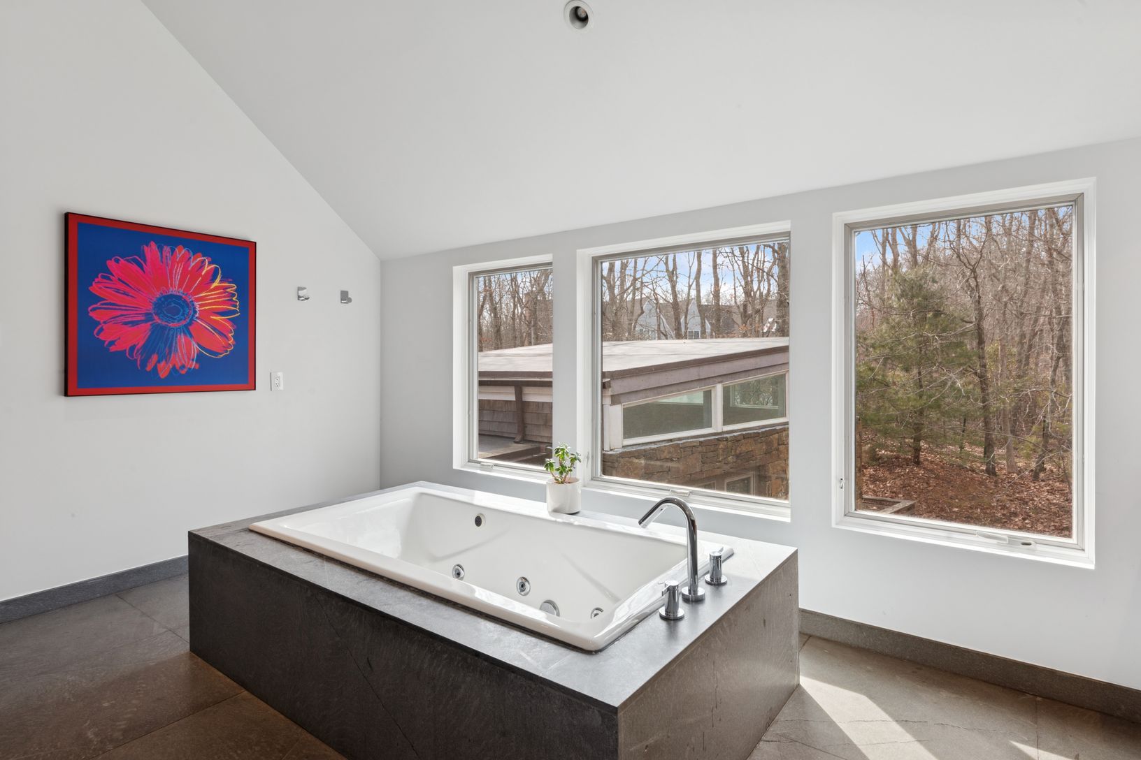 Summer in this exquisite 6,000+/- organic modern on 3.5+/- private acres. The light-filled home features 5 bedrooms and 5.5 baths, including the lower level, double-height ceiling heights, an open concept floorplan, and plenty of spaces to entertain throughout. The lush grounds feature a heated gunite pool and spa, and a spacious pool house with a full bath. Nestled on a quiet, tree-lined road, the home is just 3.2 +/- miles from Sag Harbor Vi