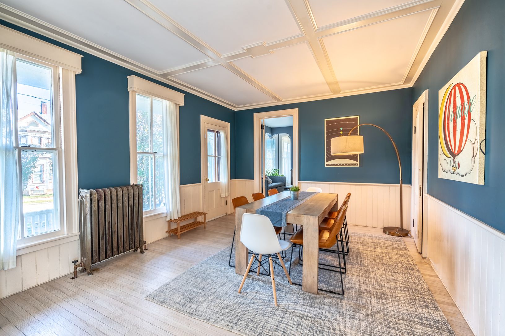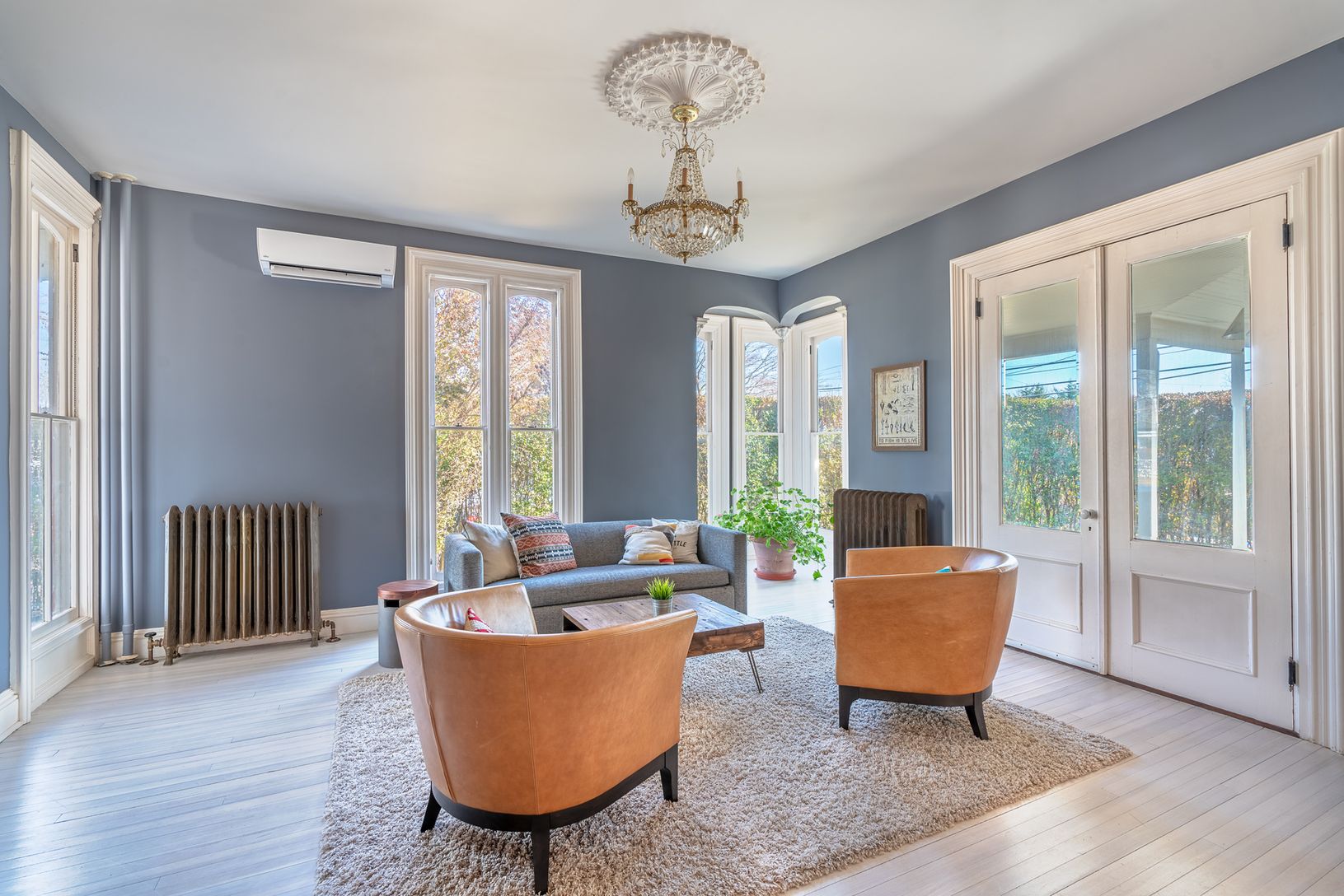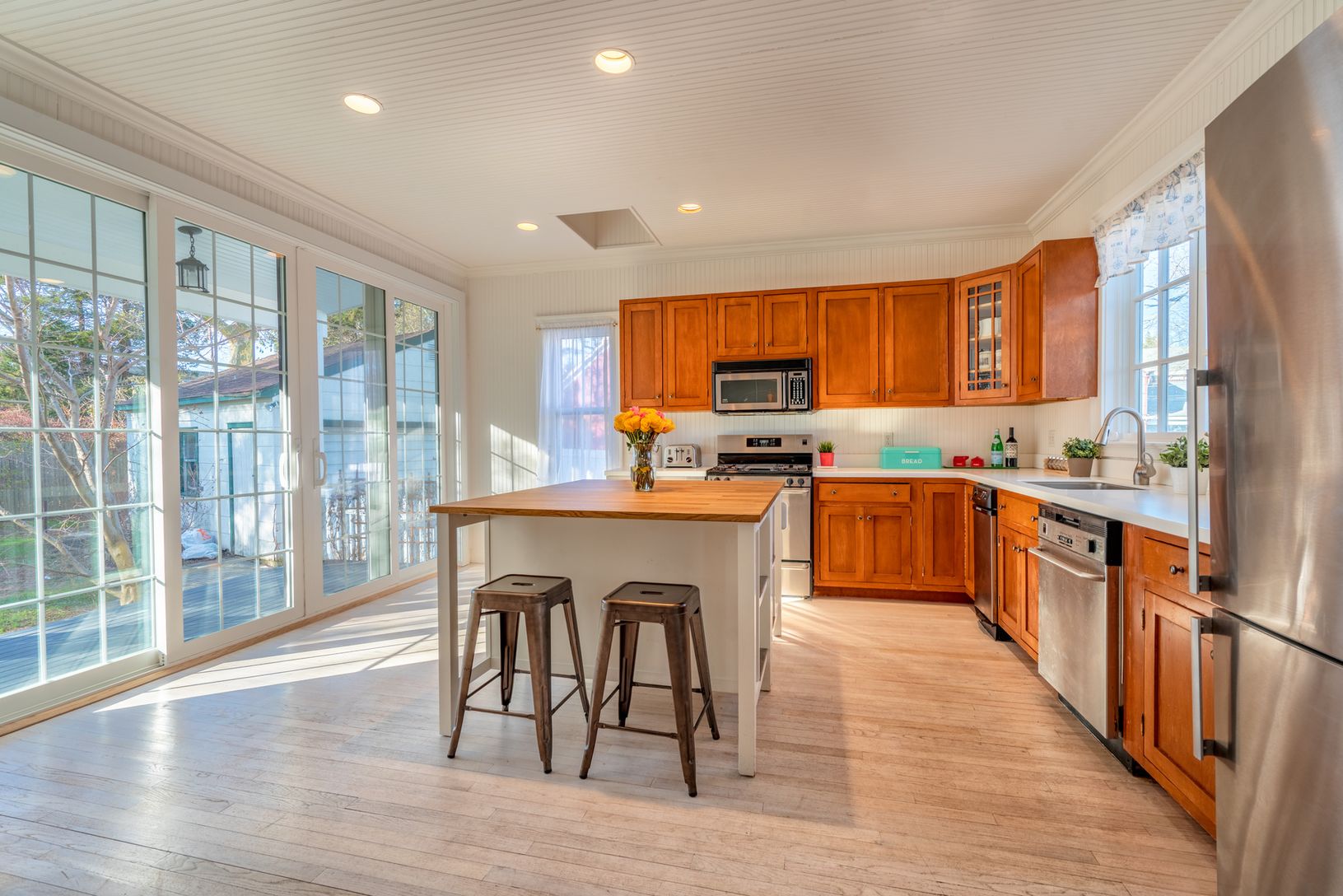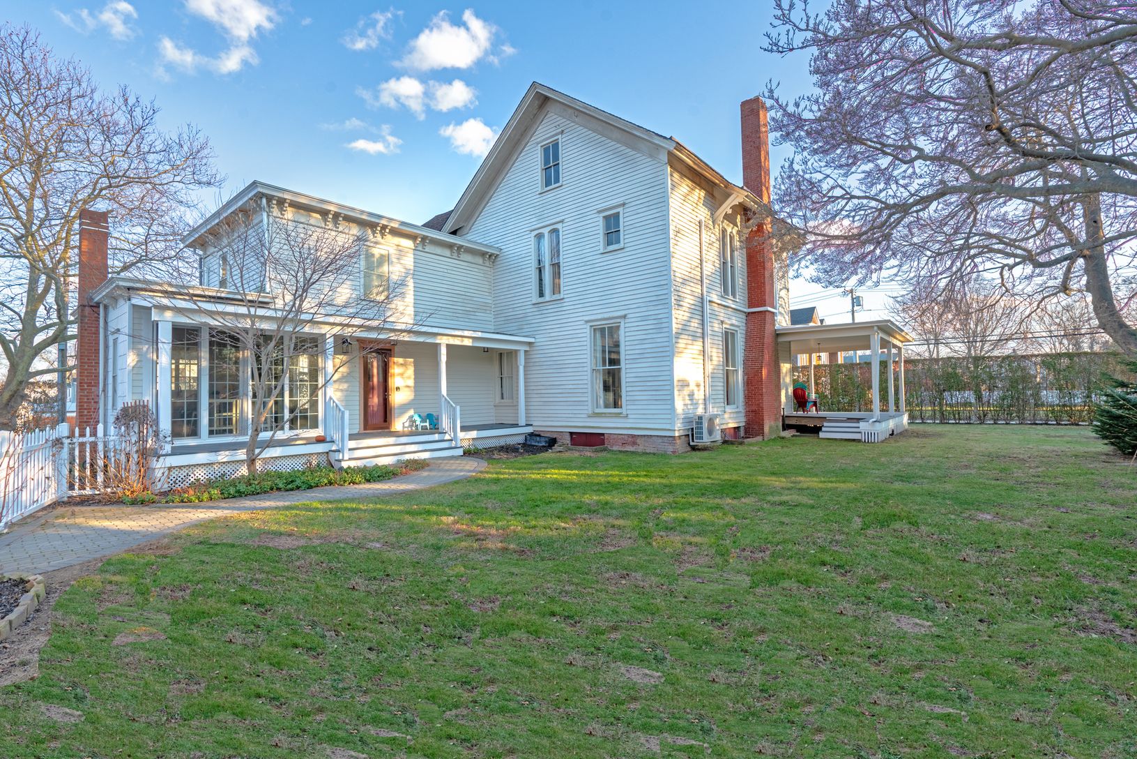 Stunning, light-filled Victorian, perfectly located in Greenport Village. This elegantly updated, 1880's gem offers 2 expansive, open and bright living rooms, both with original fireplaces, oversized windows and 11-ft ceilings, 5 large bedrooms, 3 full bathrooms, 2 renovated kitchens, parlor, an 800 sq ft wrap-around porch, spacious walk-up attic, and floor-to-ceiling sliding glass doors that lead to a new deck and private backyard. Video Avai