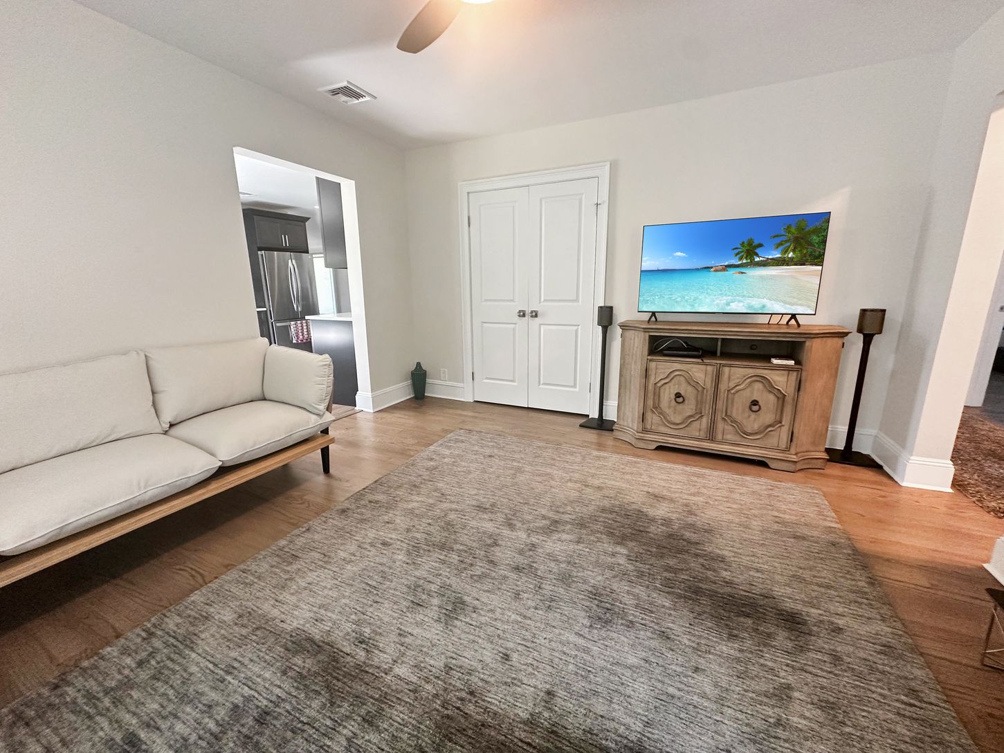 Live in the heart of the action with this beautiful, newly renovated 2-bedroom, 1-bathroom apartment in Greenport Village only .4 miles from the beach. This furnished and fully-equipped haven is perfect for anyone seeking a convenient and comfortable place to call home.