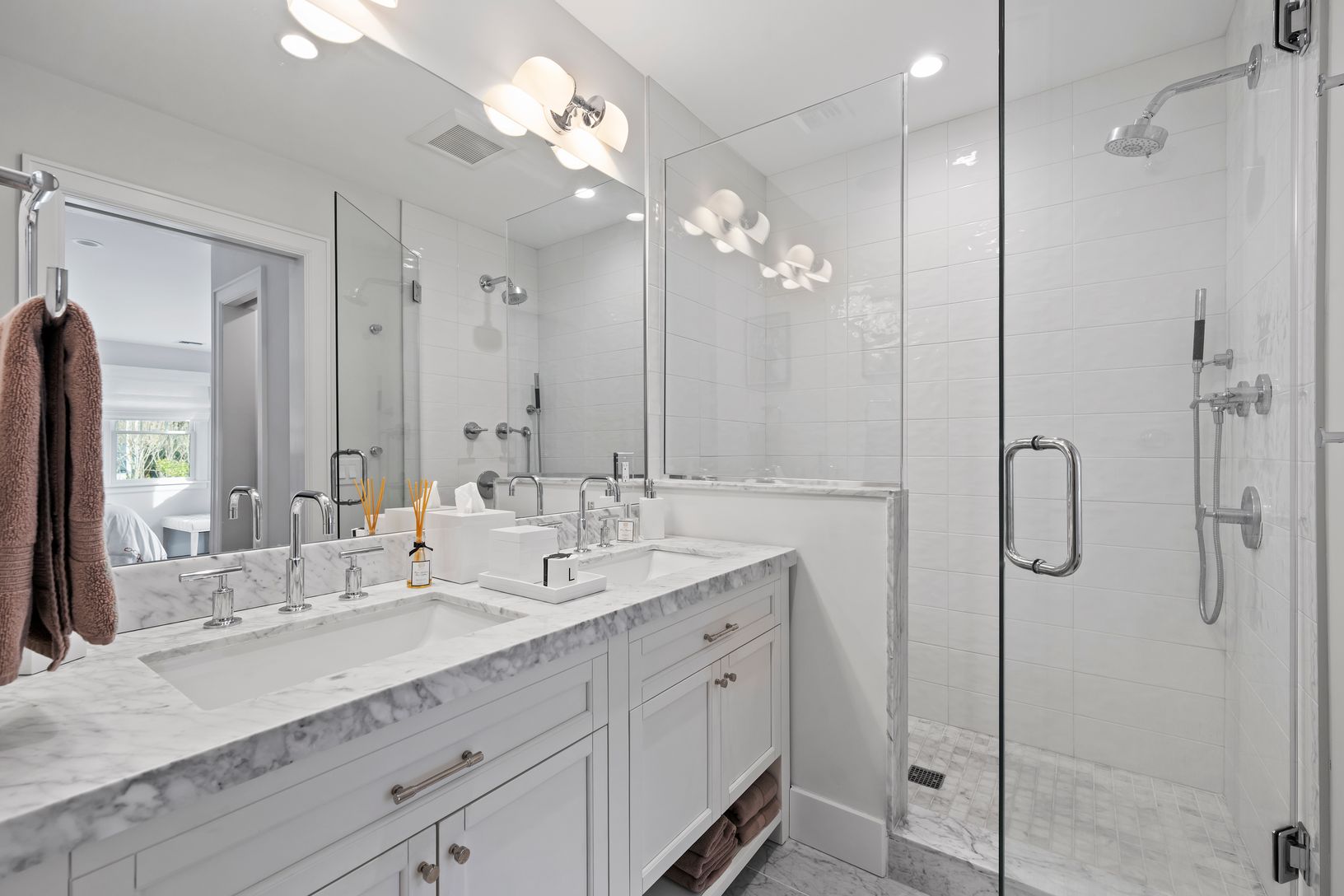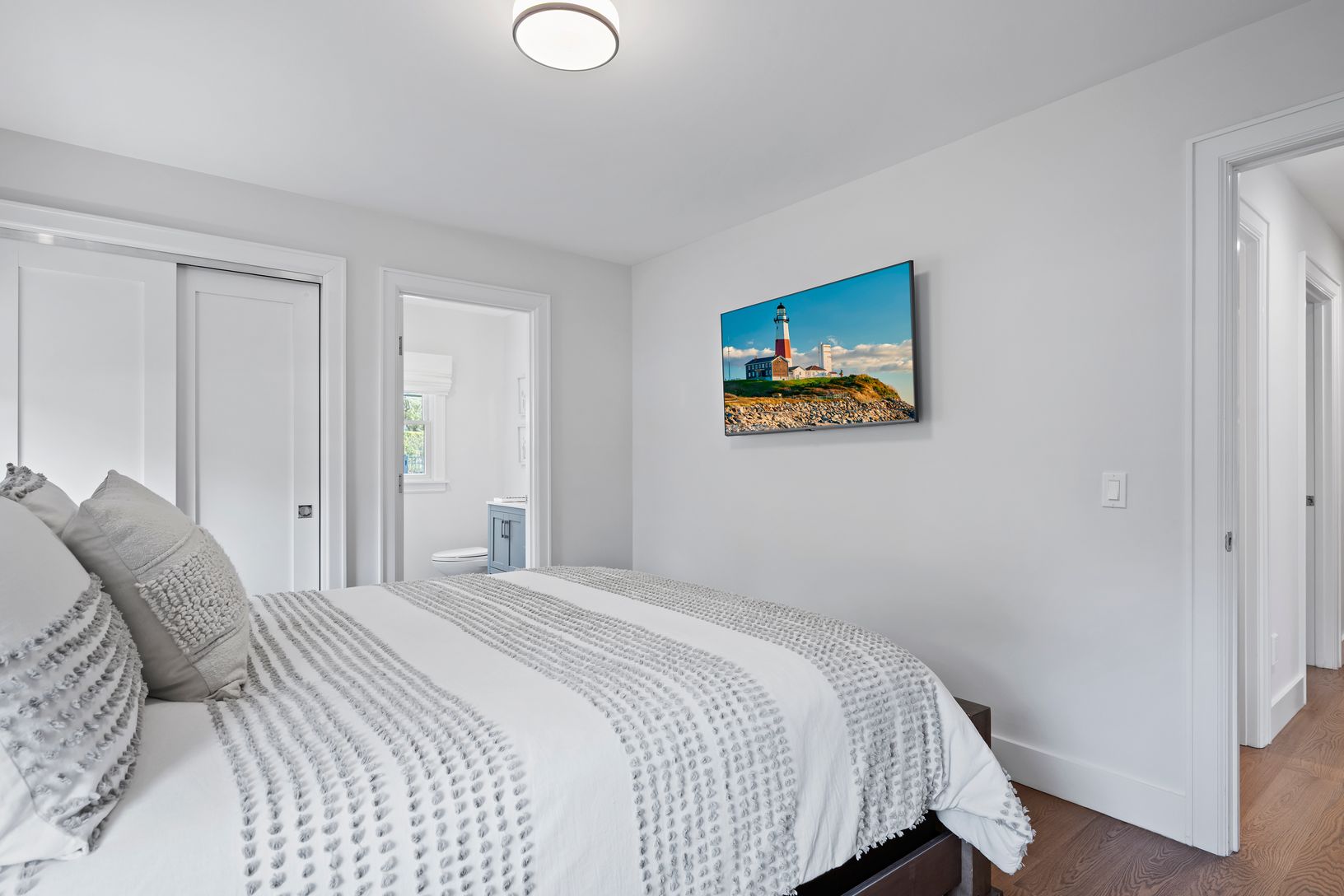 Completely Renovated Southampton Gem!!! This stunning Southampton home sits on a generous 3/4 acre lot on highly desirable North Main Street. The entire home has been completely and tastefully renovated from top to bottom with designer flair. This 3,000 square feet home features four ensuite bedrooms, two half baths, and a private lower level with an en-suite bedroom and home office in addition to a cozy den. Some of the new upgrades include