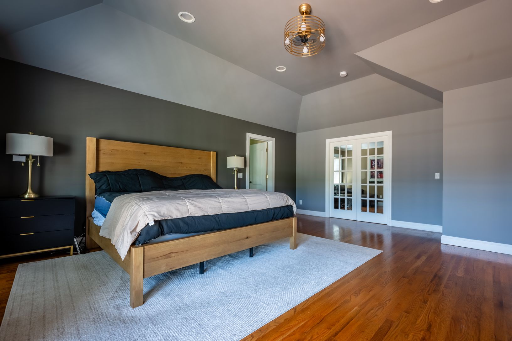 Drive down a picturesque, tree-lined driveway and arrive at this stunning post-modern home nestled on a spacious, 1.08 acre private property — the perfect blend of tranquility and modern living. Boasting 5 bedrooms and 3 full bathrooms, this open-concept residence offers exceptional space and comfort. Two story living room, with large arched windows, open to dining room and 2 sided fireplace, into large eat in kitchen, with separate pantry. Th