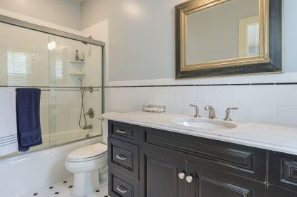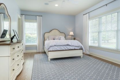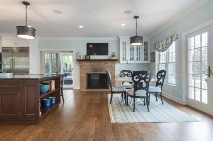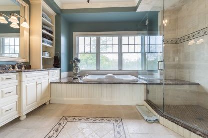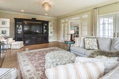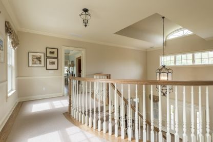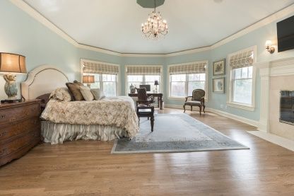 This impeccable five bedroom, four and one-half bath postmodern is set on 1.45+/- acres surrounded by lush landscaping. At the welcoming entry of the home you come into a grand double height foyer with a sweeping staircase. There is a sunny living room with large arched windows, substantial moldings, and a central fireplace. On the main living level, there is a convenient junior master suite. The entry foyer leads to a beautiful dining room, w