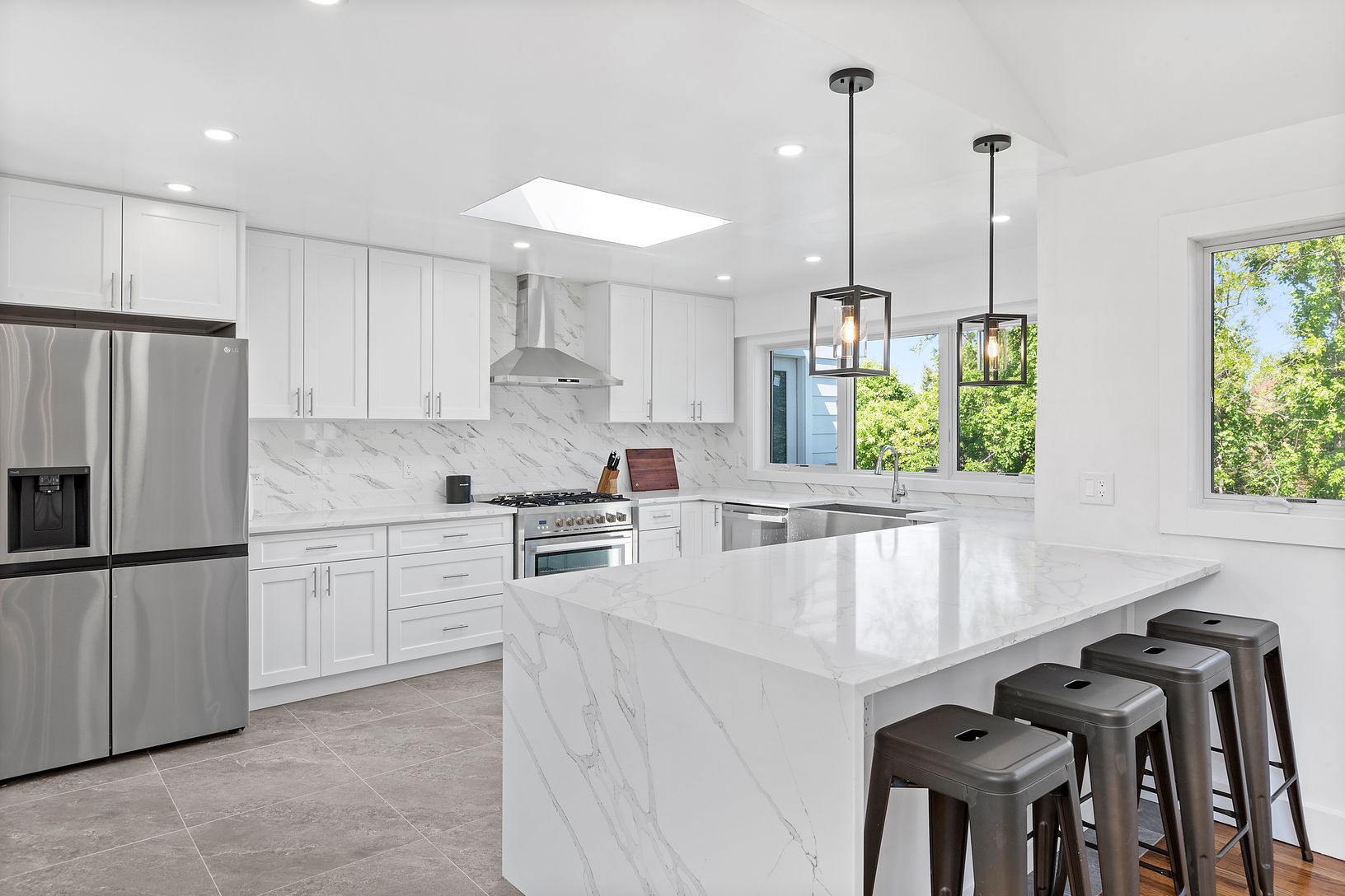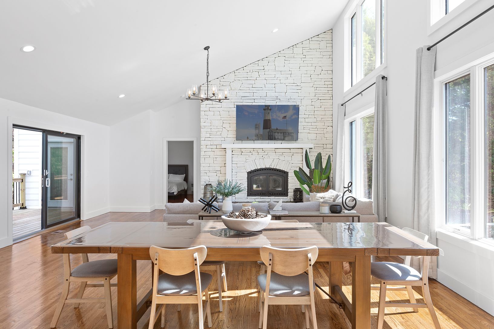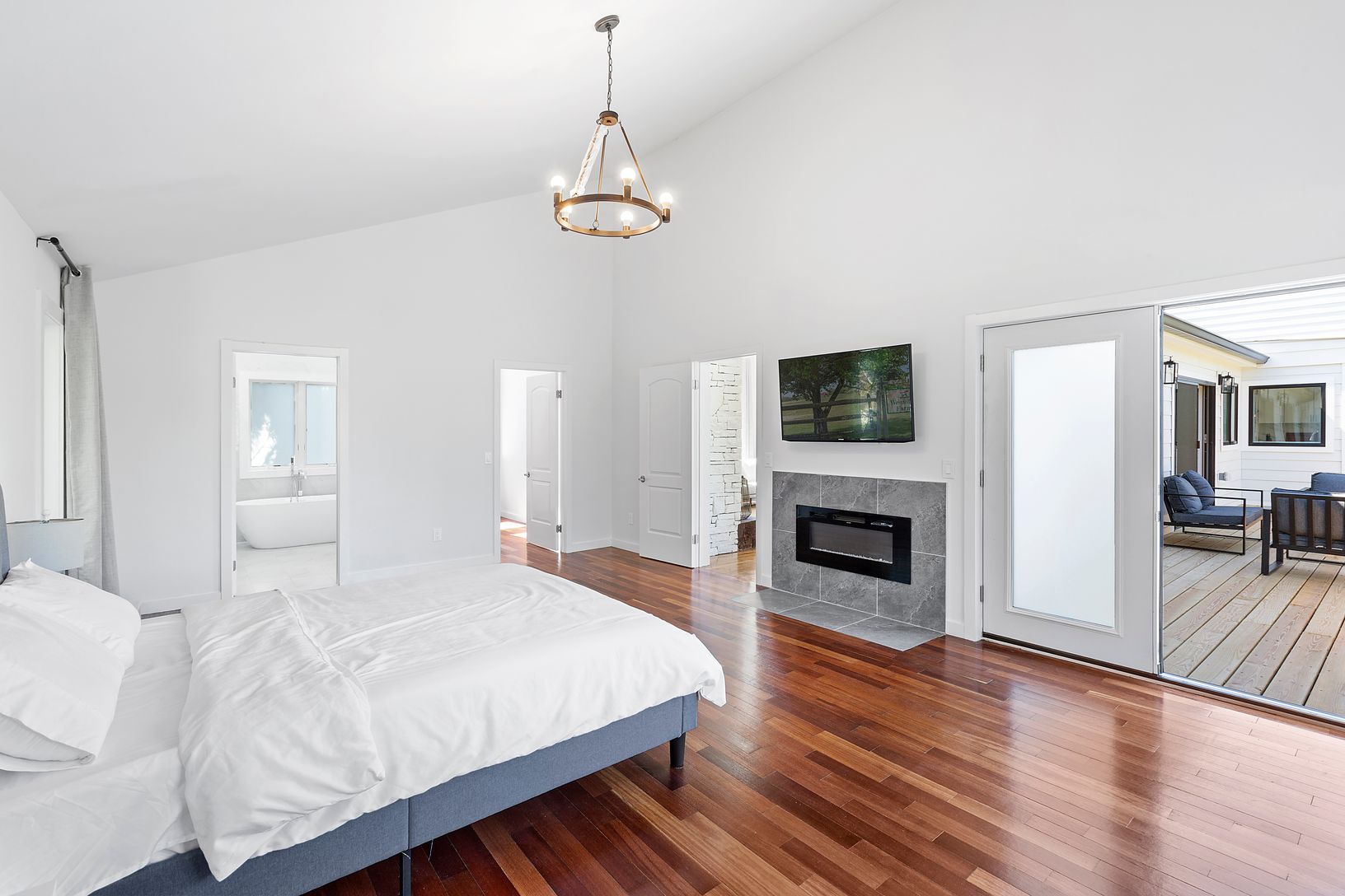 This modern single family home, situated on a 1.60 acre lot, is the perfect retreat for those seeking a luxurious lifestyle for summer 2023. Recently renovated in 2023, this stunning home offers a total of 5 bedrooms, 4 of which are en suite, and 4 full bathrooms. The interior features +/-4,800 square feet of living space, with a 1 car attached garage and oak wood flooring throughout. The heart of the home is the kitchen, equipped with steel a