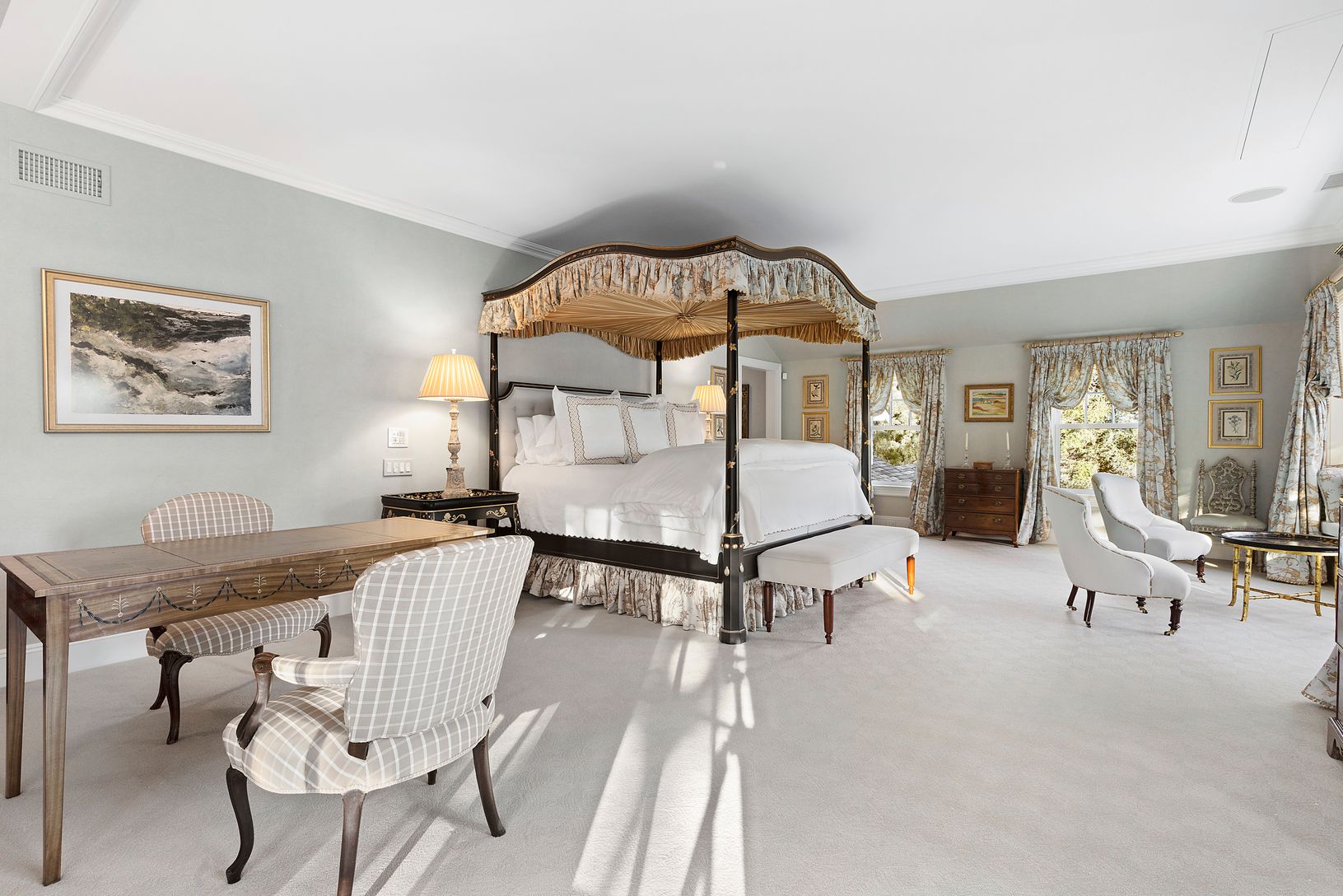 Exquisite gated estate compound with main house, guest house and three-car carriage barn. Located on 3.4 gorgeous acres in the Hampton Park estate area of Southampton, just minutes from the Village and beaches. This spectacular property has a stunning c1910 main house, that was "taken down to the studs", and expanded and rebuilt to the highest standards, making it essentially a "new" old house. The main house and guest house have been beauti