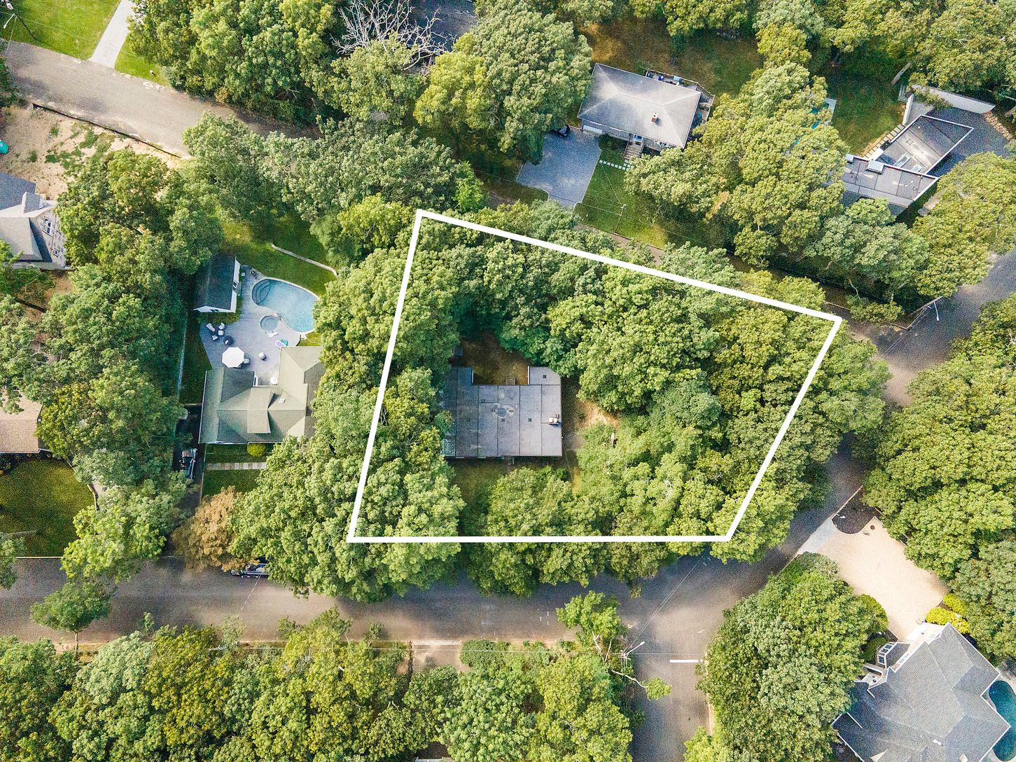 New to the market. .48 acre lot. Sold as is. 3 blocks to private community beach and bay. 1 mile to village. Room for a pool.