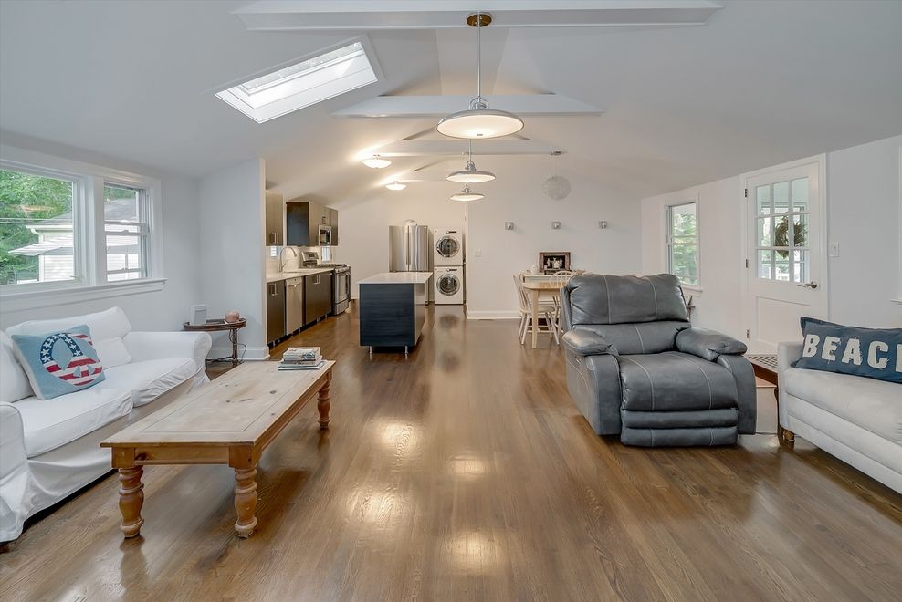 Just Listed. The best fully renovated value in Southampton. Move-in ready! Complete interior renovation in 2015. Modern, sweet and charming 2 bedroom, 2 bath ranch on .52 acre, located only 1 mile north of Southampton Village. Brand new modern stainless appliances and stone counter top kitchen and two beautiful modern baths. Wonderful open, vaulted and beamed ceilings throughout the house. The great room and bedrooms have gorgeous hardwood flo