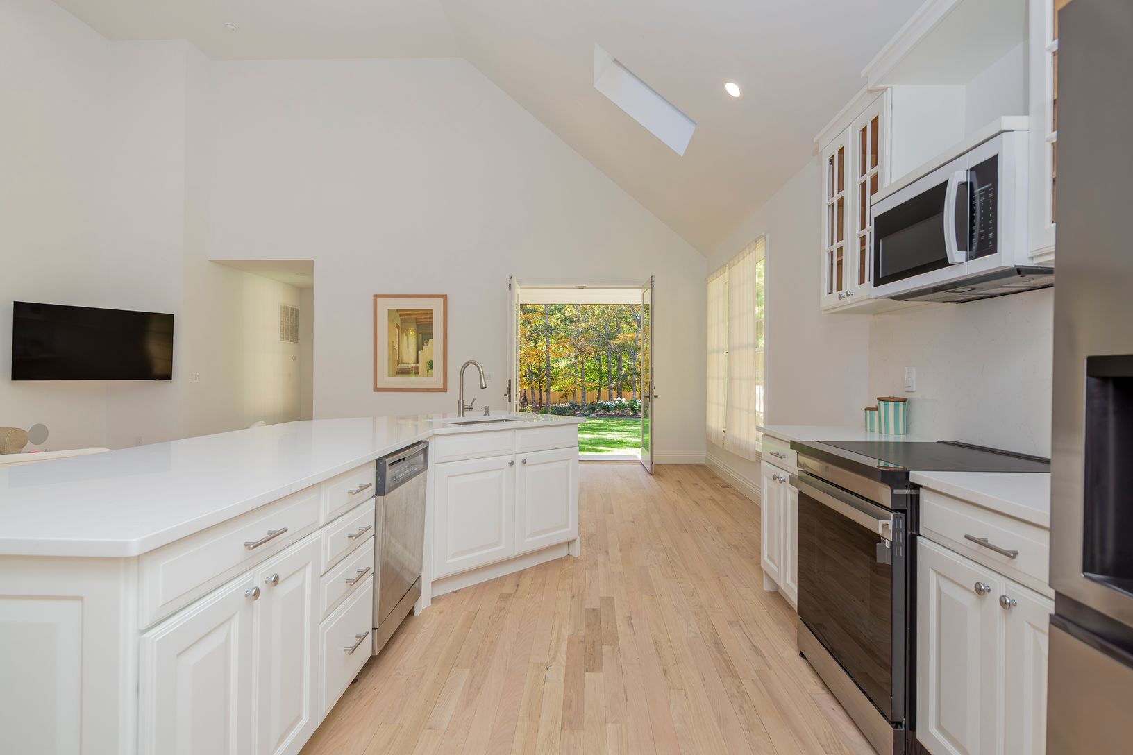 Crisp, Bright, and Effortlessly Inviting in Springs. Nestled in the heart of East Hampton's beloved Springs, this impeccably maintained residence offers a refreshing blend of style and comfort. The sun-filled interior showcases natural-finish hardwood floors that flow seamlessly through an airy, open-concept layout with vaulted ceilings and abundant light. The kitchen features sleek white cabinetry, pristine quartz counters, and brand