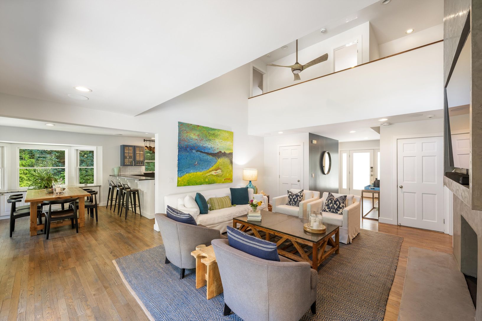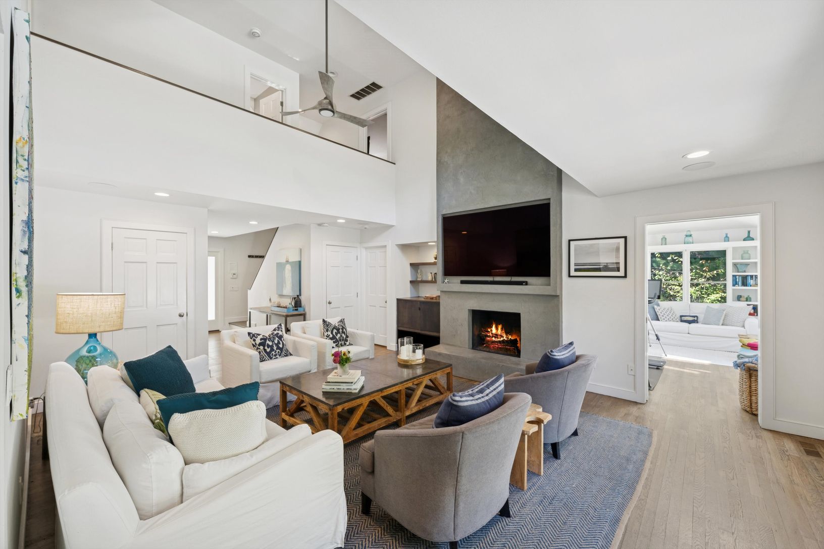 Spend your summer in this newly renovated four bedroom, three bathroom plus home office. The modern, upgraded kitchen boasts granite countertops and stainless appliances with a breakfast bar leading to the dining area. The open floor plan features cathedral ceilings with an open airy feel. With new furnishings, beautifully renovated baths and peloton bike you could not ask for more. The outdoor space includes extensive decking, partially cove