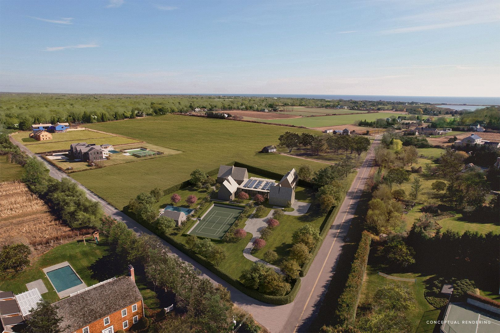 This rare 2.2-acre +/- property in Wainscott South offers an exceptional setting, abutting over 120 acres +/- of protected reserve for unobstructed views. Just 1.3 miles +/- from the ocean, the parcel comes with approved plans and building permits in place for a 10,783 SF +/- residence designed by Bates Masi Architects. The home will feature 6 bedrooms, 7 full and 2 half bathrooms, a gym, movie theater, and expansive living spaces with walls o