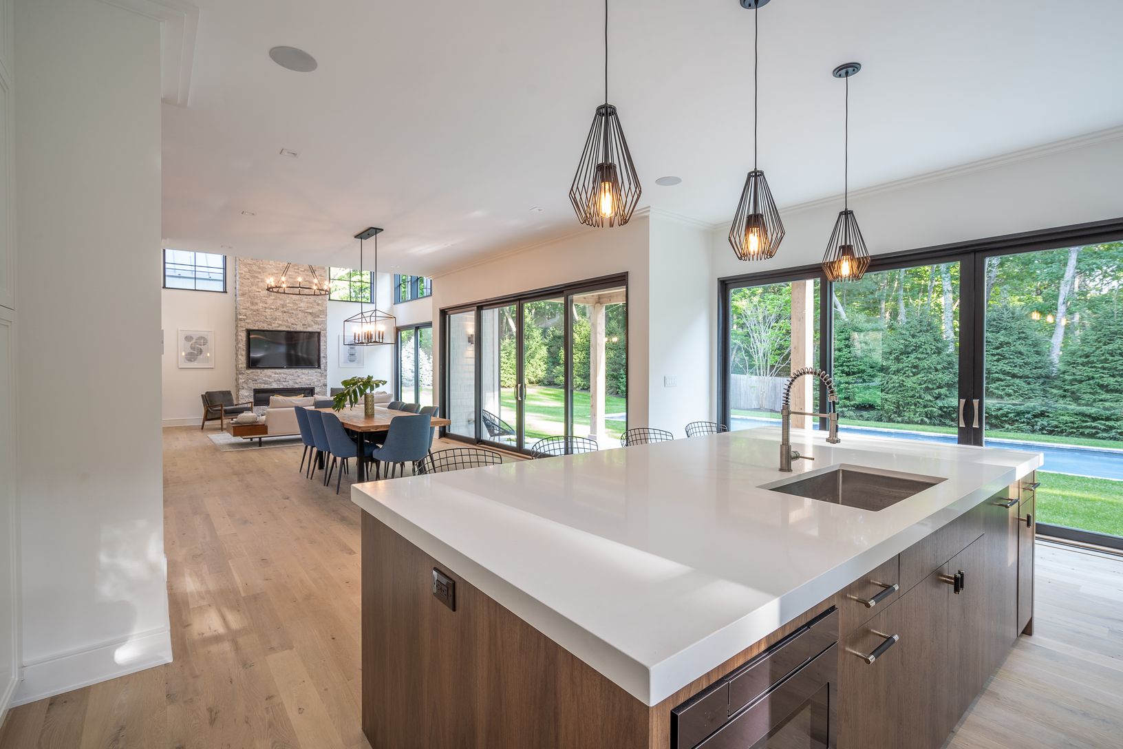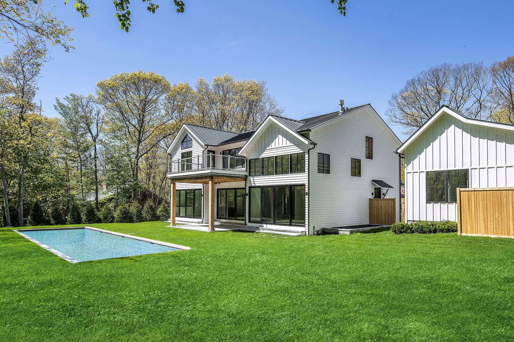 Less than a mile from the idyllic downtown of East Hampton Village, lies this stunning, newly constructed modern farmhouse on a prime half-acre parcel. Striking the perfect balance between classic Hamptons style and state of the art luxury th is energy efficient , 6 bedroom, 6 1/2 bath home is something to behold both aesthetically and functionally. Upon entering through a large covered front porch, you will encounter the architecturally imp