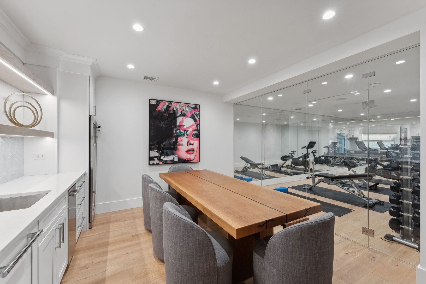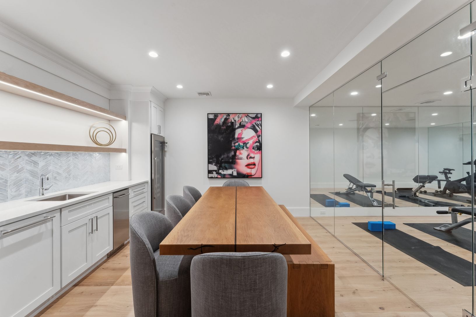 This brand new custom build is now on the rental market for the first time! Boasting 7,940+/- sqft of open concept floor plans: souring ceilings, custom built floating staircase(s), refined millwork, and floor to ceiling windows offering endless light. The interior of the home has three levels; including eight bedrooms, a 2,000+/- sqft lower level with a 20 x 25 recreation room, and a fully loaded gym with all peloton equipment. The exterior o