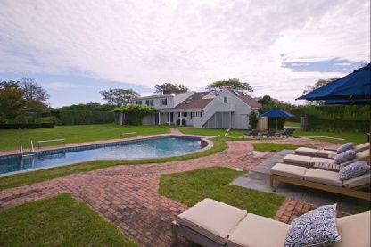 Just steps to Gin Lane and ocean beaches, this 6 bedroom and 6.5 bath traditional with contemporary "beachy" interiors offers wonderful space for relaxation and entertaining. Some of the extras include library, great room with fireplace, sunroom, media room. Outdoor features include an al fresco dining terrace, great lawn, very private 2-acre setting with high hedges. The heated gunite pool and full -size har-tru tennis court make this an idea