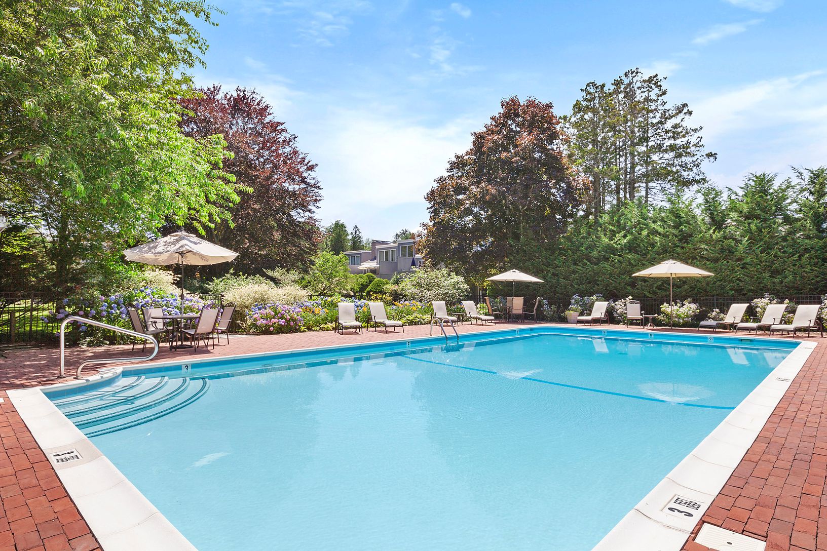 New to the market is this one bedroom, one bath co-op conveniently located on the East Hampton/Amagansett town line. This first level unit has a very large bedroom with plenty of closet space. There is an open floor plan consisting of a living room with fireplace, galley kitchen, dining area and a full wall of sliding glass doors which lead you to a beautiful covered porch overlooking the gorgeous grounds and heated Gunite pool. Brand new wid
